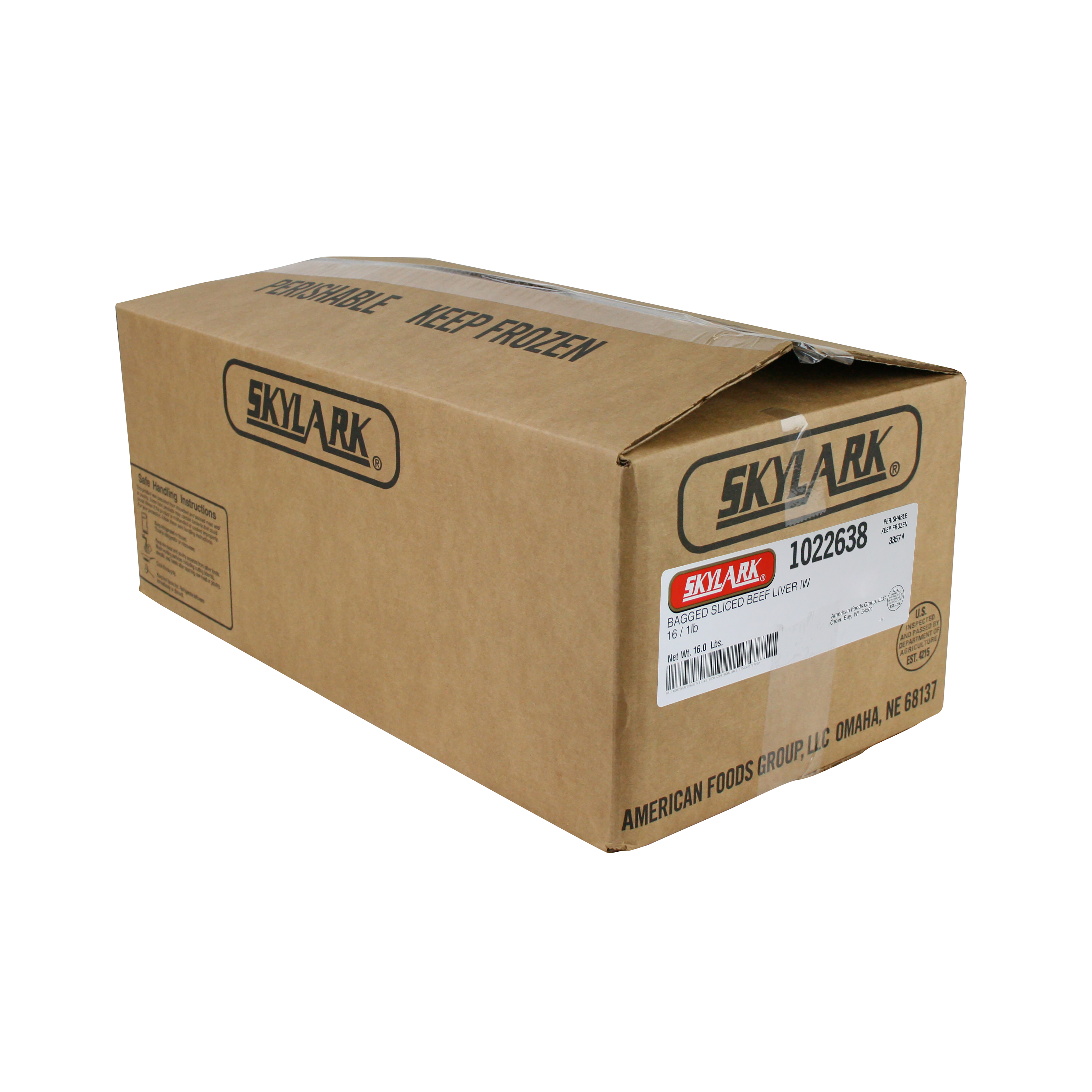 Skylark Frozen Bagged Sliced Individually Wrapped Beef Liver, 16-1 Pound Bags Per 16 Pound Net Weight Master Case, 4-4 Ounce Individually Wrapped Slices Per Bag