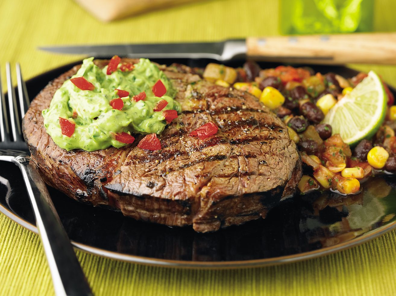 Taste the islands with this vibrant steak recipe. Black beans and corn served with Mojo-marinated beef Chuck Eye Steaks. Top with creamy avocado for a dish that can't be beat.