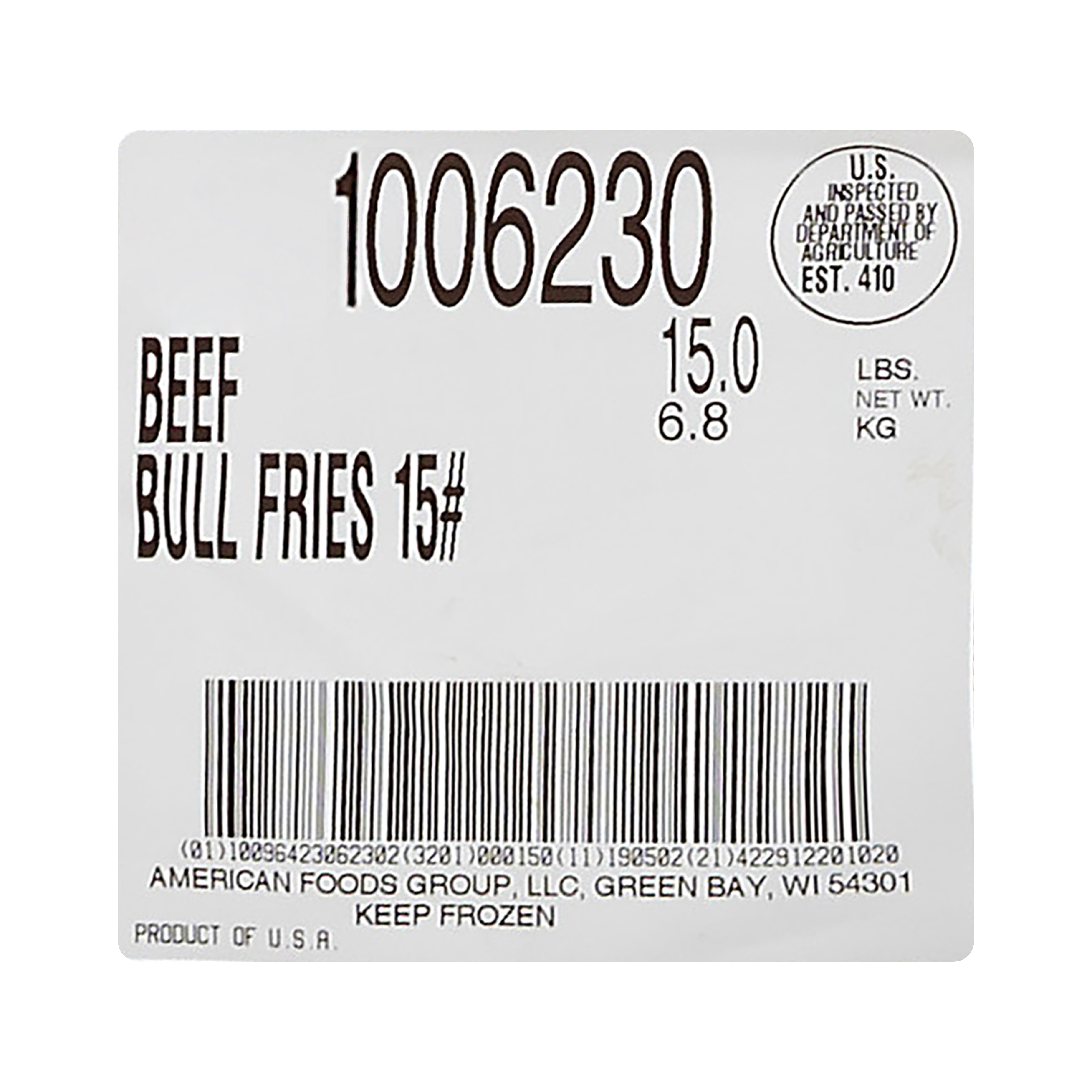 American Foods Group Frozen Beef Bull Fries, Approximately 20 Bull Fries Per 15 Pound Net Weight Master Case