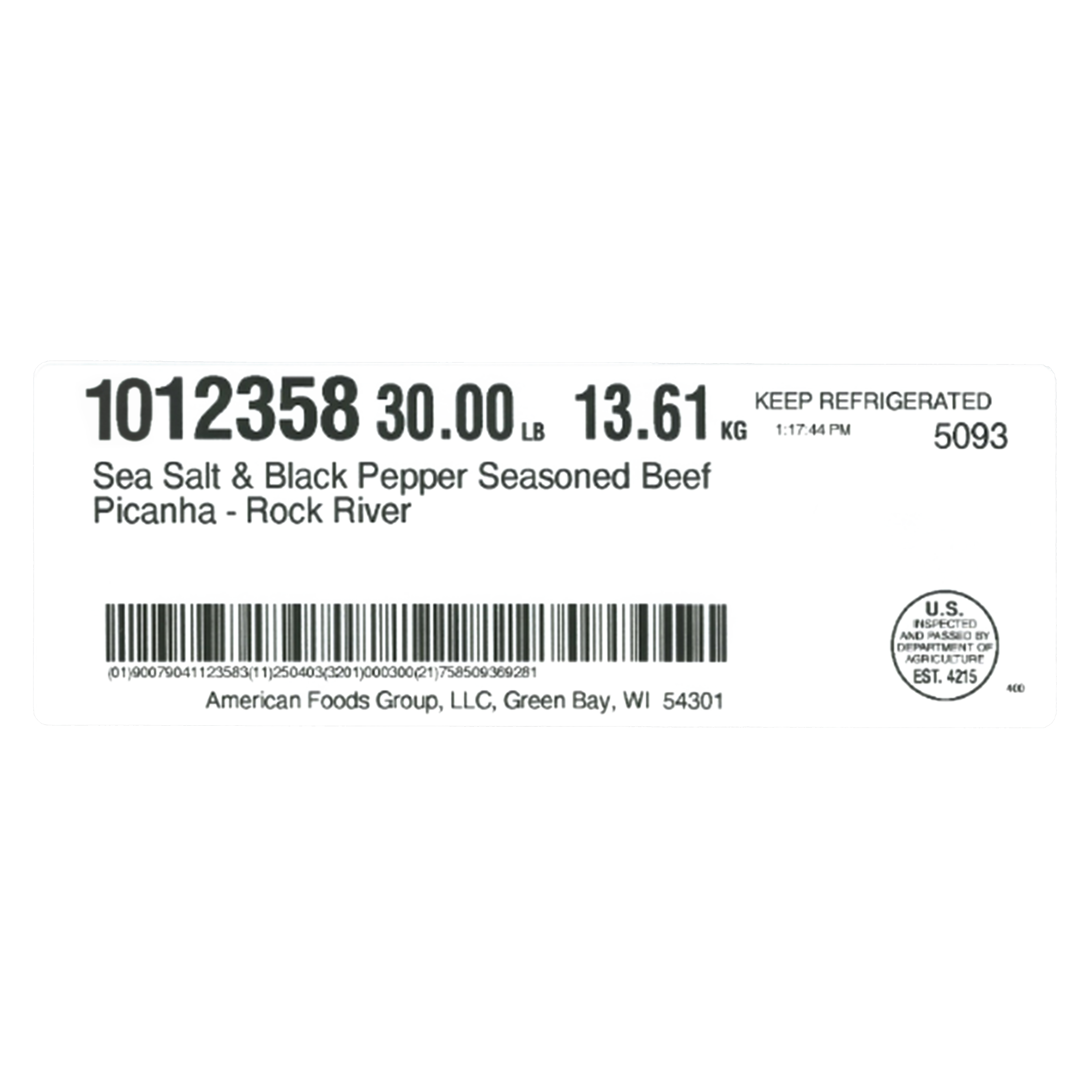 Rock River Cattle Co. Sea Salt And Black Pepper Seasoned Beef Picanha, 6/2 Pound Average Weight Packages Per 20 Pound Average Weight Master Case