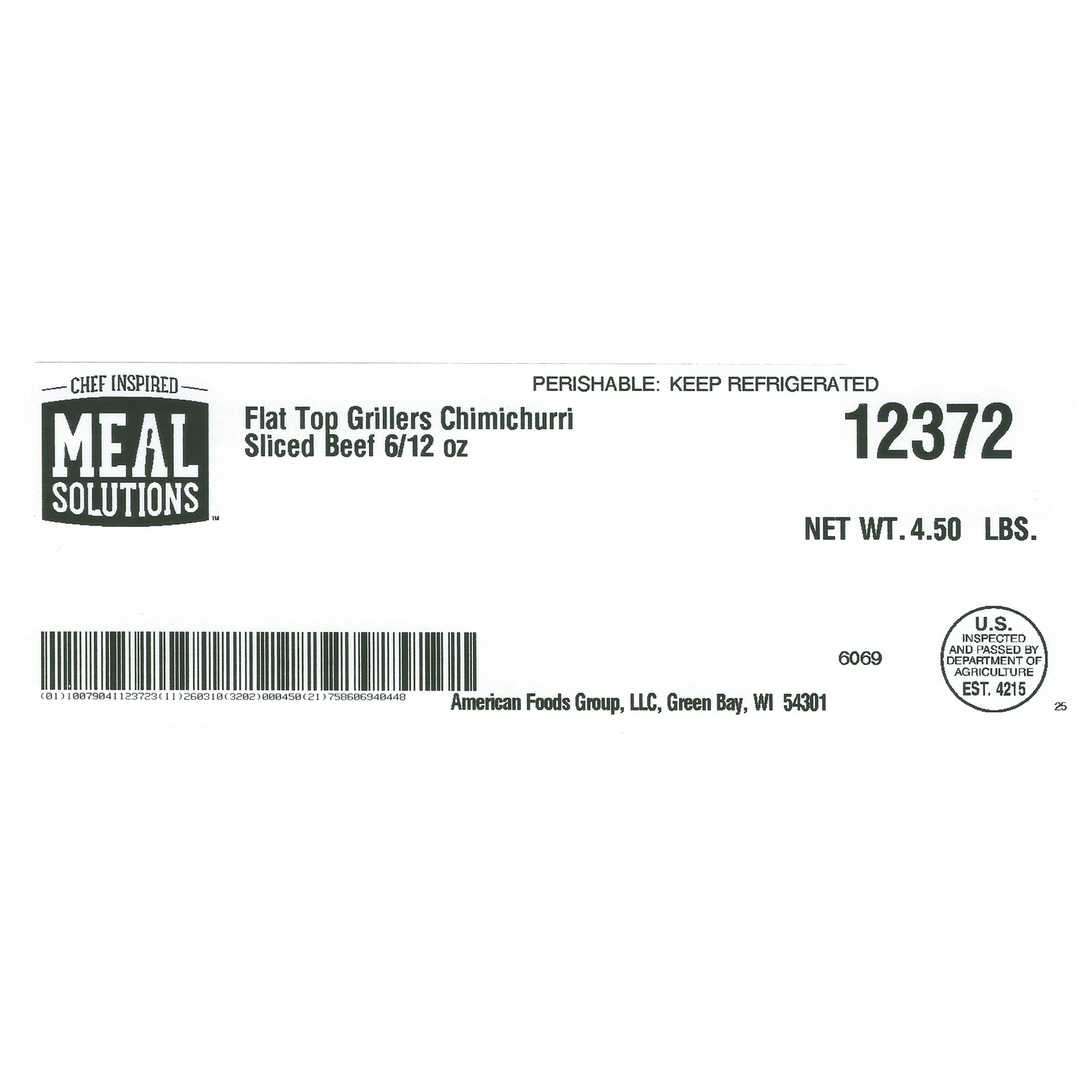 Fresh Chimichurri Seasoned Sliced Beef Steak, 6-12 Ounce Per 4.5 Pound Net Weight Master Case.