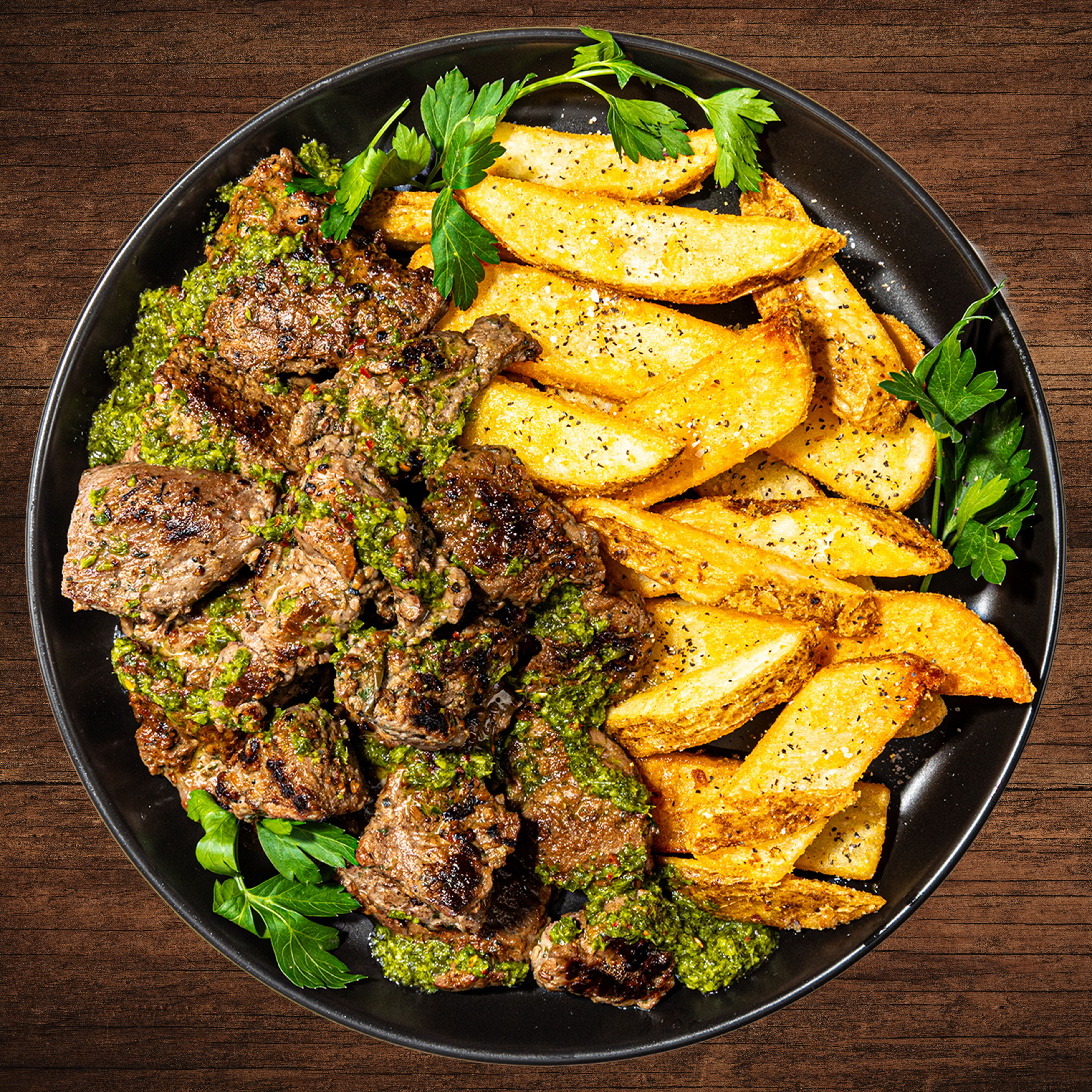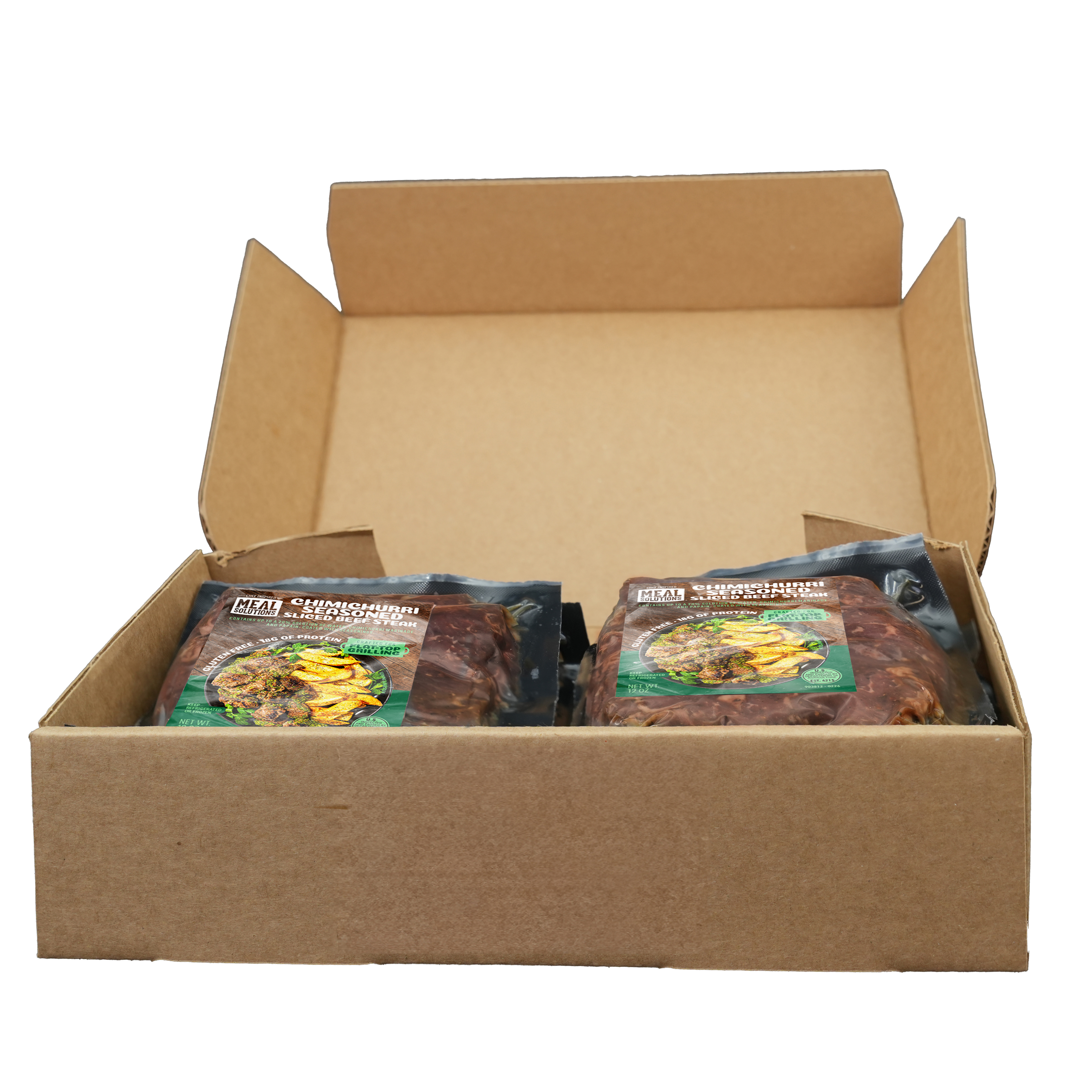 Beef, Water, Chimichurri Marinade [Dehydrated Vegetables (Onion, Garlic, Bell Pepper, Celery), Spices, Salt, Orange And Lemon Peel, Vinegar Powder, Rice Concentrate, Parsley, Citric Acid, Natural Lemon Flavor (Citric Acid, Natural Lemon Flavor), Natural Flavor, Potassium Carbonate, Cilantro Flakes, Xanthan Gum, Papain (Tenderizer)].
