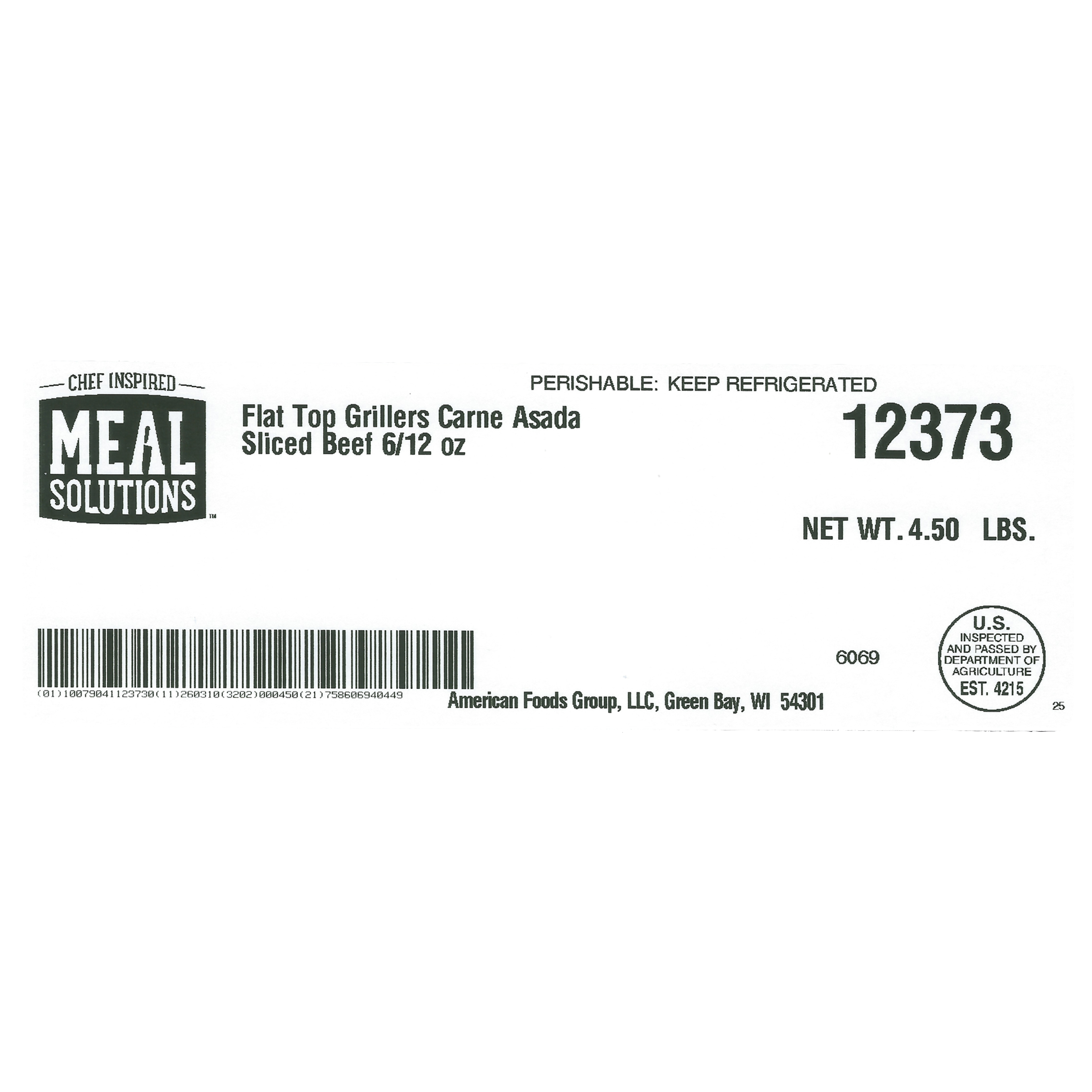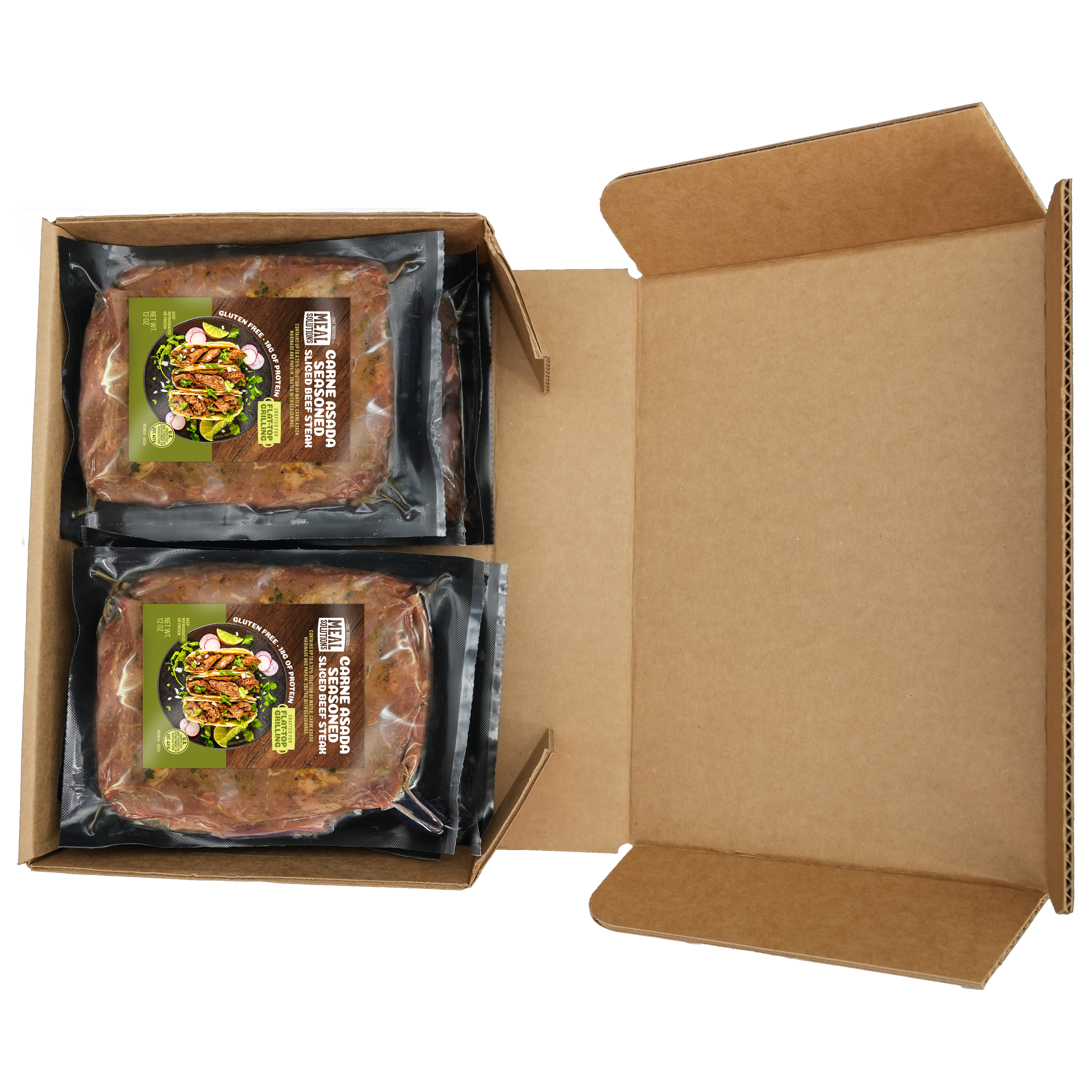 Fresh Carne Asada Seasoned Sliced Beef Steak, 6-12 Ounce Per 4.5 Pound Net Weight Master Case.