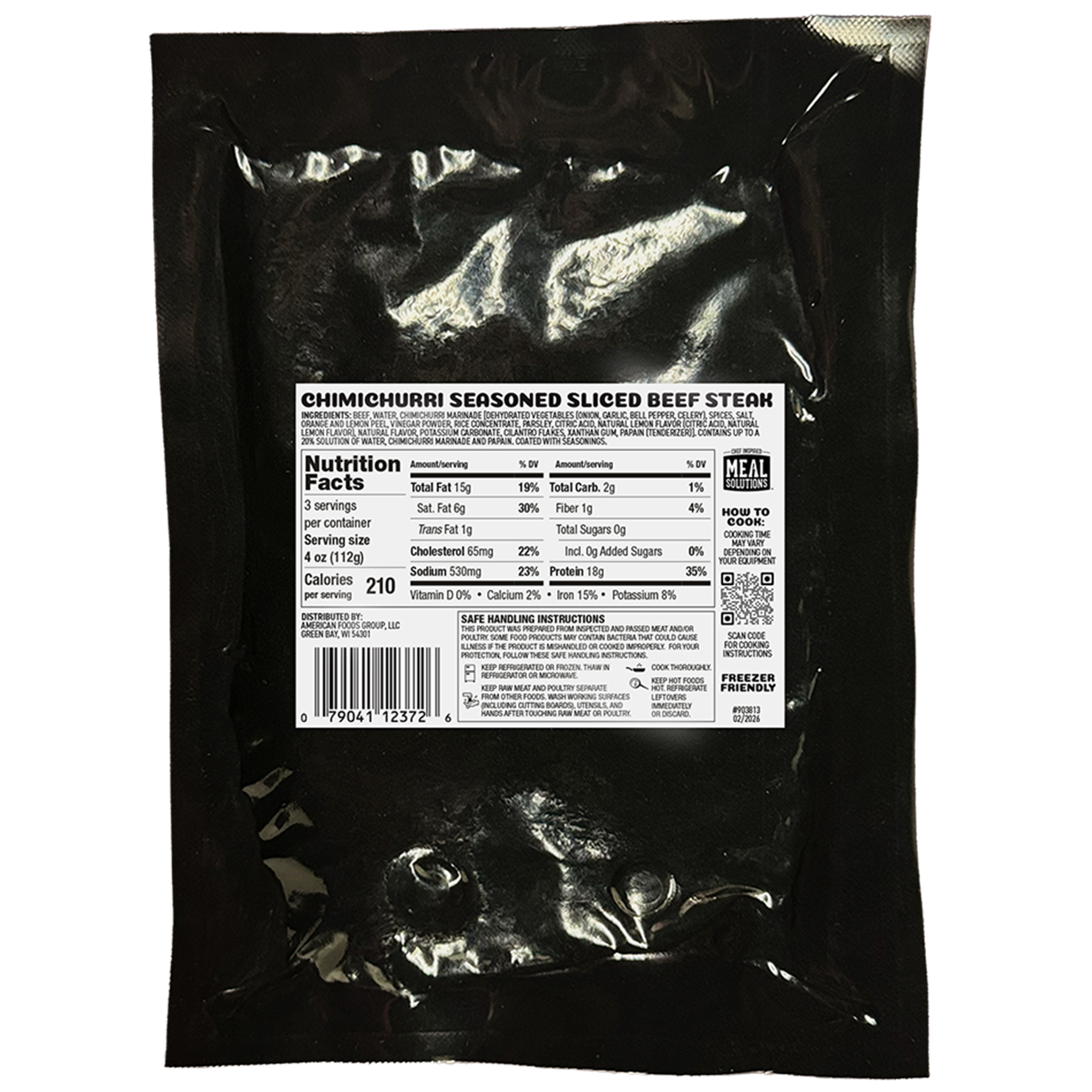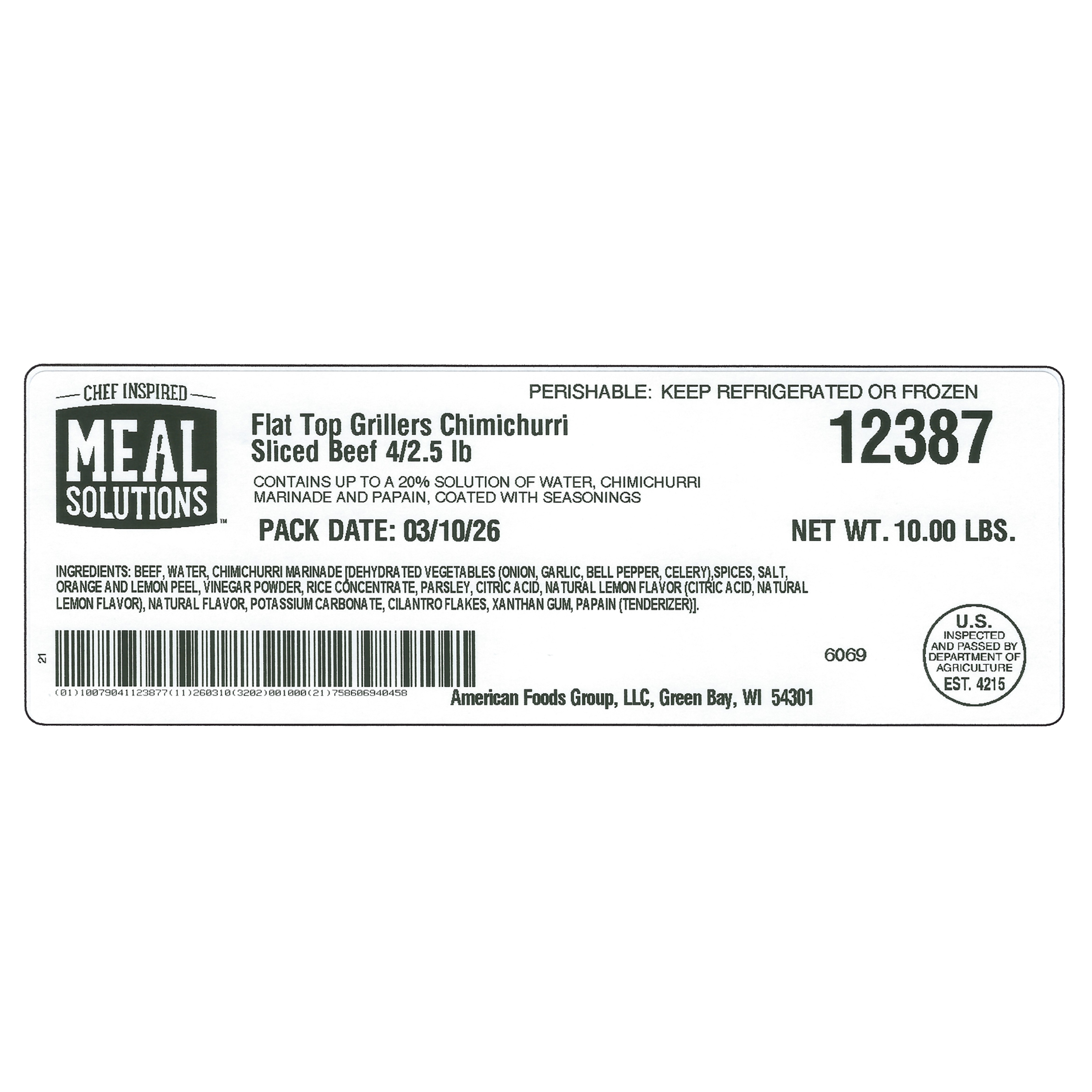 Meal Solutions Chimichurri Seasoned Sliced Beef Steak, 4-2.5 Pound Per 10 Pound Net Weight Master Case.