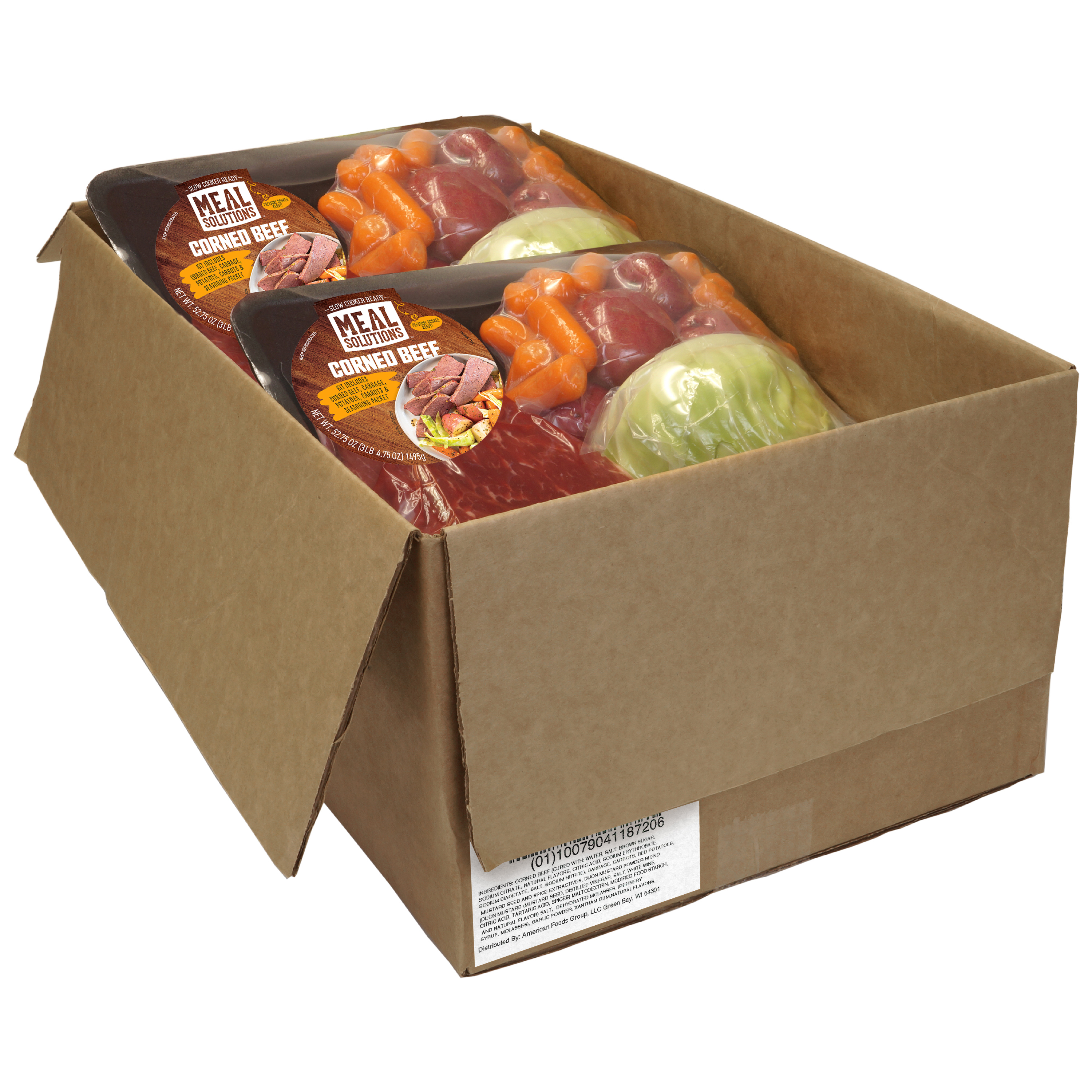 DESCRIPTION – Serve all the traditional flavor without the traditional prep time with our Meal Solution’s Uncured Corned Beef Kit. Your kit contains fresh vegetables, flavor-packed USDA Choice corned beef brisket, and an Amazing Taste seasoning packet. There’s no luck to it, just clean, delicious ingredients in the convenience of a slow cooker kit.