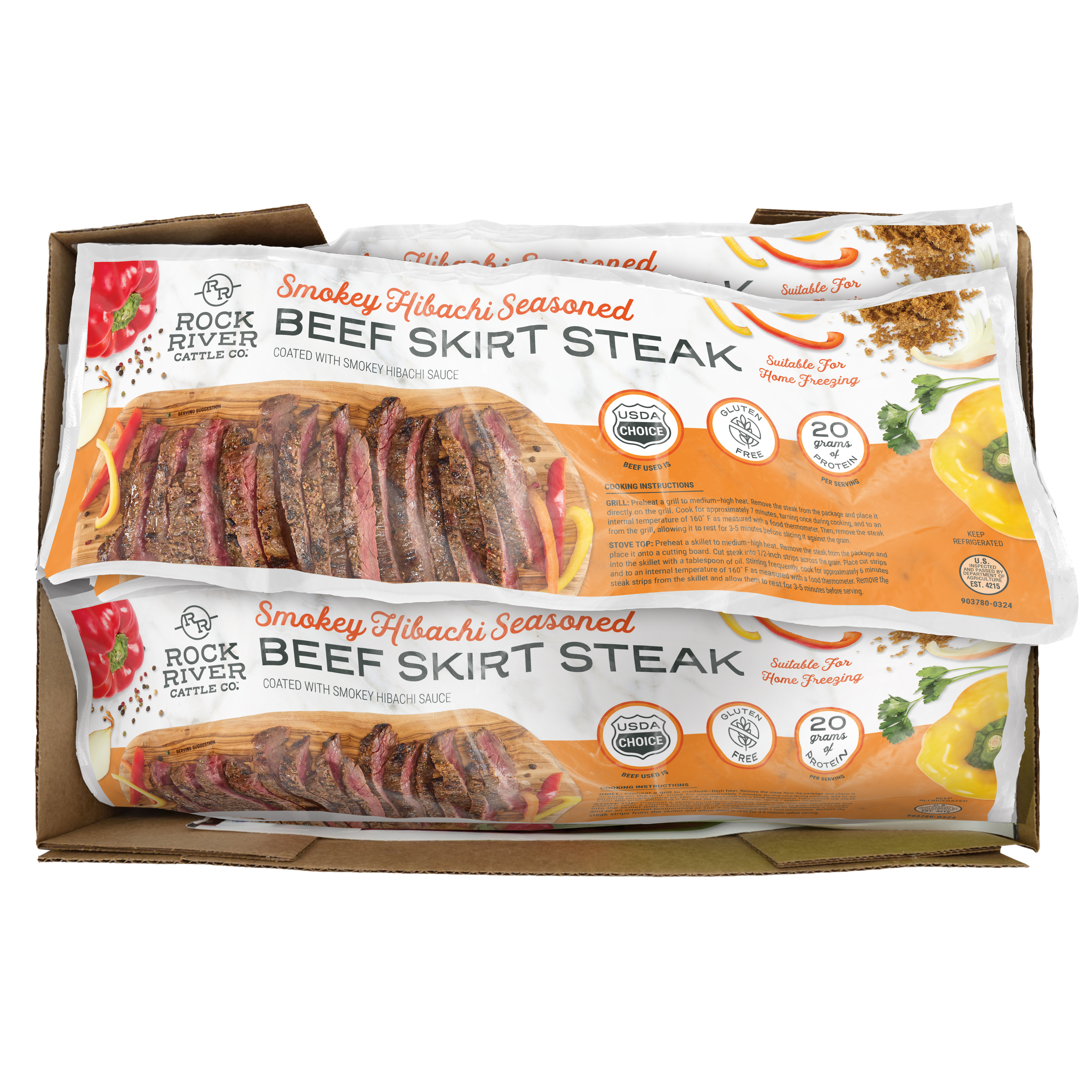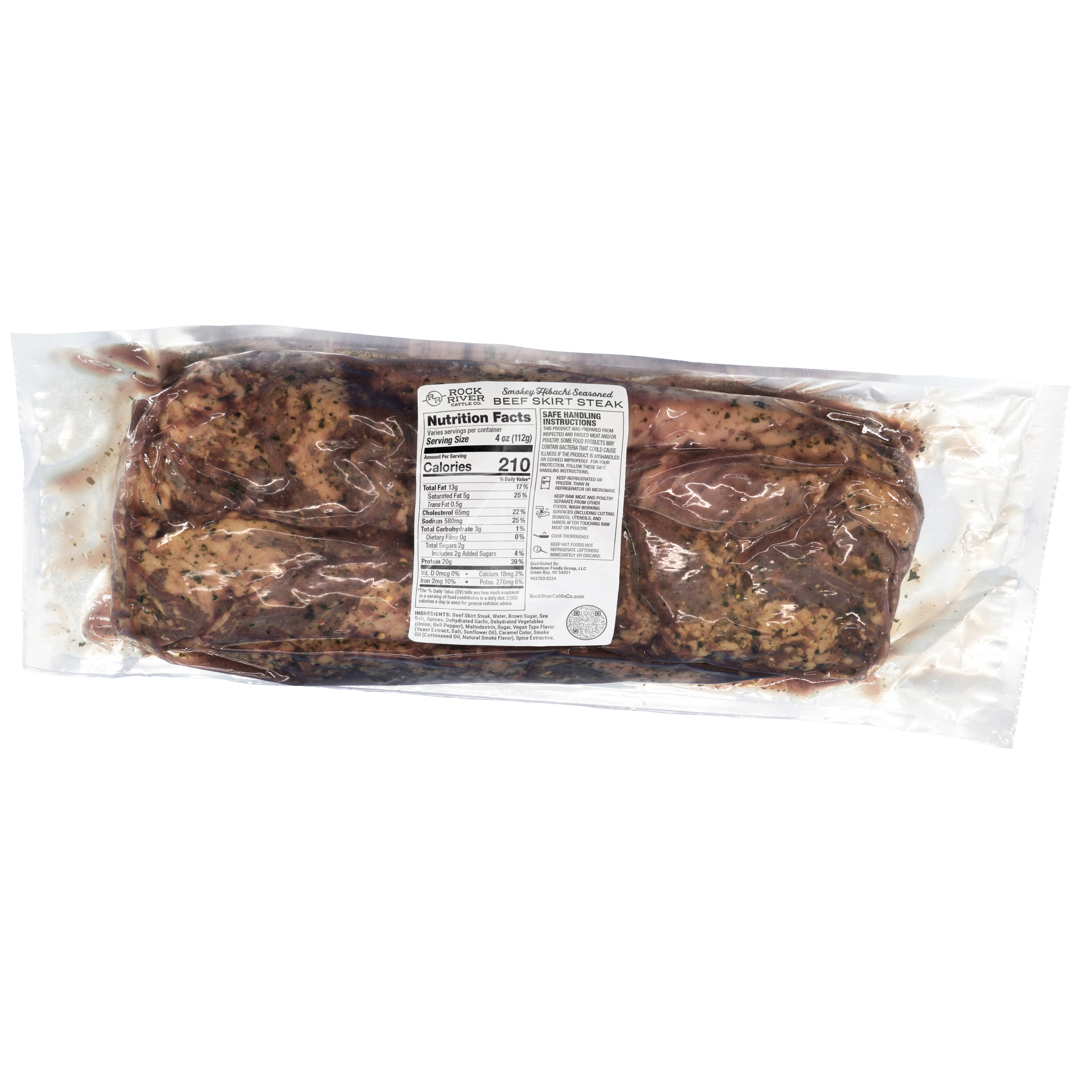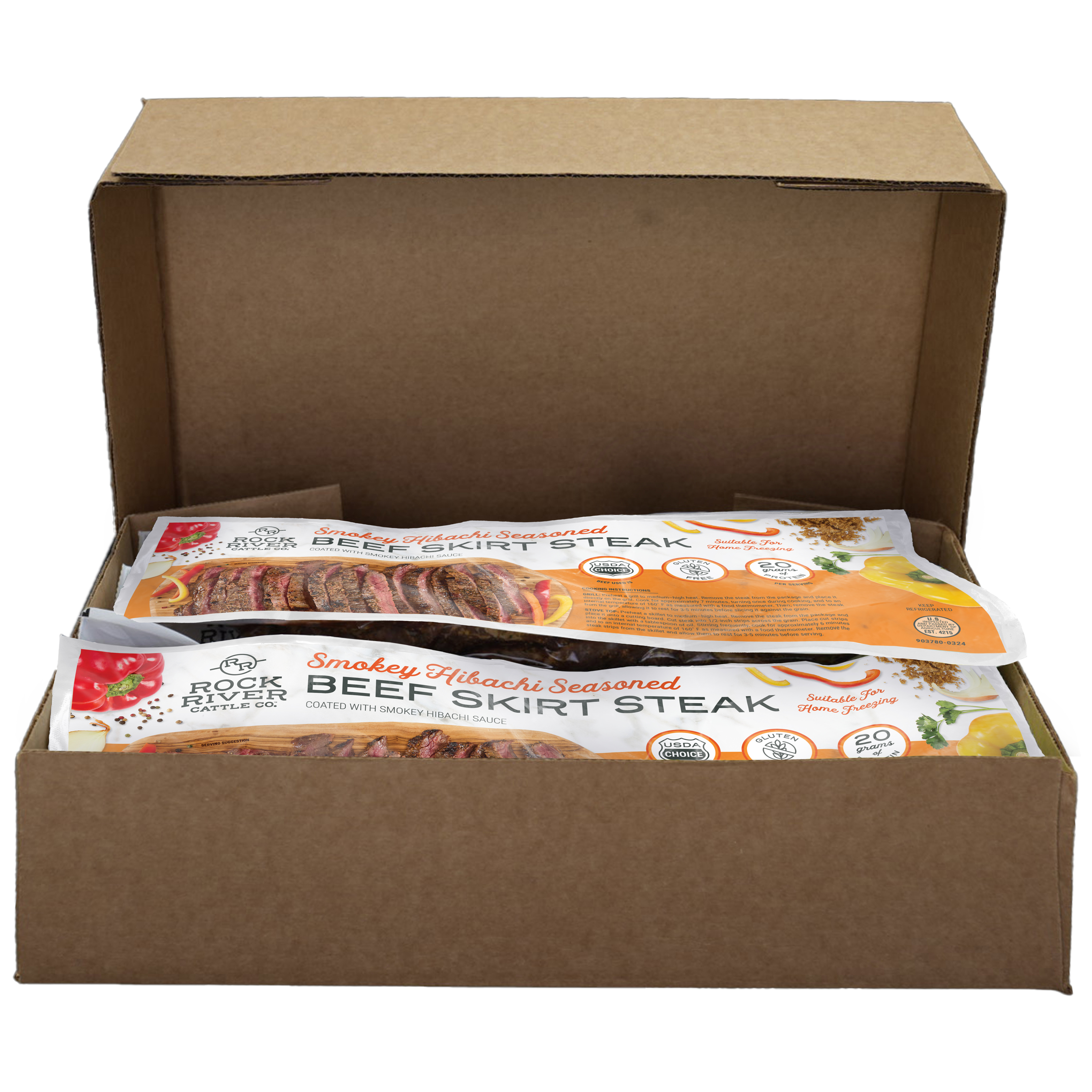 Rock River Fresh Smokey Hibachi Seasoned Beef Skirt Steak, 6-1.5 Pound Average Packages Per 9 Pound Average Weight Master Case, 1-24 Ounce Average Steak Per Package