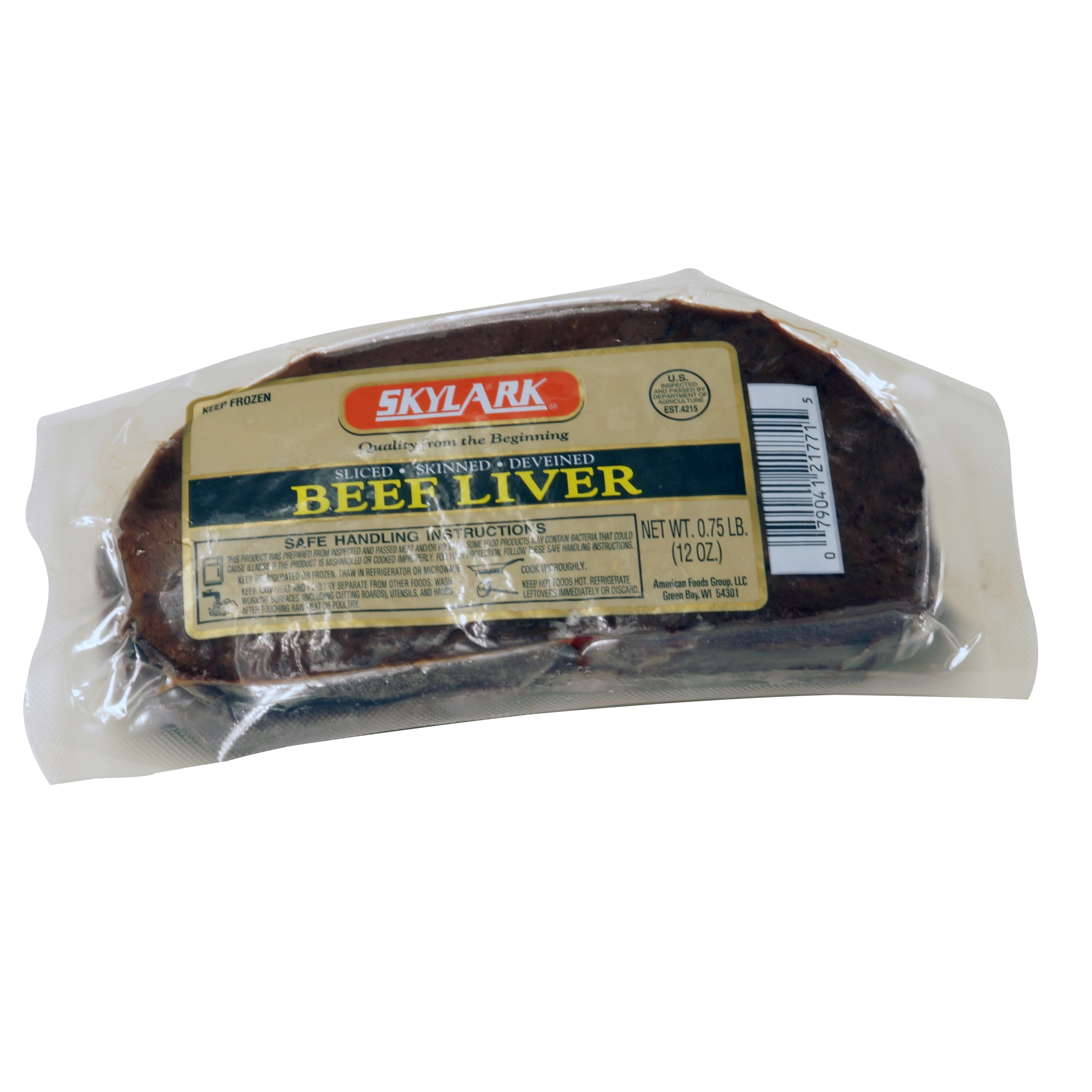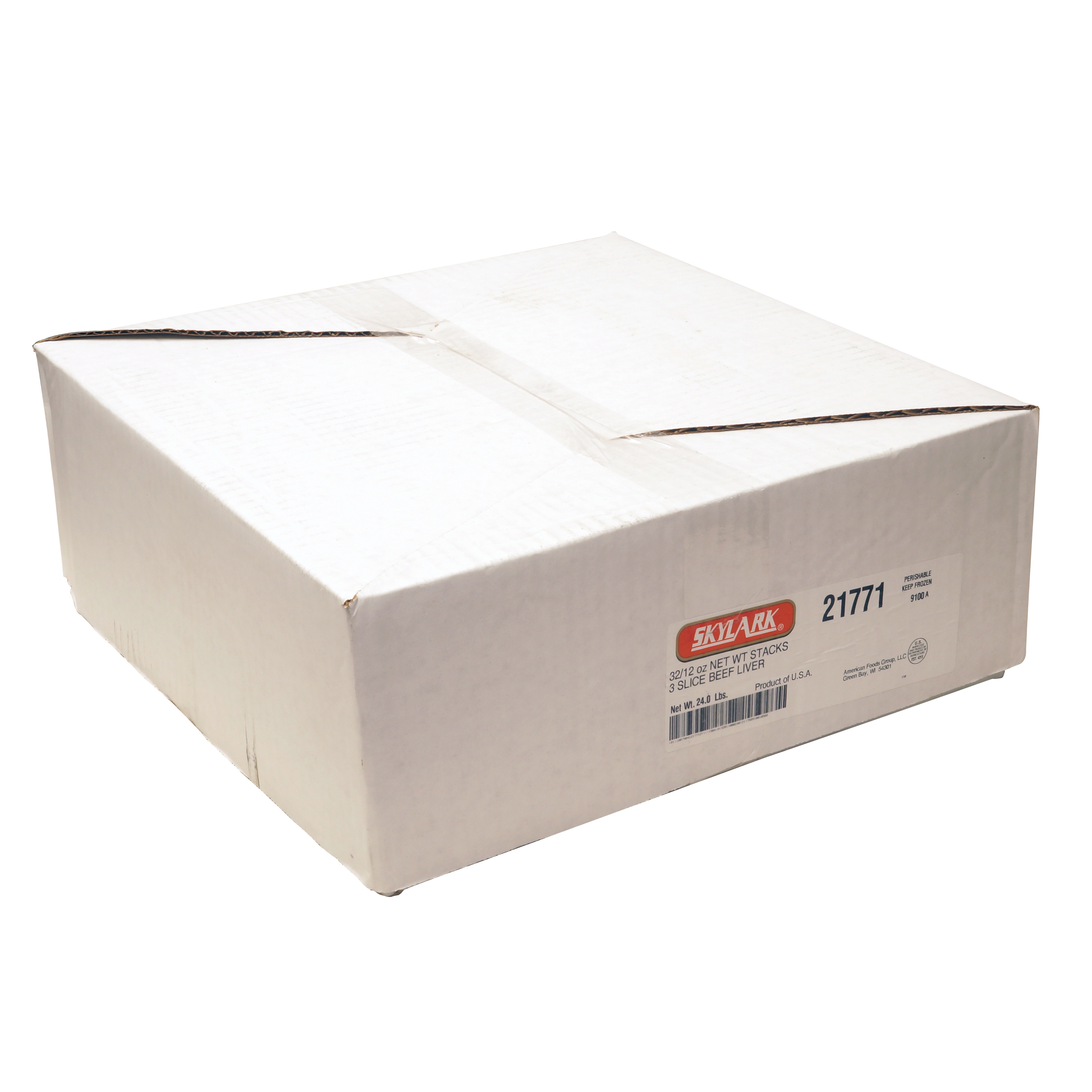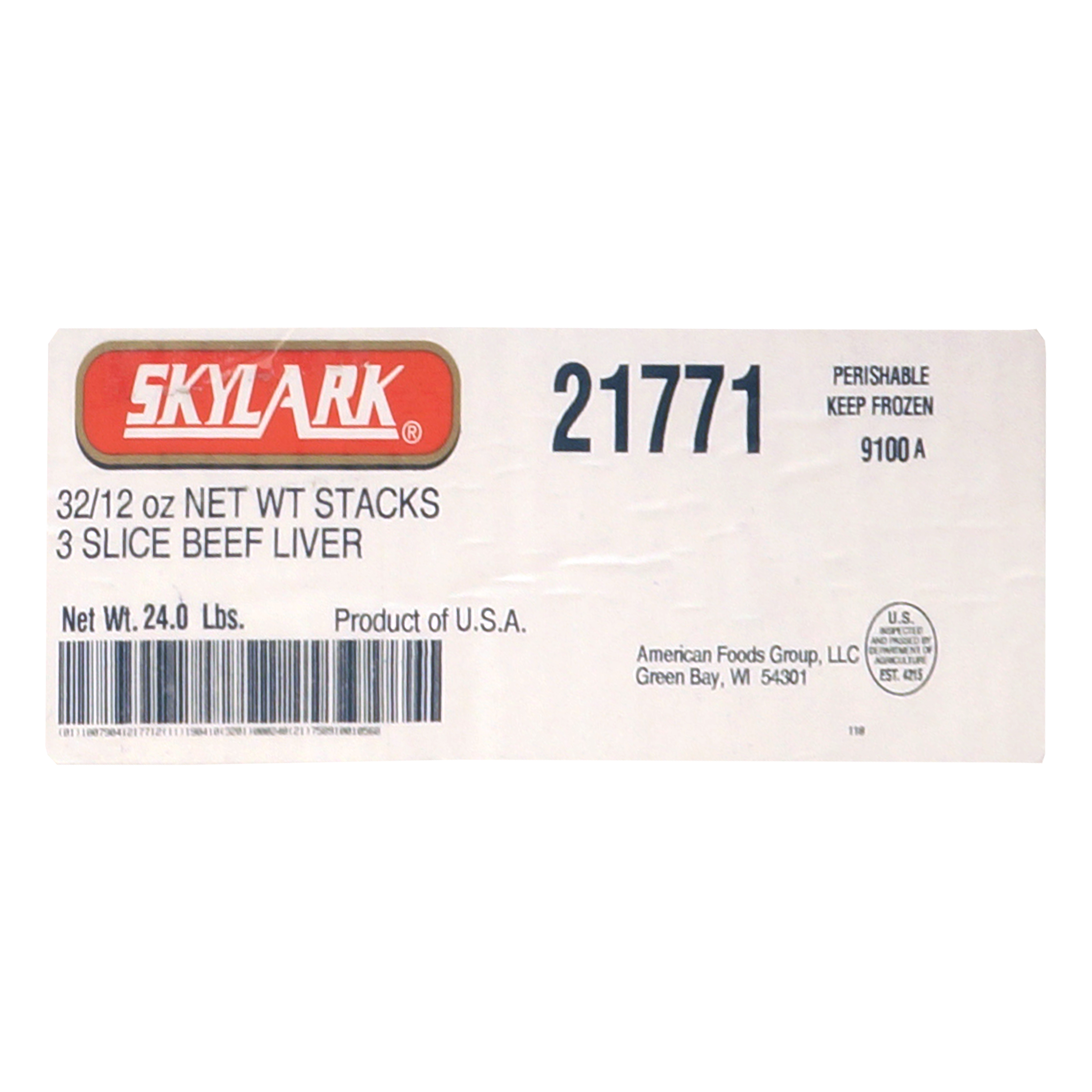 Skylark Frozen Stacked Beef Liver, 32-12 Ounce Packages Per 24 Pound Net Weight Master Case, 3-4 Ounce Slices Per Package
