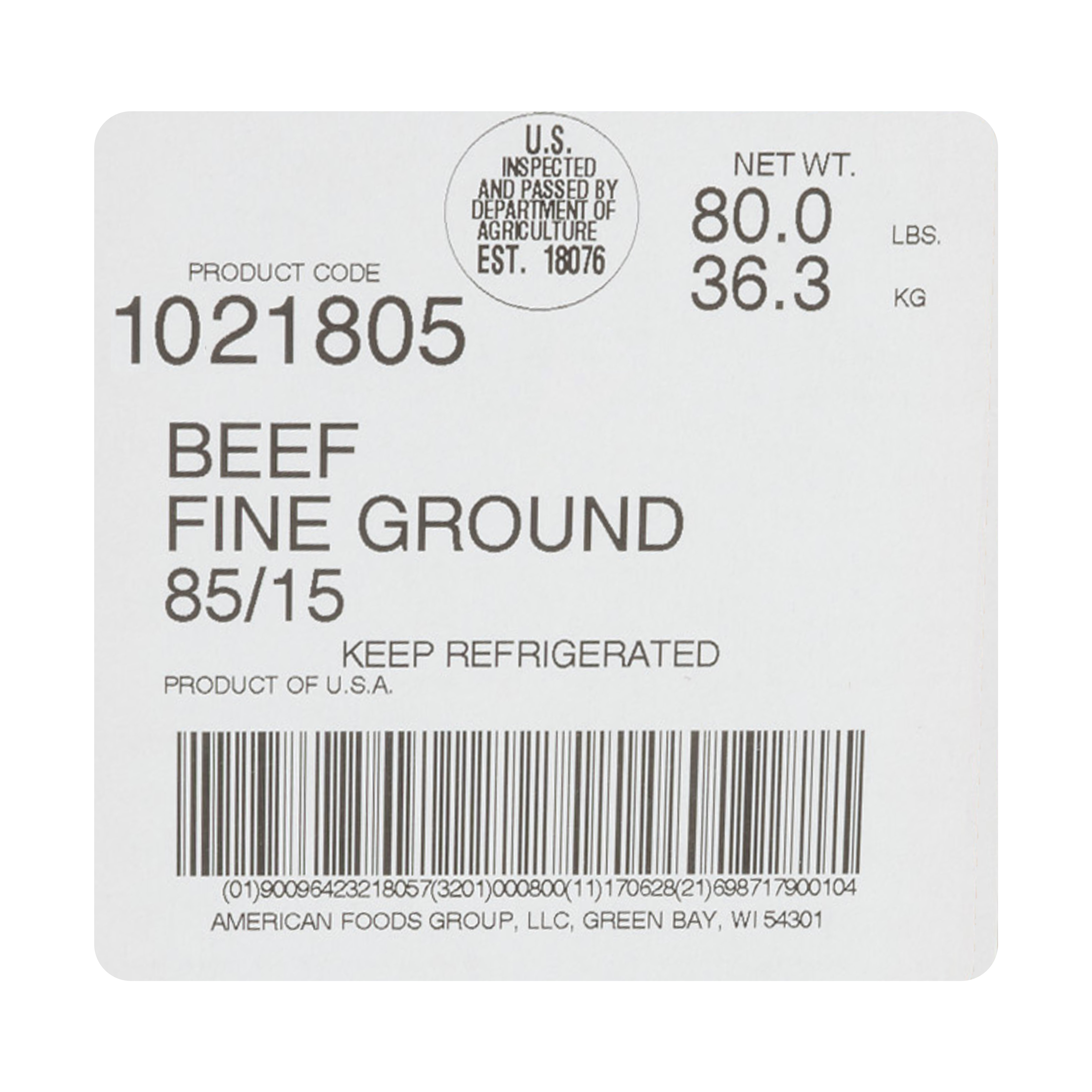 American Foods Group Fresh Fine Ground Beef, 85 Percent Lean 15 Percent Fat, 8-10 Pound Chubs Per 80 Pound Average Weight Master Case