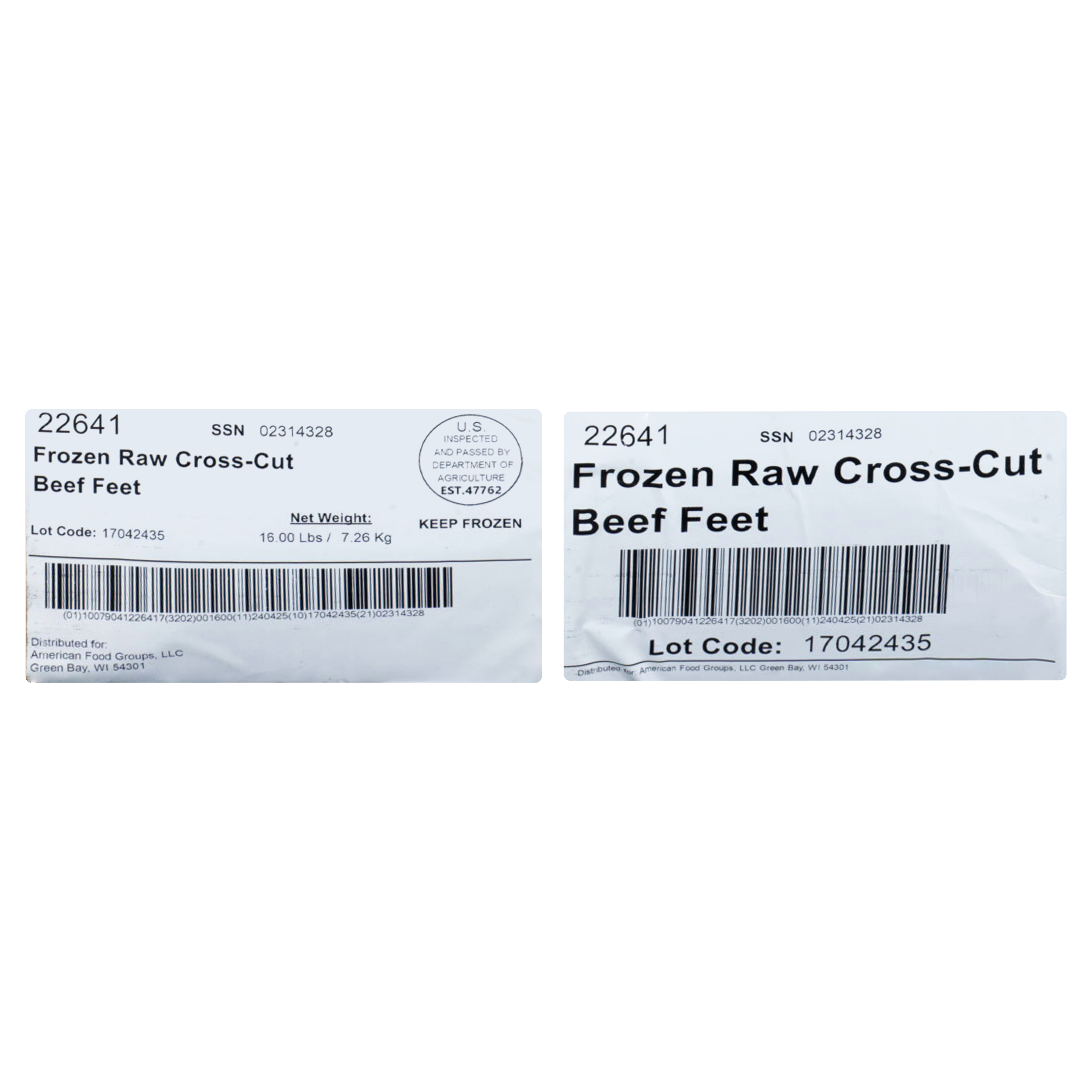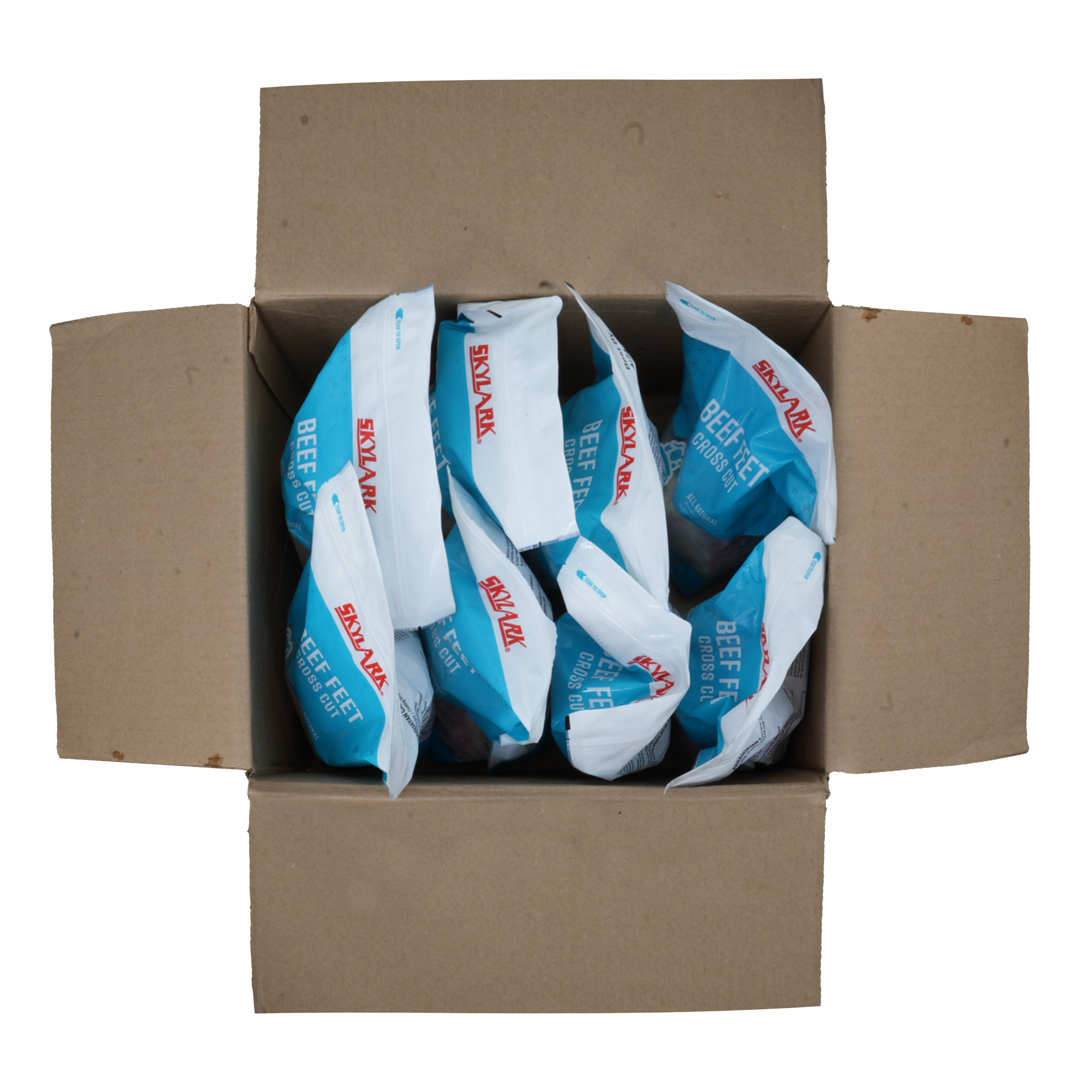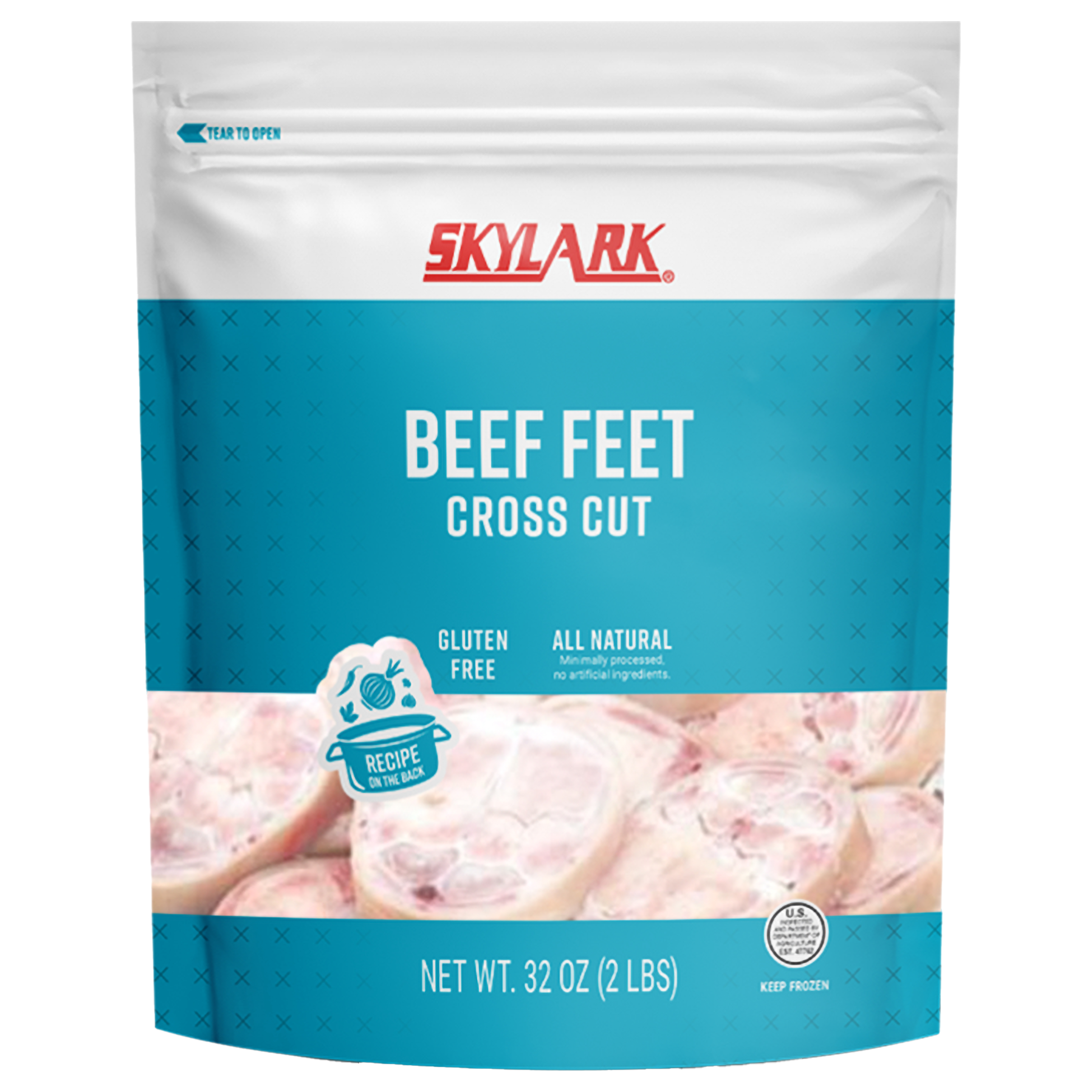 Skylark Frozen Raw Cross Cut Beef Feet, 8-32 Ounce Bags Per 16 Pound Net Weight Master Case, Multiple Pieces Per Bag