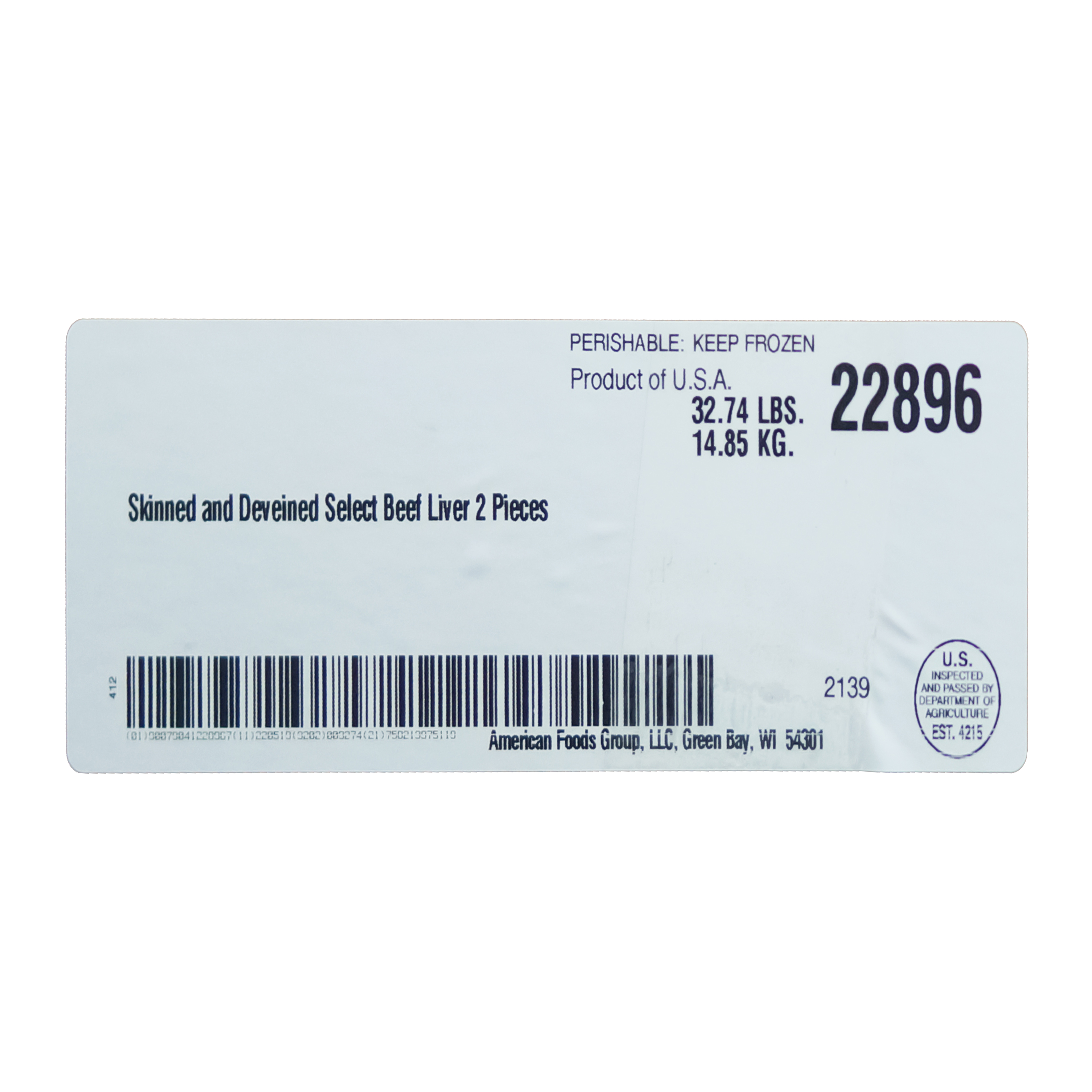 Skinned and Deveined Select Beef Liver 2/15 lb Pieces