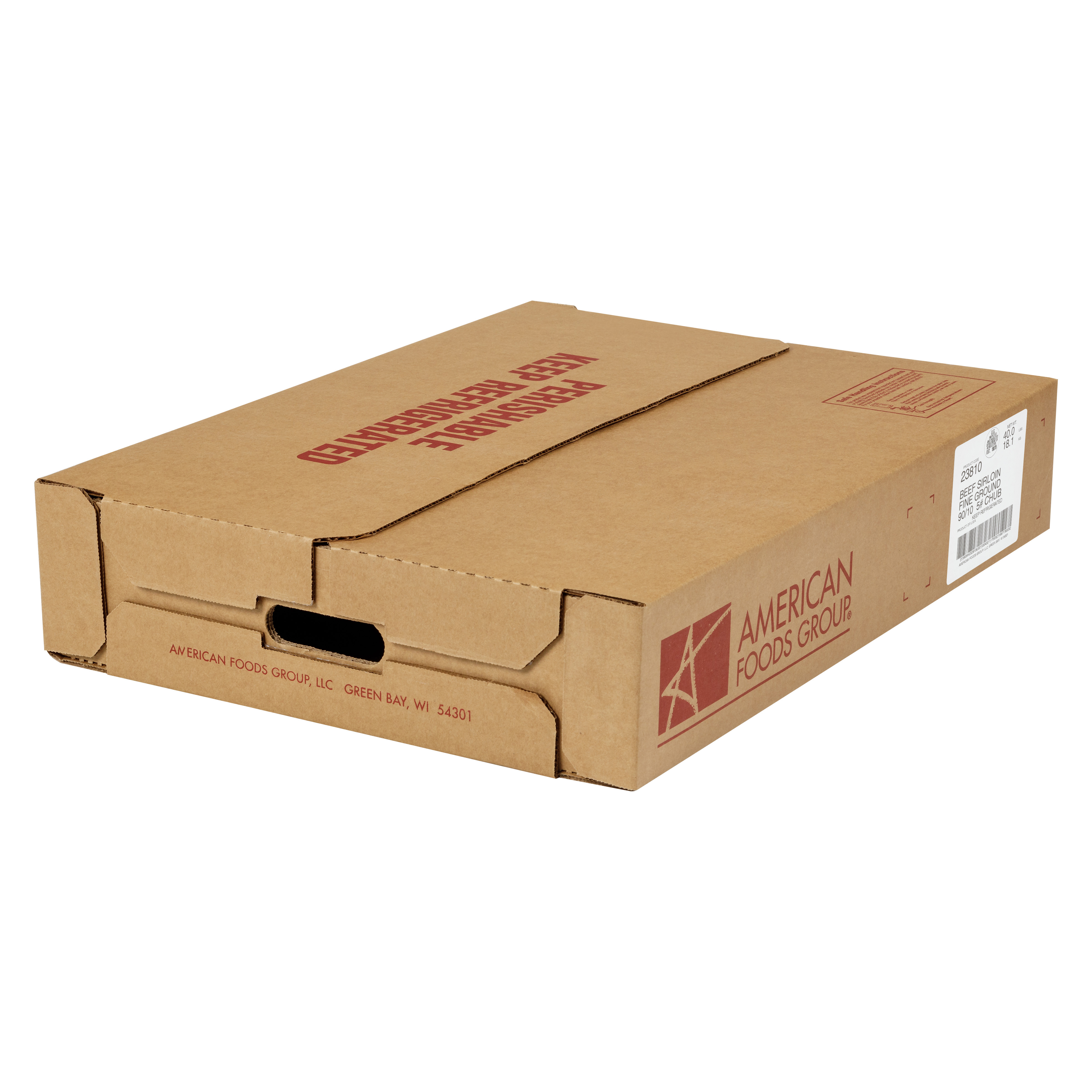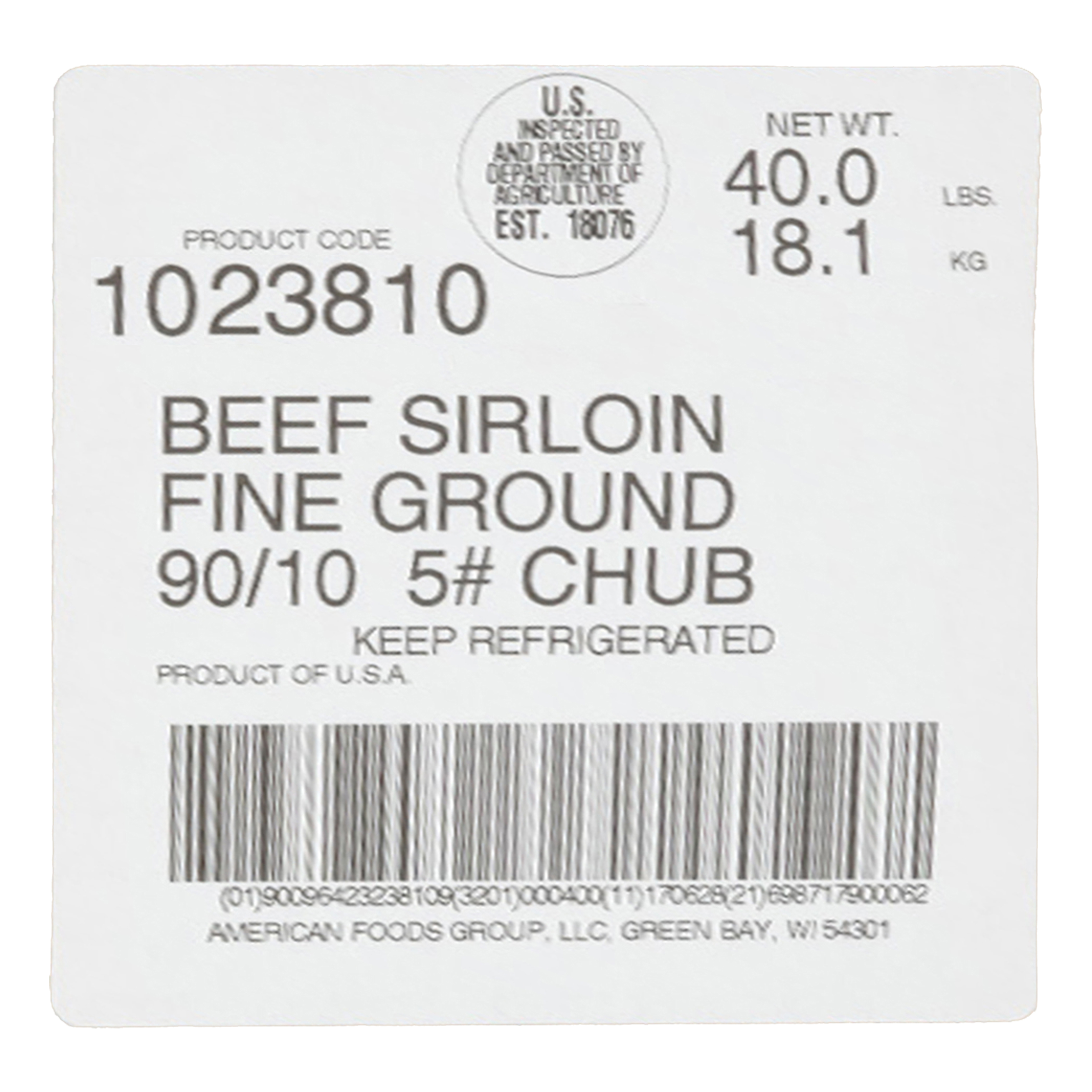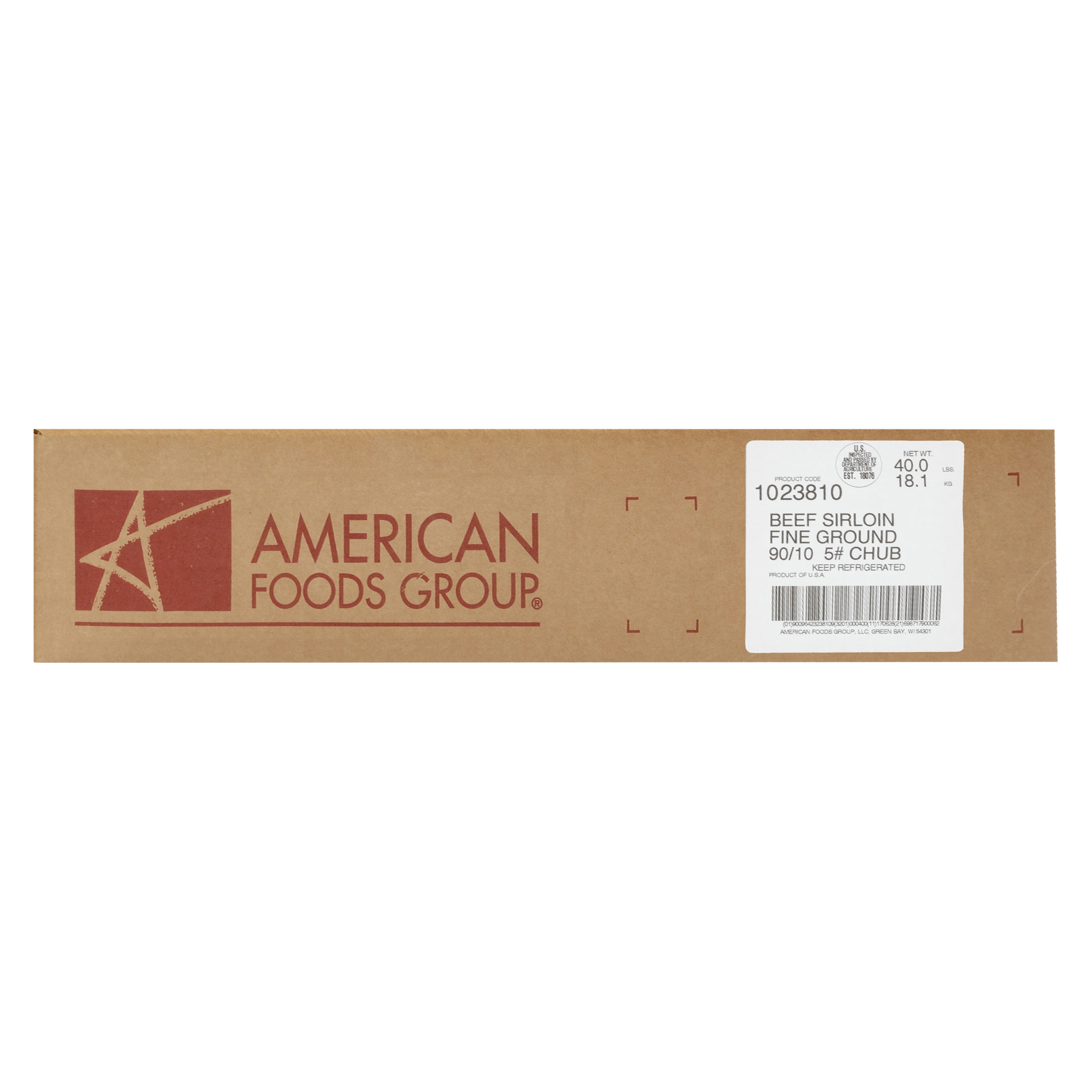 American Foods Group Fresh Fine Ground Beef Sirloin, 90 Percent Lean 10 Percent Fat 8-5 Pound Chubs Per 40 Pound Average Weight Master Case