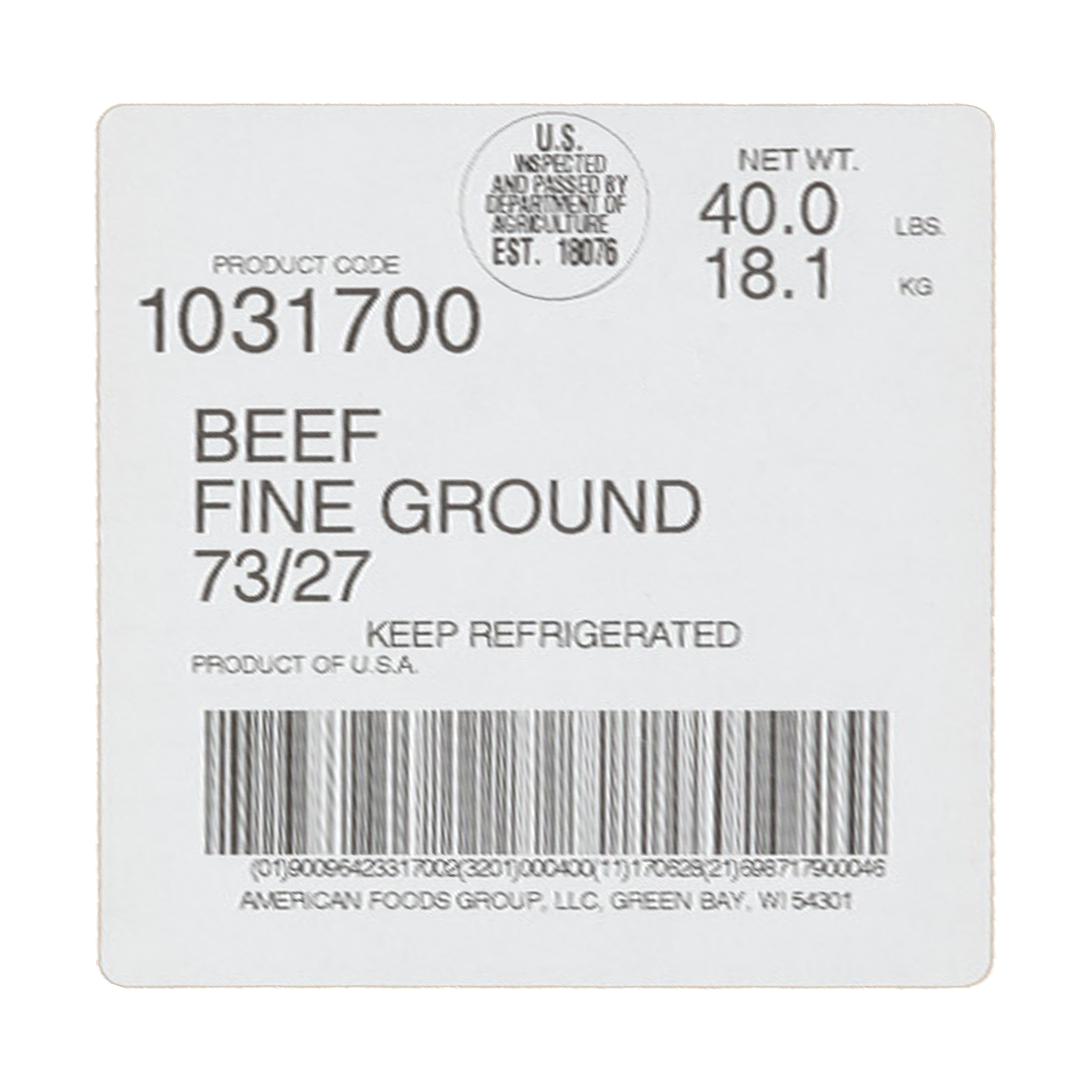 American Foods Group Fresh Fine Ground Beef, 73 Percent Lean 27 Percent Fat, 4-10 Pound Chubs Per 40 Pound Average Weight Master Case