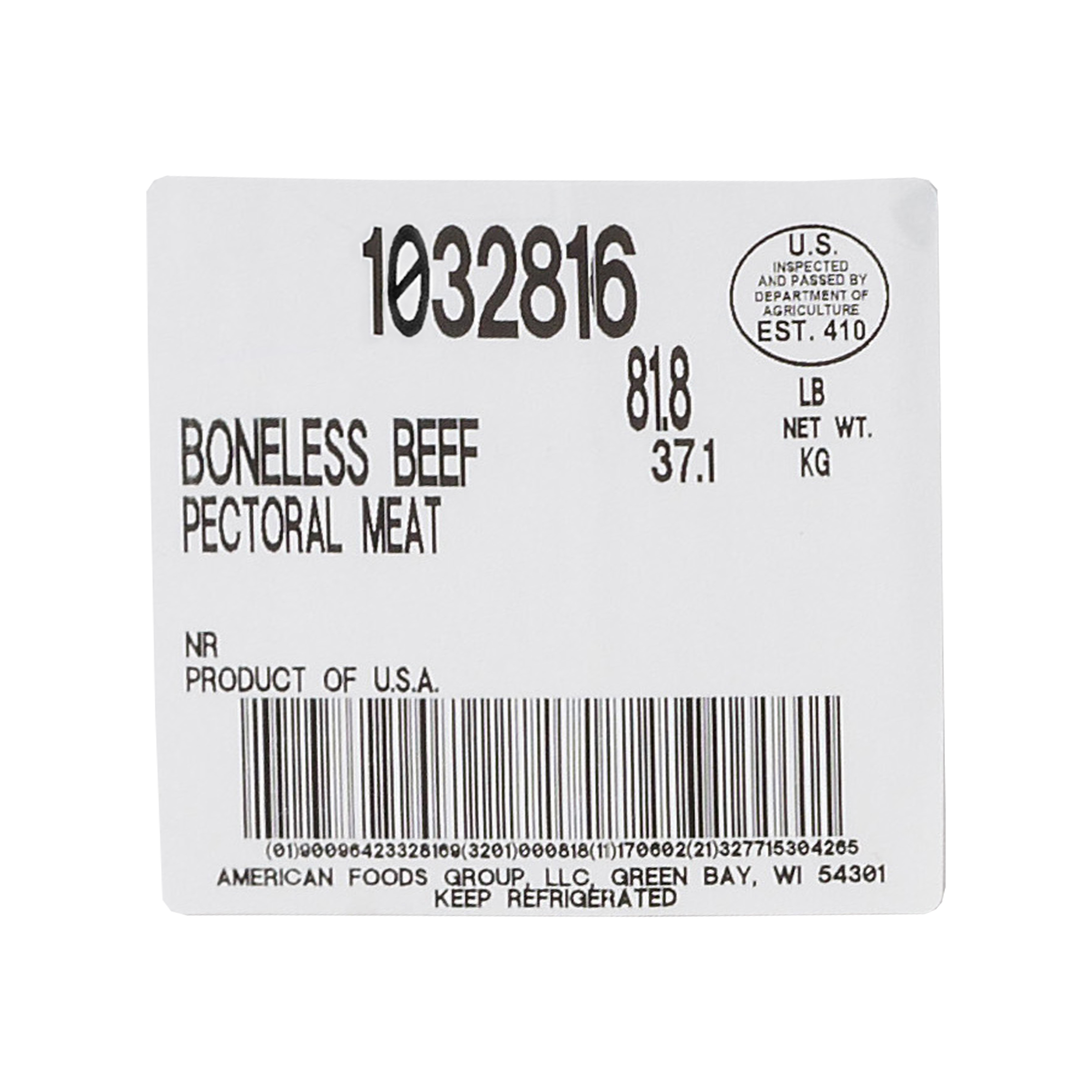 DESCRIPTION – The America's Heartland Boneless Beef Pectoral Meat is 100% No Roll Grade beef and contains no additives.