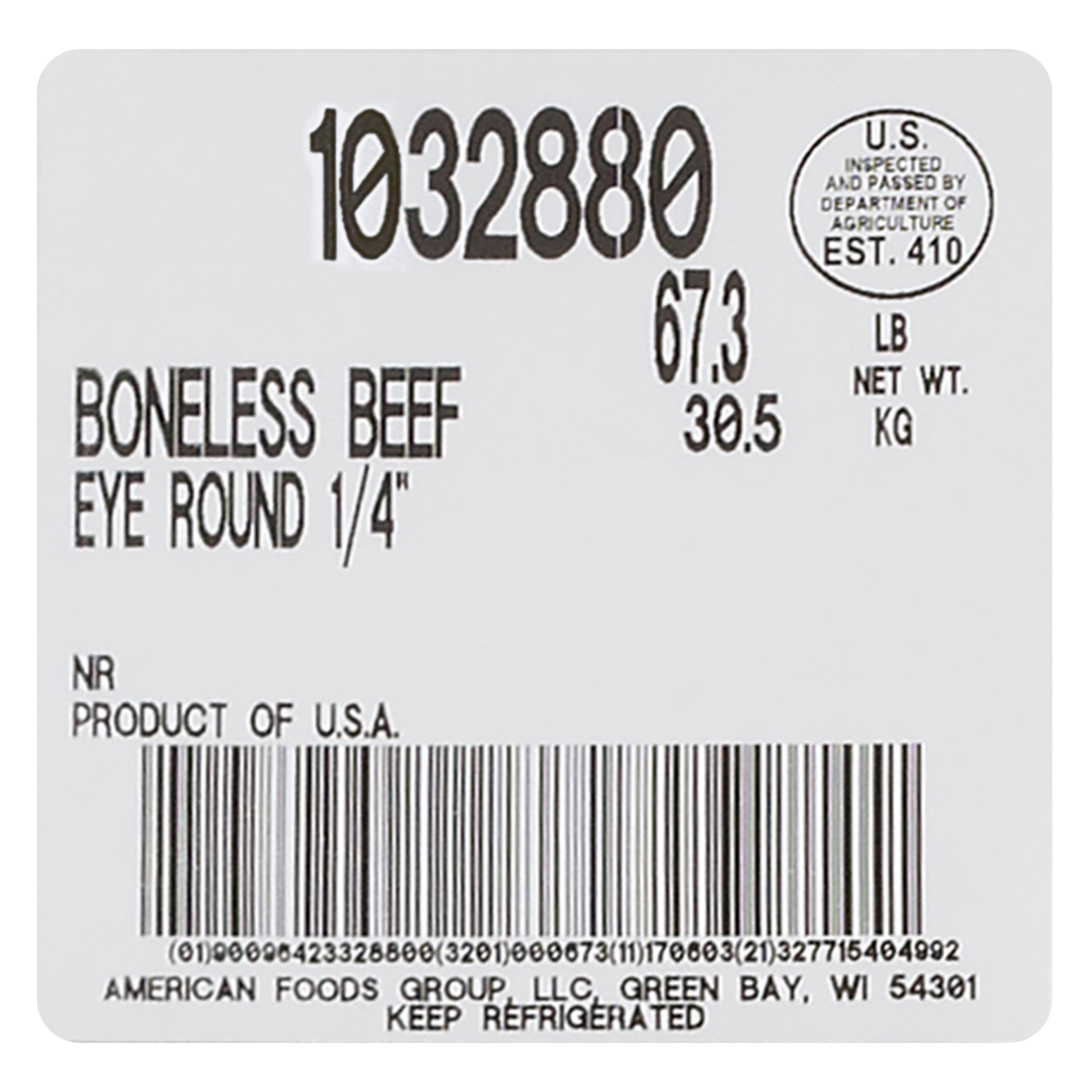 America’s Heartland Fresh Boneless Beef Eye Round, No Roll Grade, 12 Bags Per 80 Pound Average Weight Master Case, 1 Eye Round Per Bag