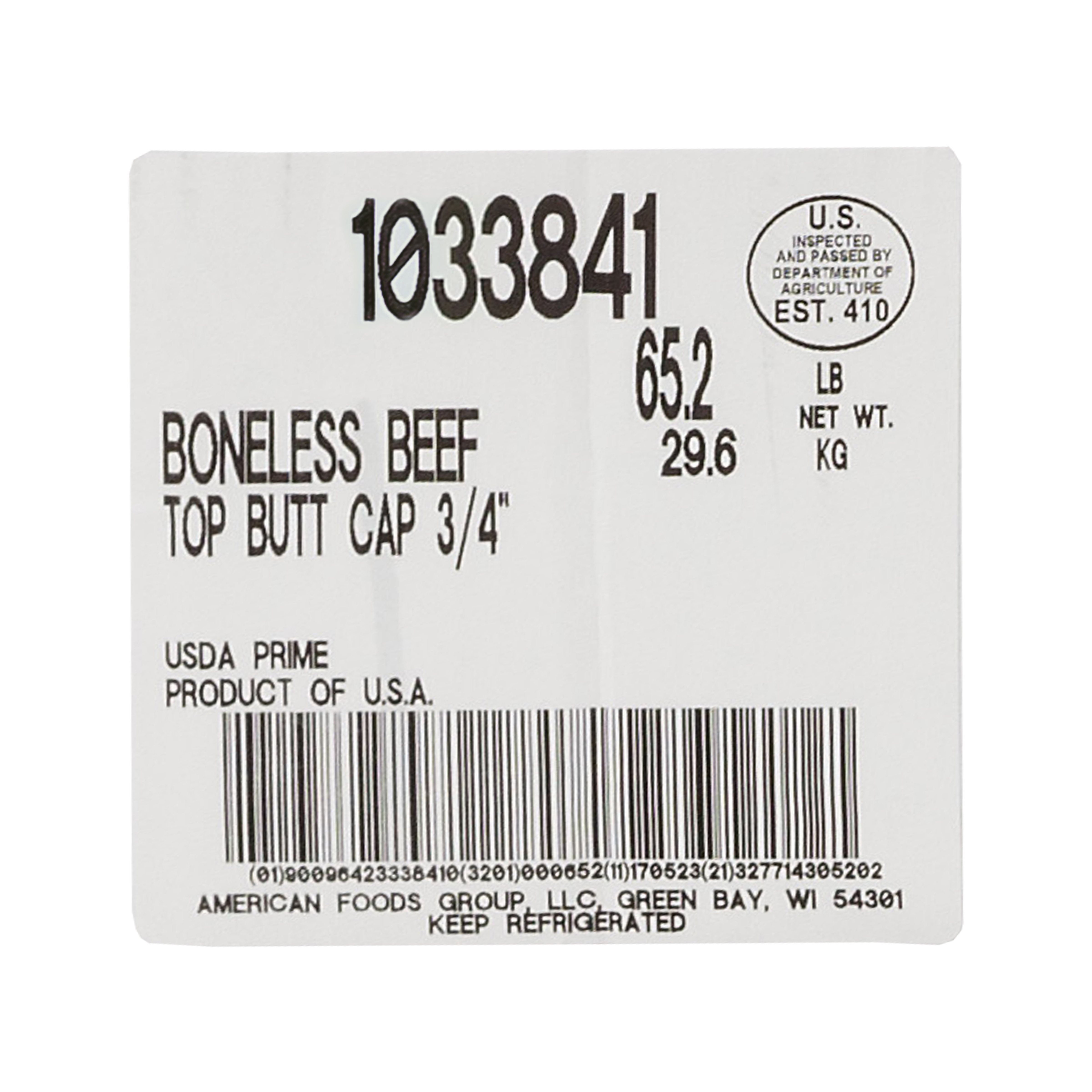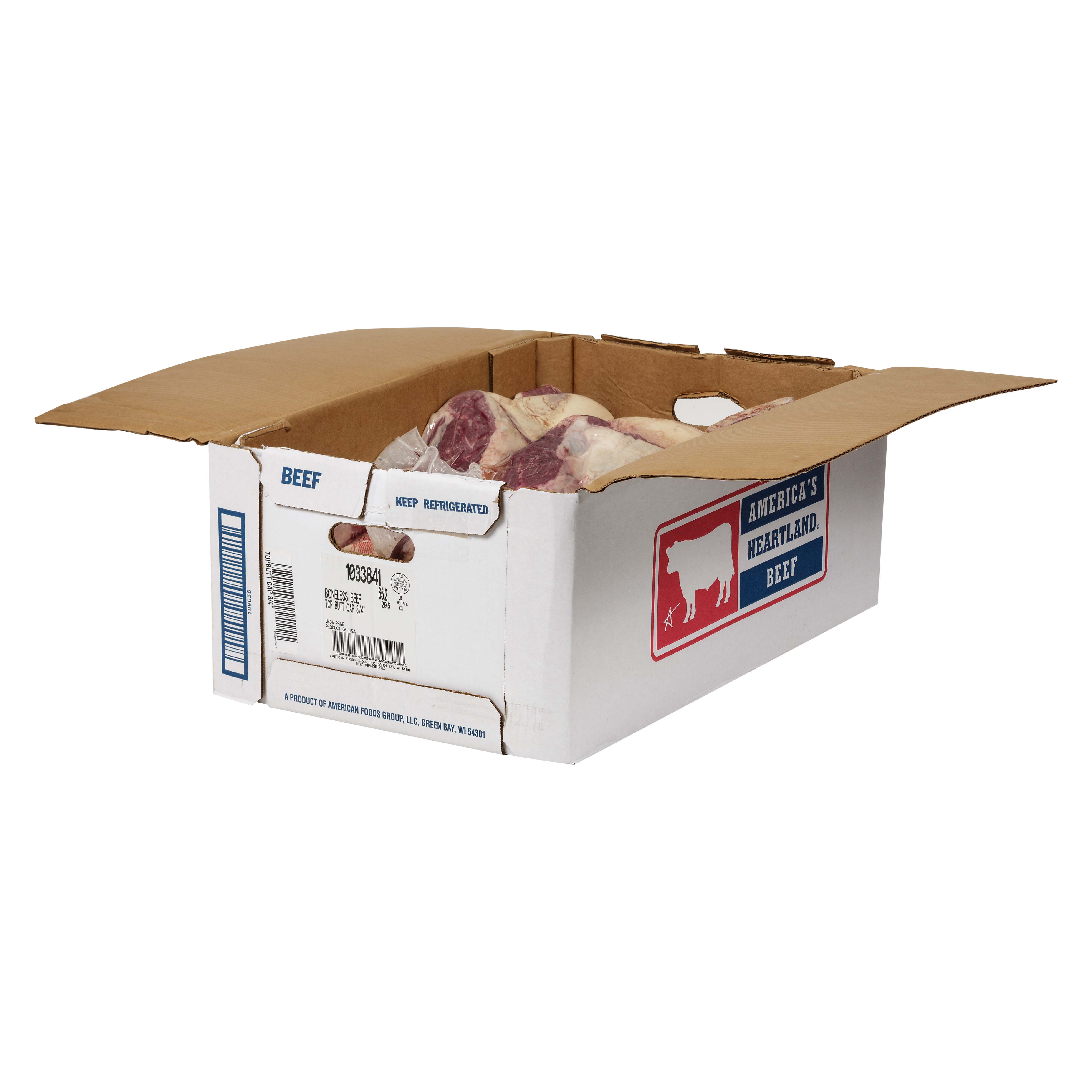DESCRIPTION – The America's Heartland Boneless Beef Top Sirloin Butt Cap is 100% Prime Grade beef and contains no additives.