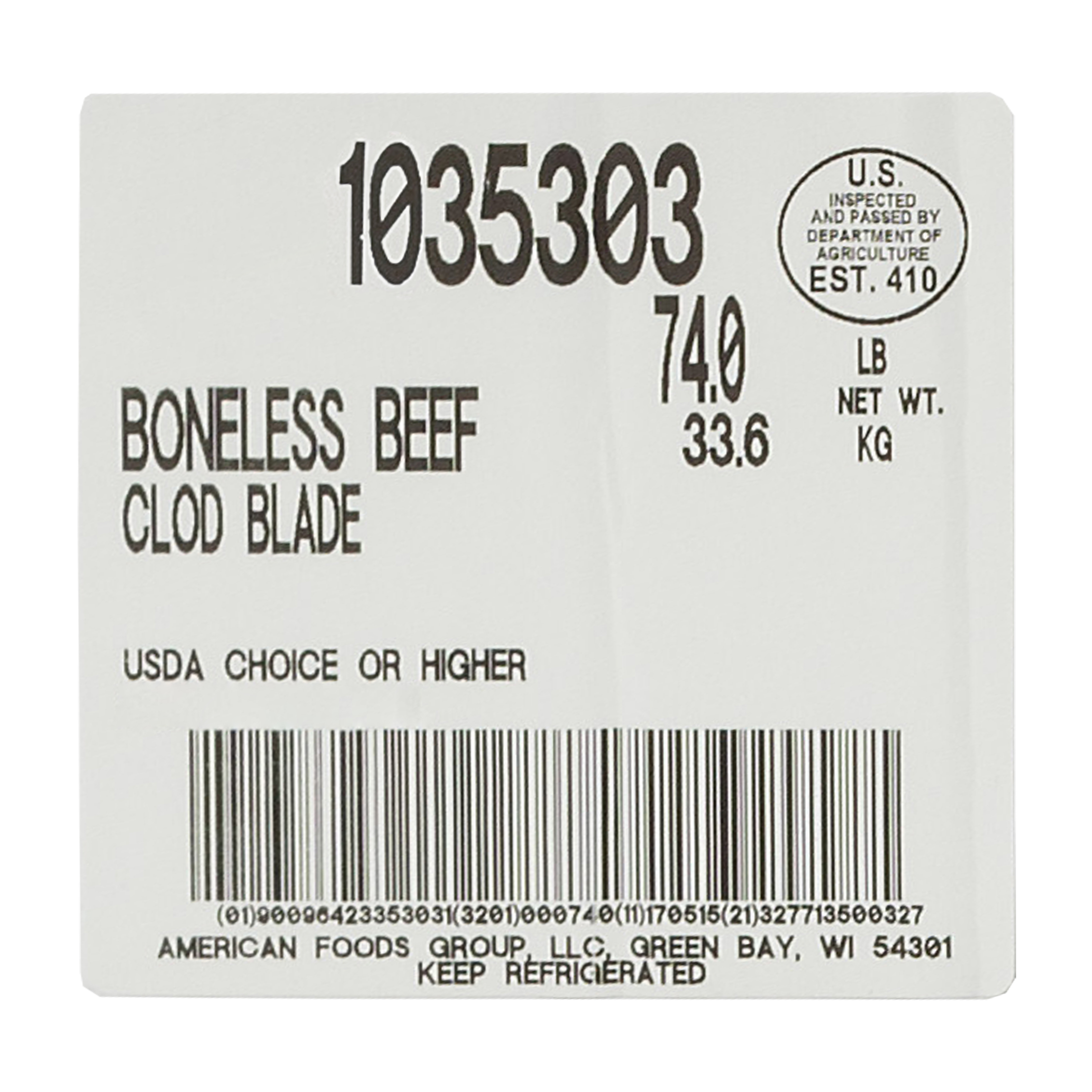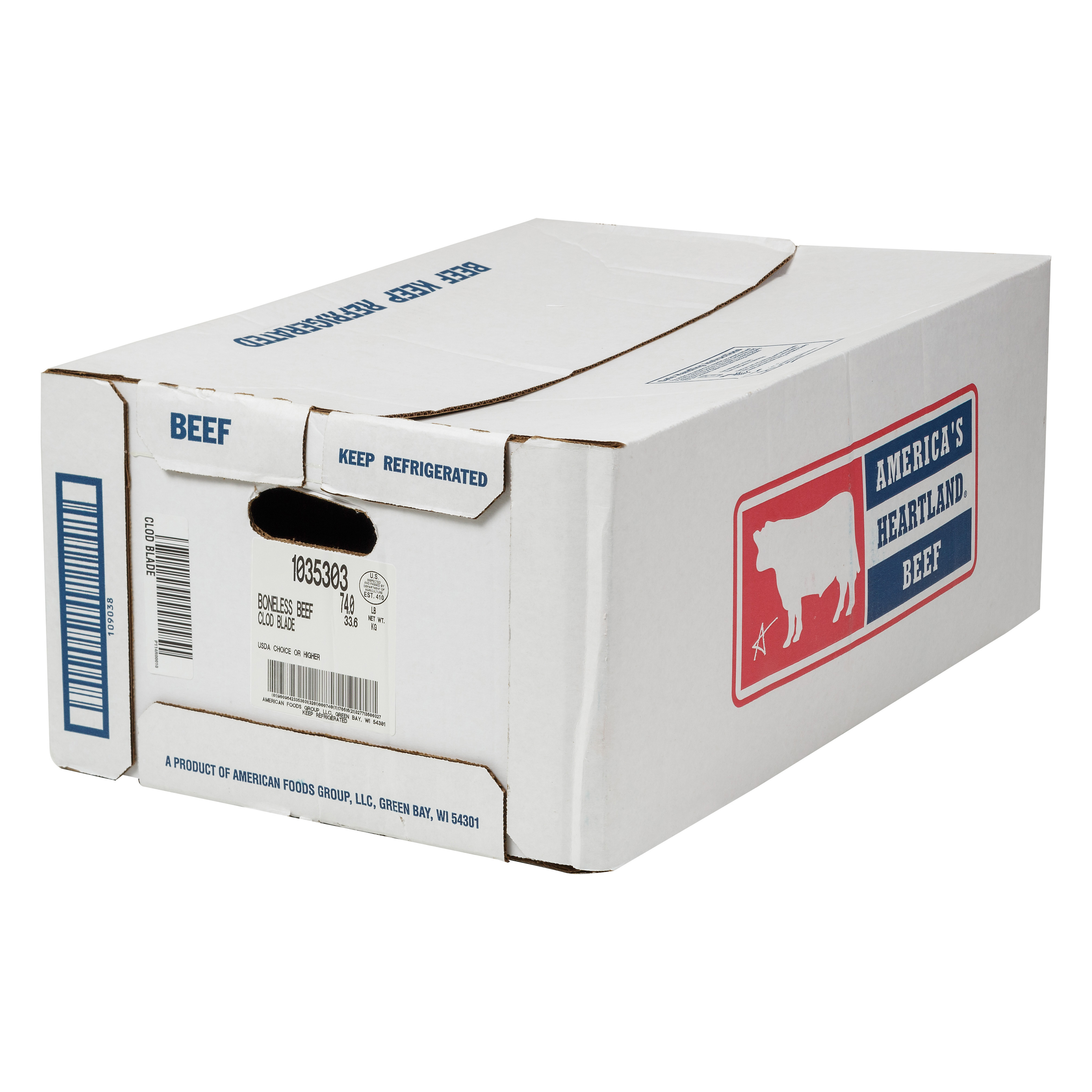 DESCRIPTION – The America's Heartland Boneless Beef Clod Blade is 100% Choice Grade beef and contains no additives.