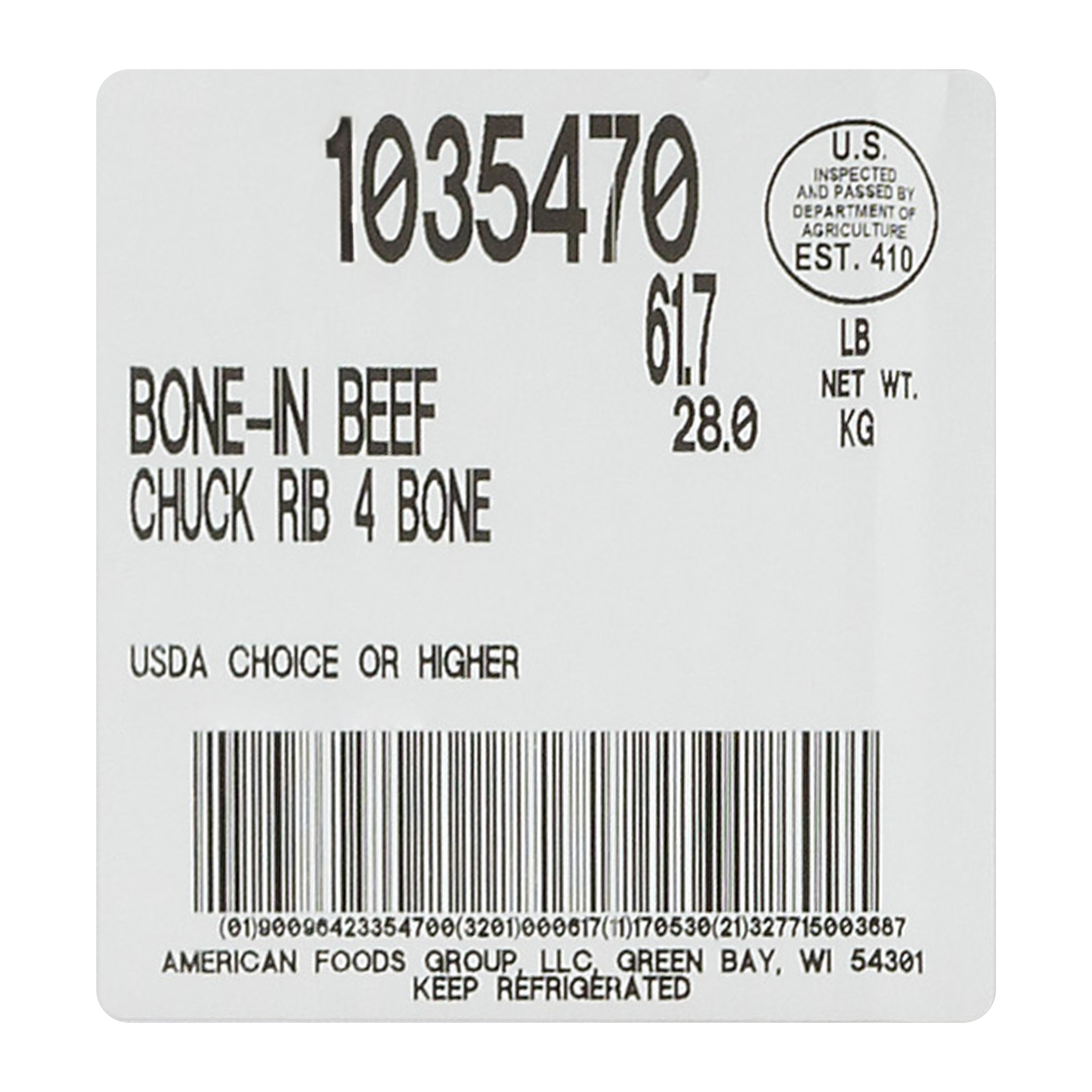 DESCRIPTION – The America's Heartland Bone-In Beef Chuck Rib is 100% Choice Grade beef and contains no additives.