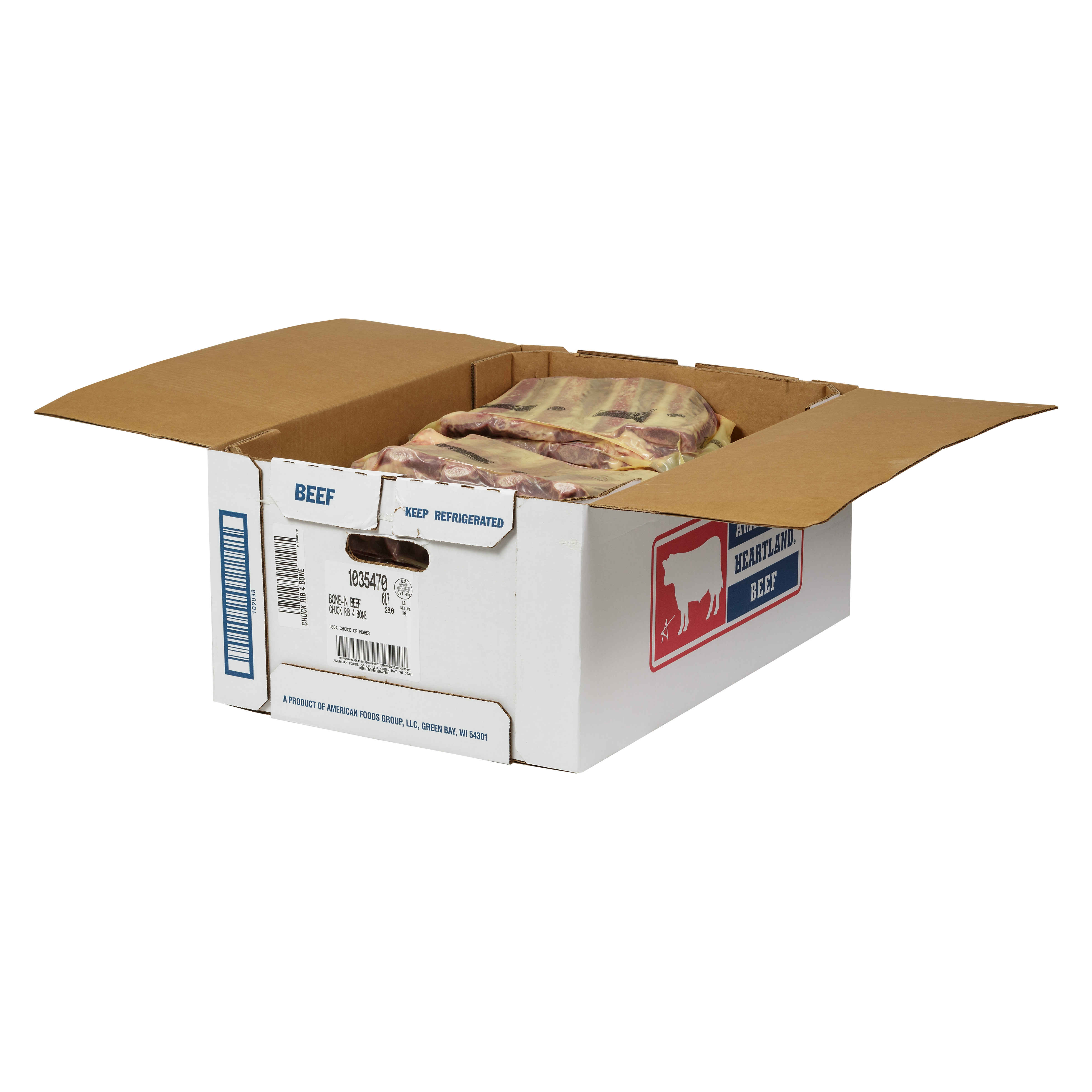 America’s Heartland Fresh Bone-In Beef Chuck Rib 4 Bone, Choice Grade, 8 Bags Per 61 Pound Average Weight Master Case, 2 Chuck Ribs Per Bag