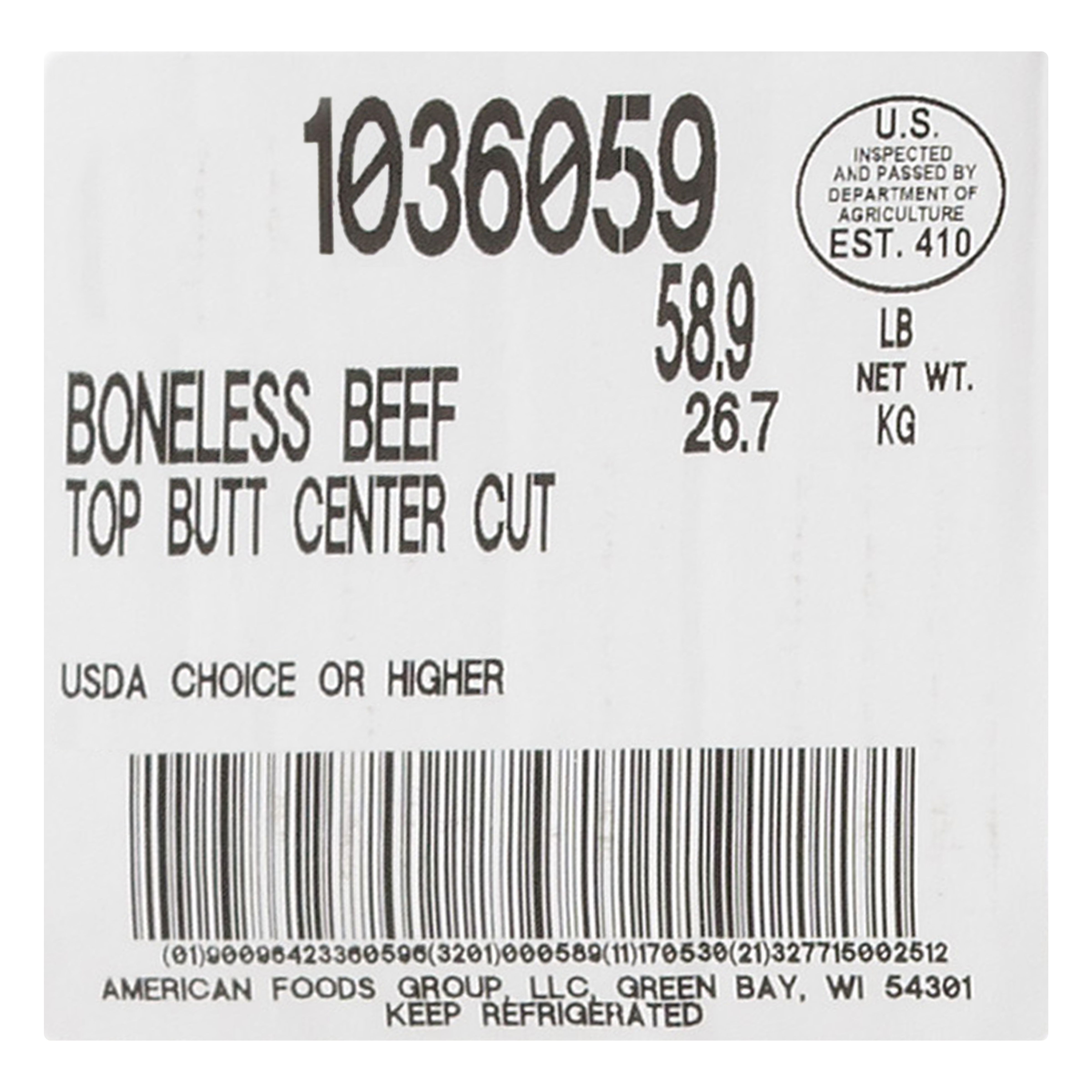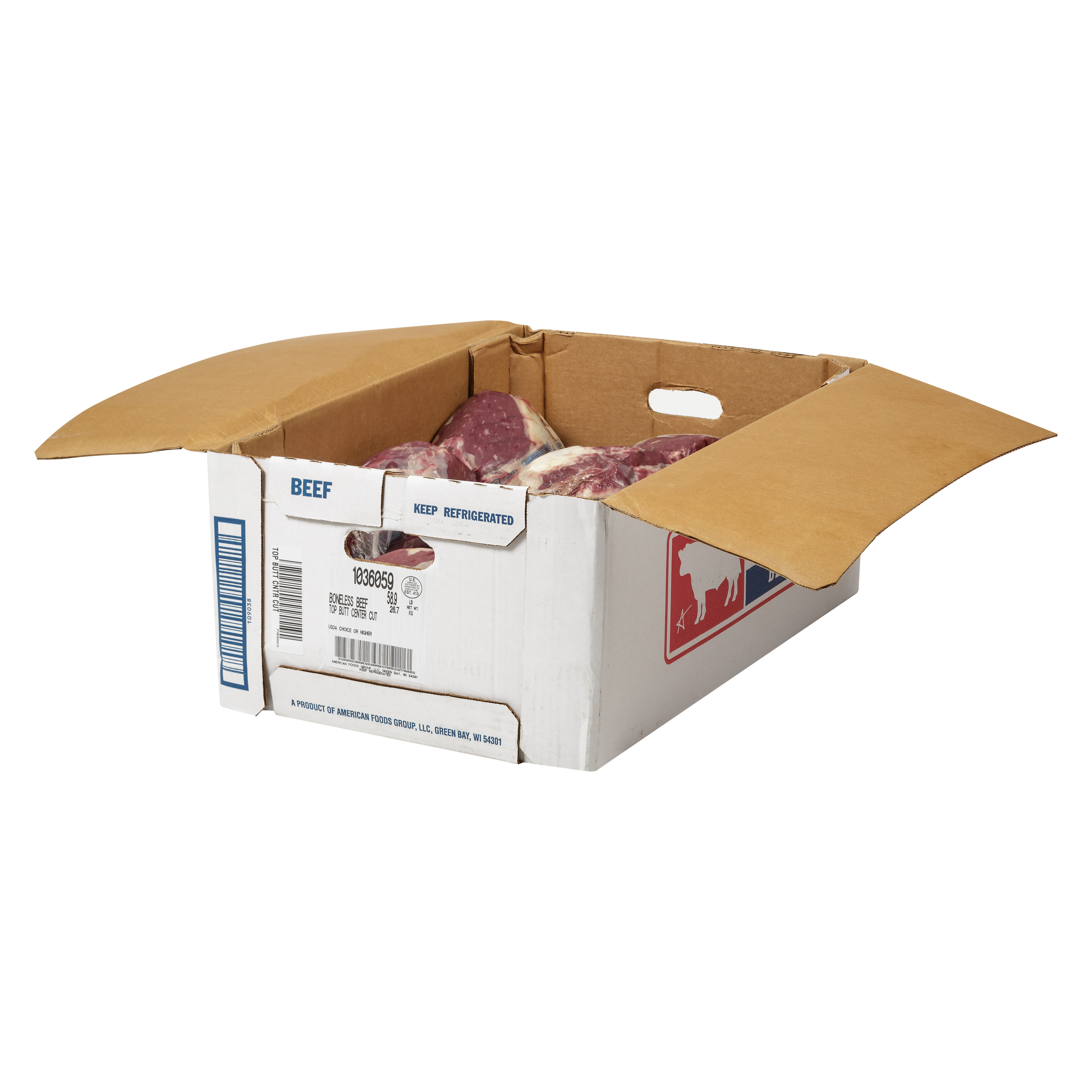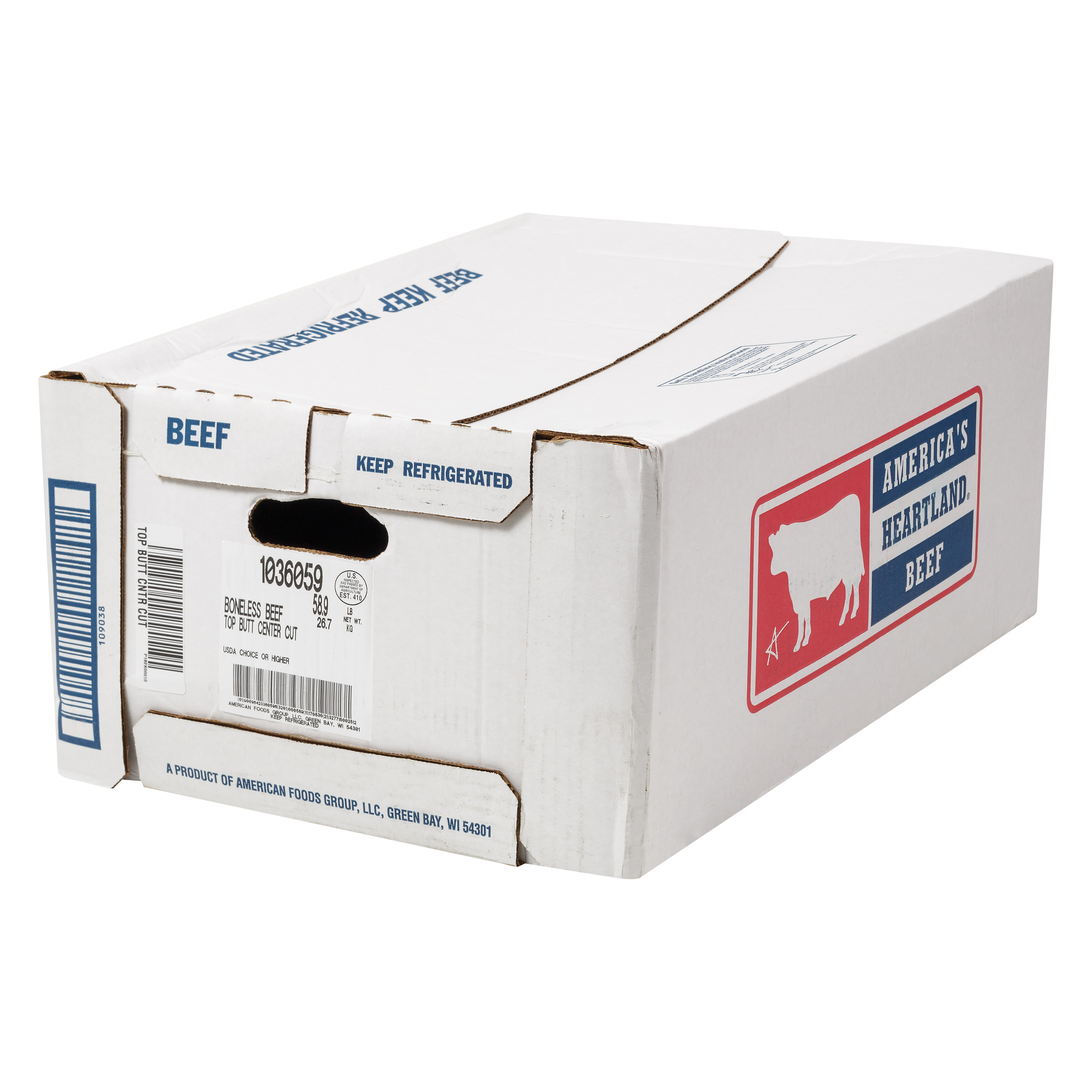 America’s Heartland Fresh Boneless Beef Top Butt, Choice Grade, 5 Bags Per 70 Pound Average Weight Master Case, 2 Top Butts Per Bag