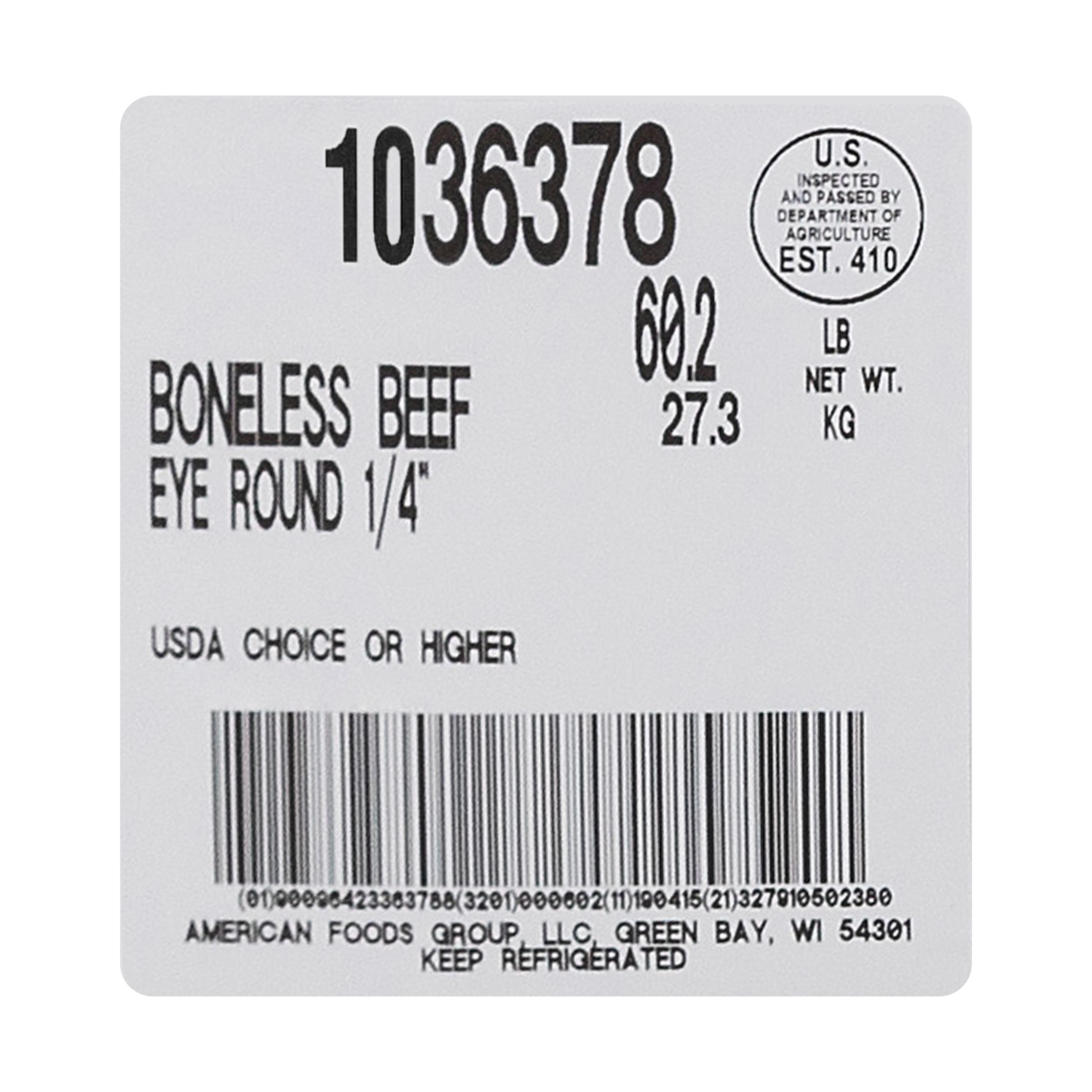 DESCRIPTION – The America's Heartland Boneless Beef Eye Round is 100% Choice Grade beef and contains no additives.