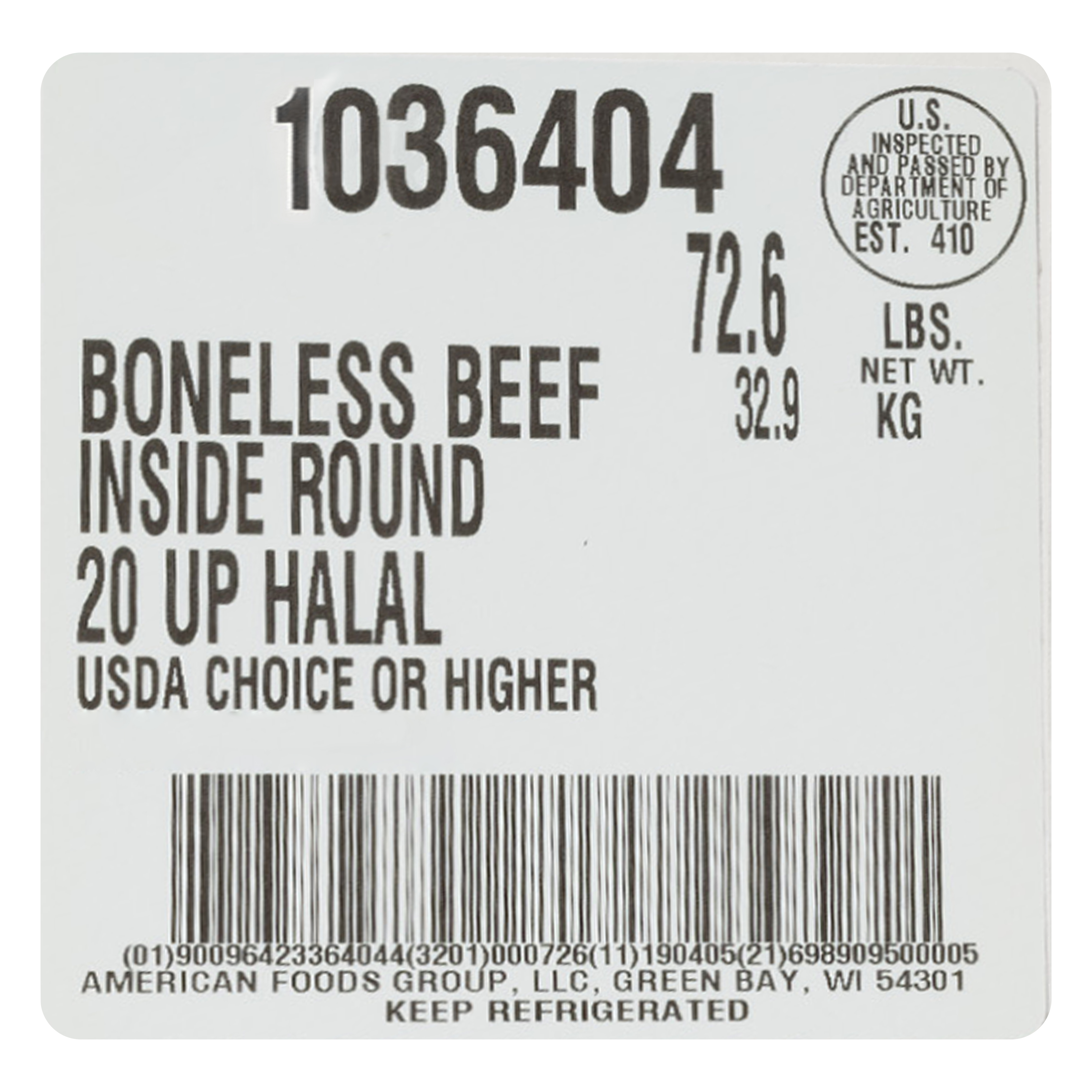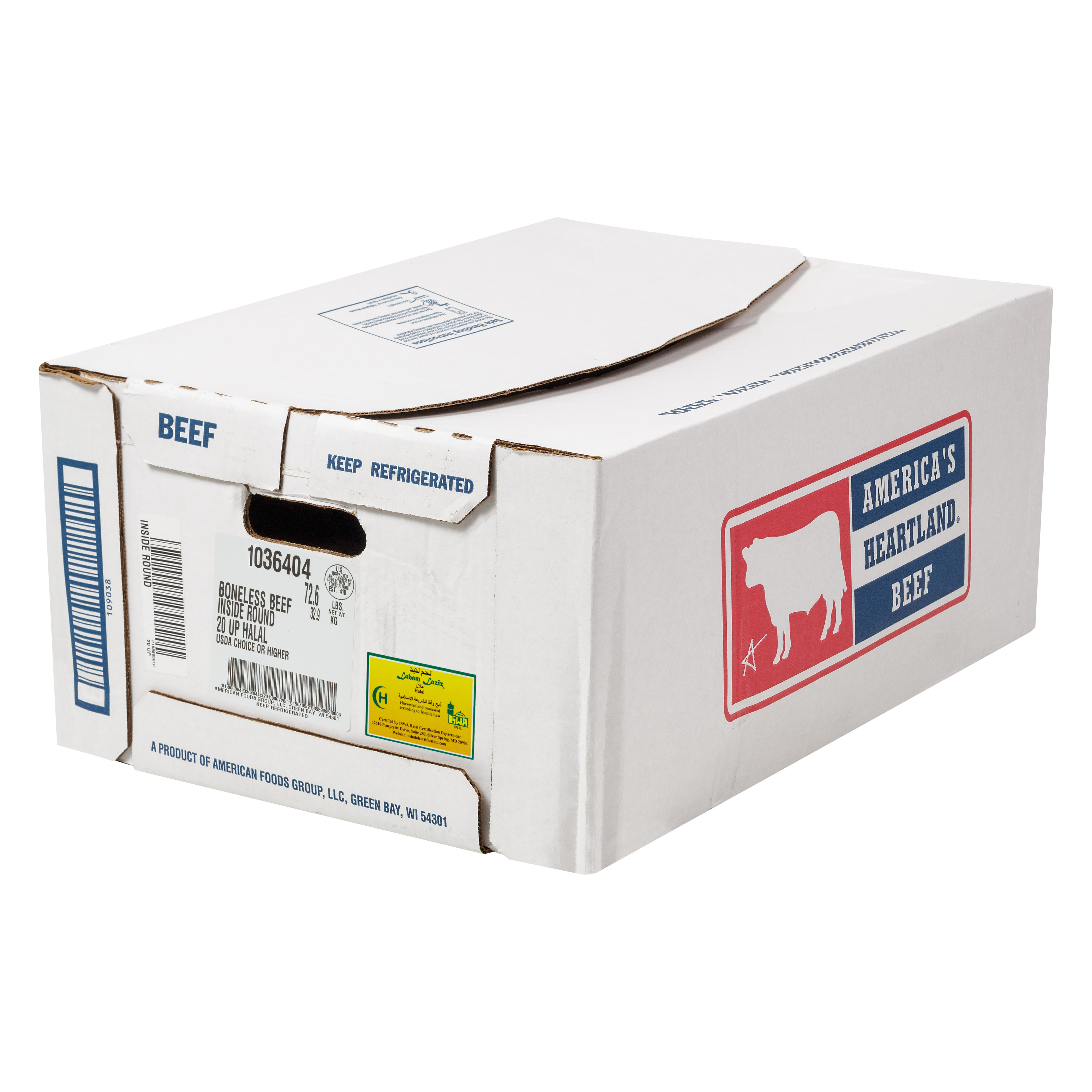 America’s Heartland Halal Fresh Boneless Beef Inside Round, Choice Grade, 3 Bags Per 73 Pound Average Weight Master Case, 1 Inside Round Per Bag
