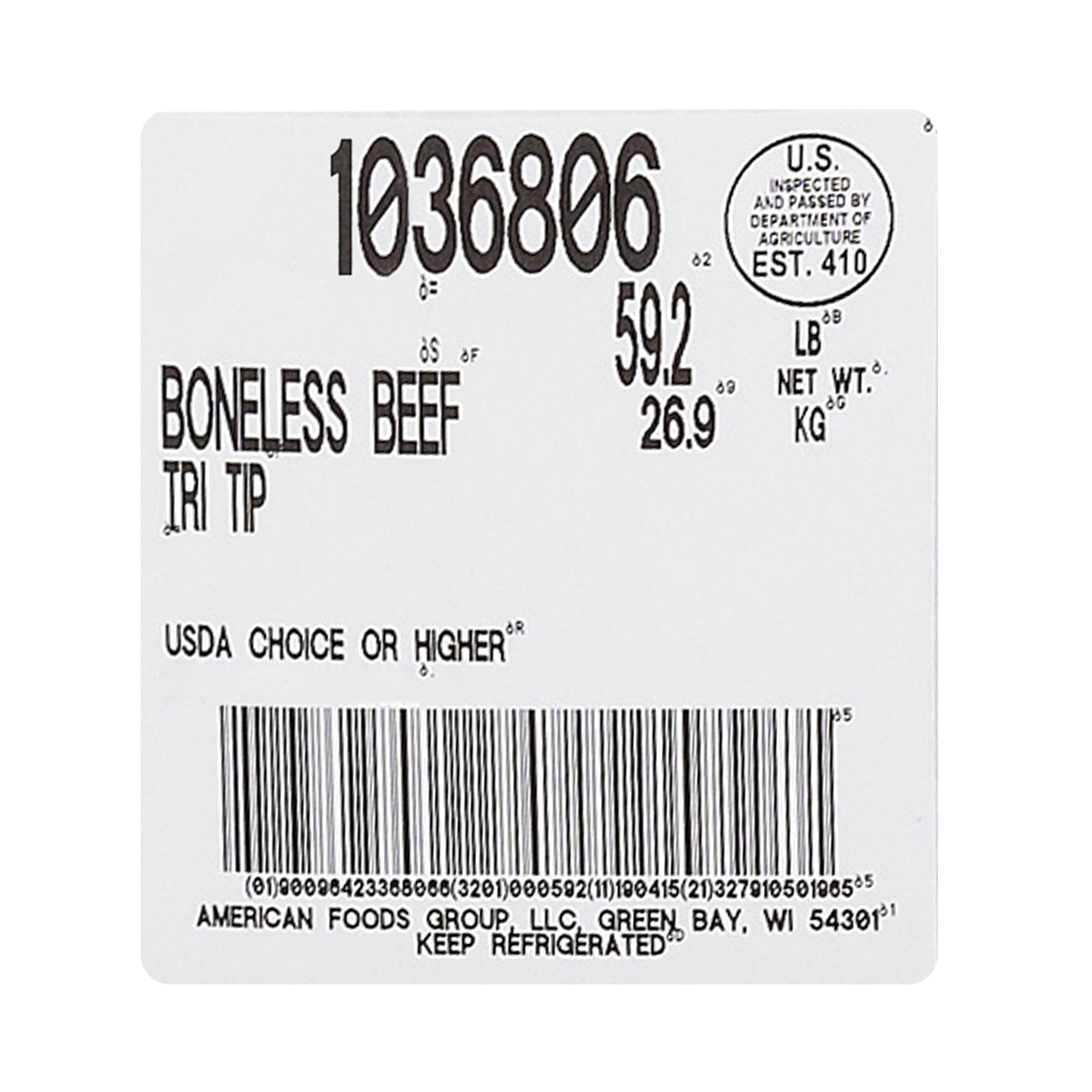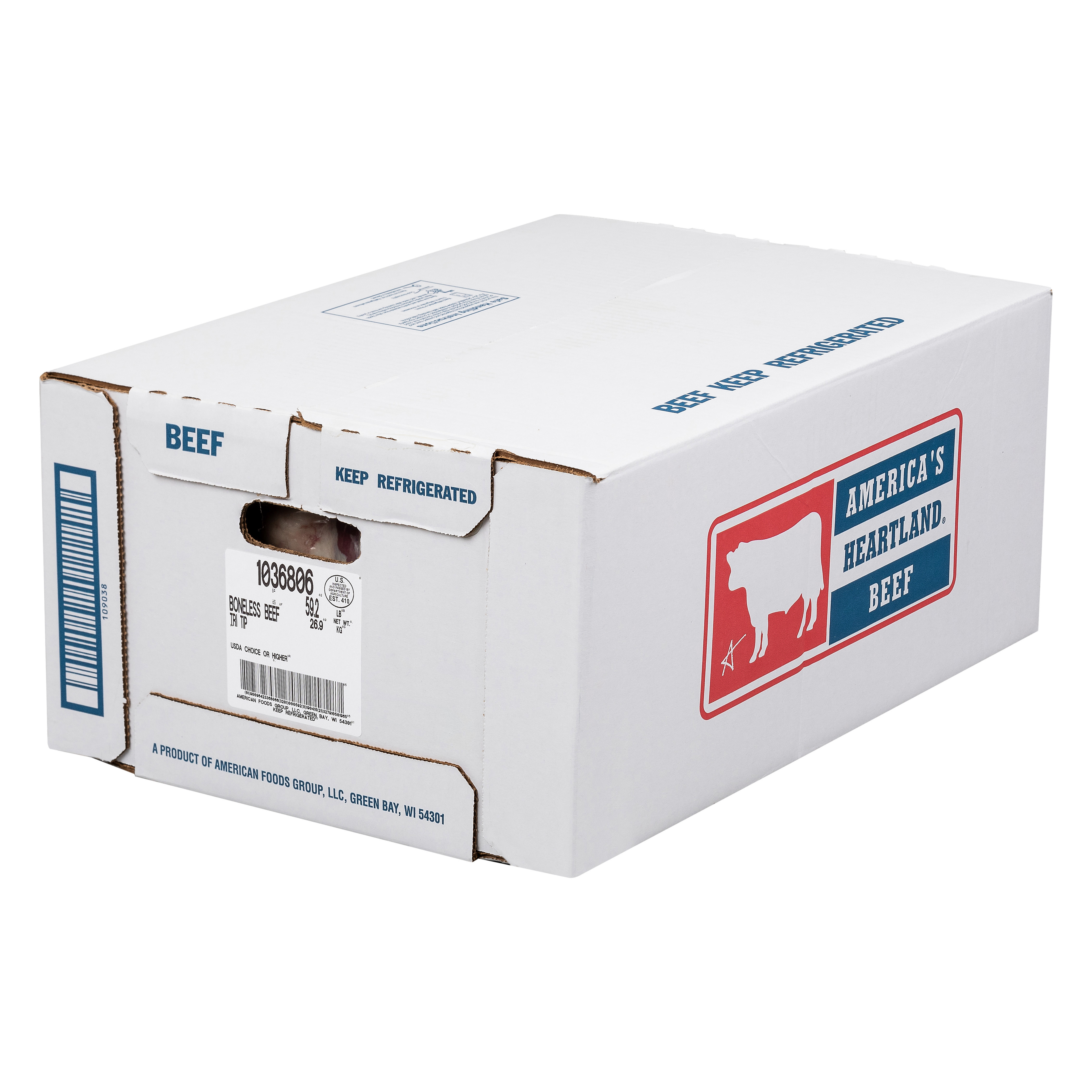 DESCRIPTION – The America's Heartland Boneless Beef Tri Tip is 100% Choice Grade beef and contains no additives.