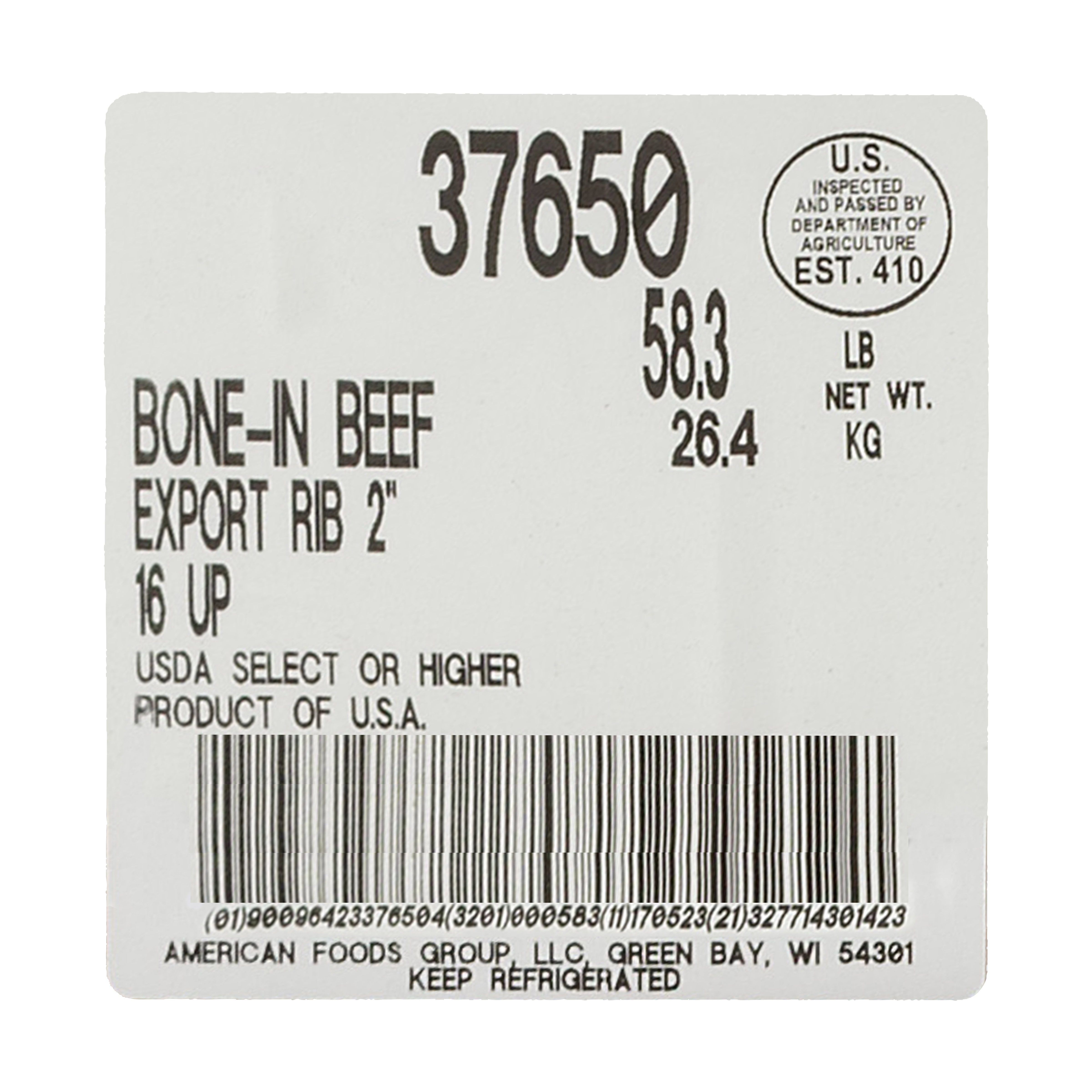 DESCRIPTION – The America's Heartland Bone In Beef Export Rib is 100% Select Grade beef and contains no additives.