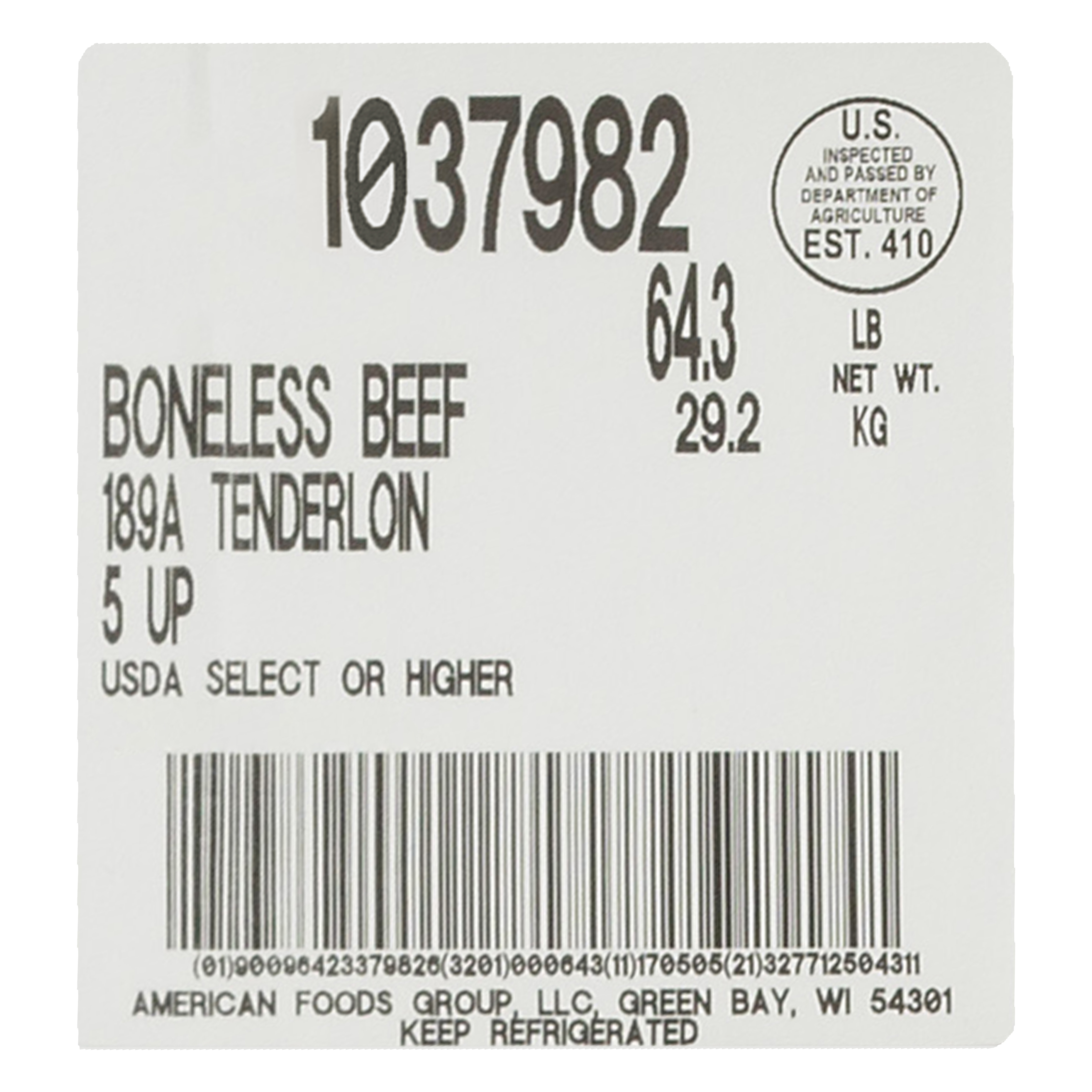 America’s Heartland Fresh Boneless Beef 189A Tenderloin, Select Grade, 10 Bags Per 66 Pound Average Weight Master Case, 1 Tenderloin Per Bag