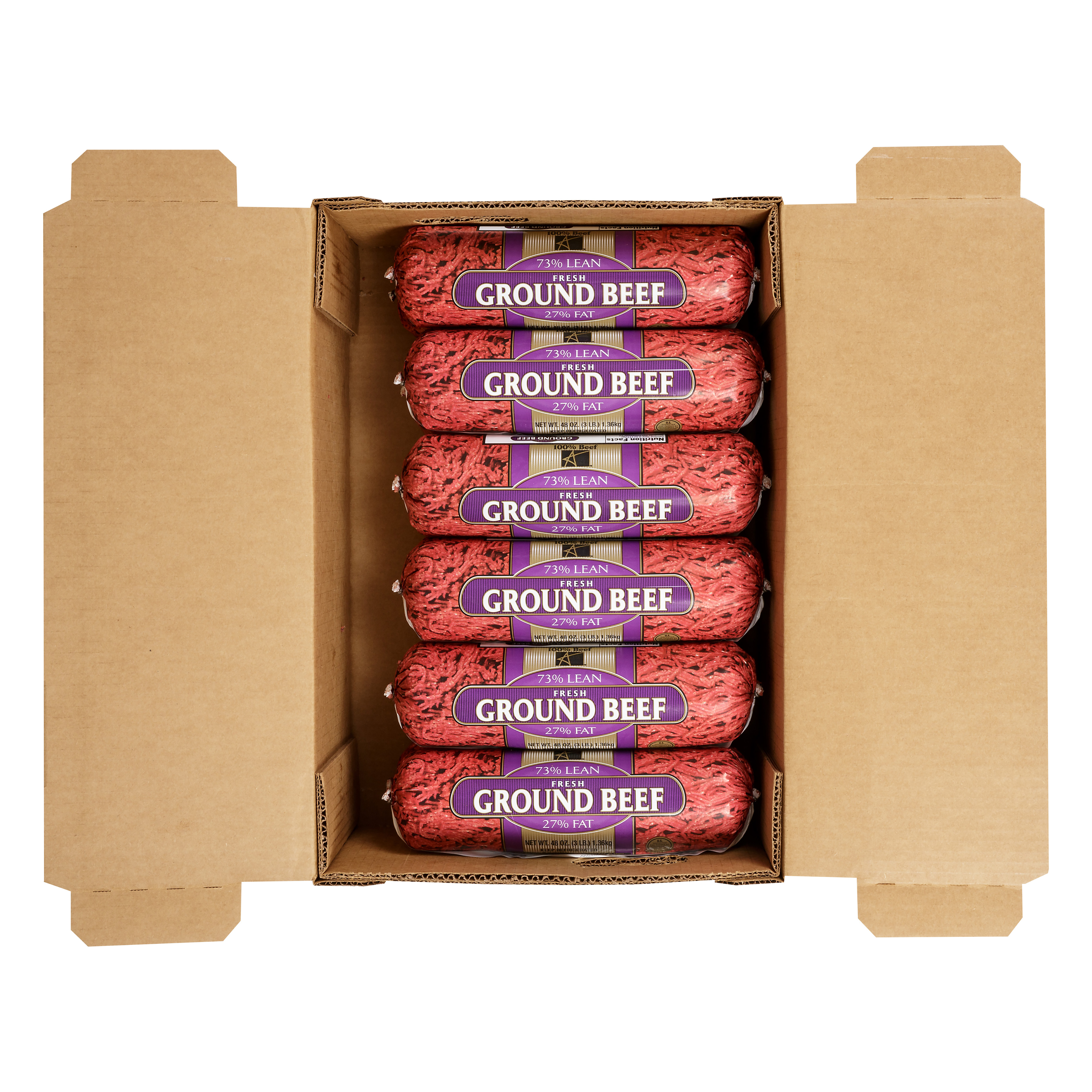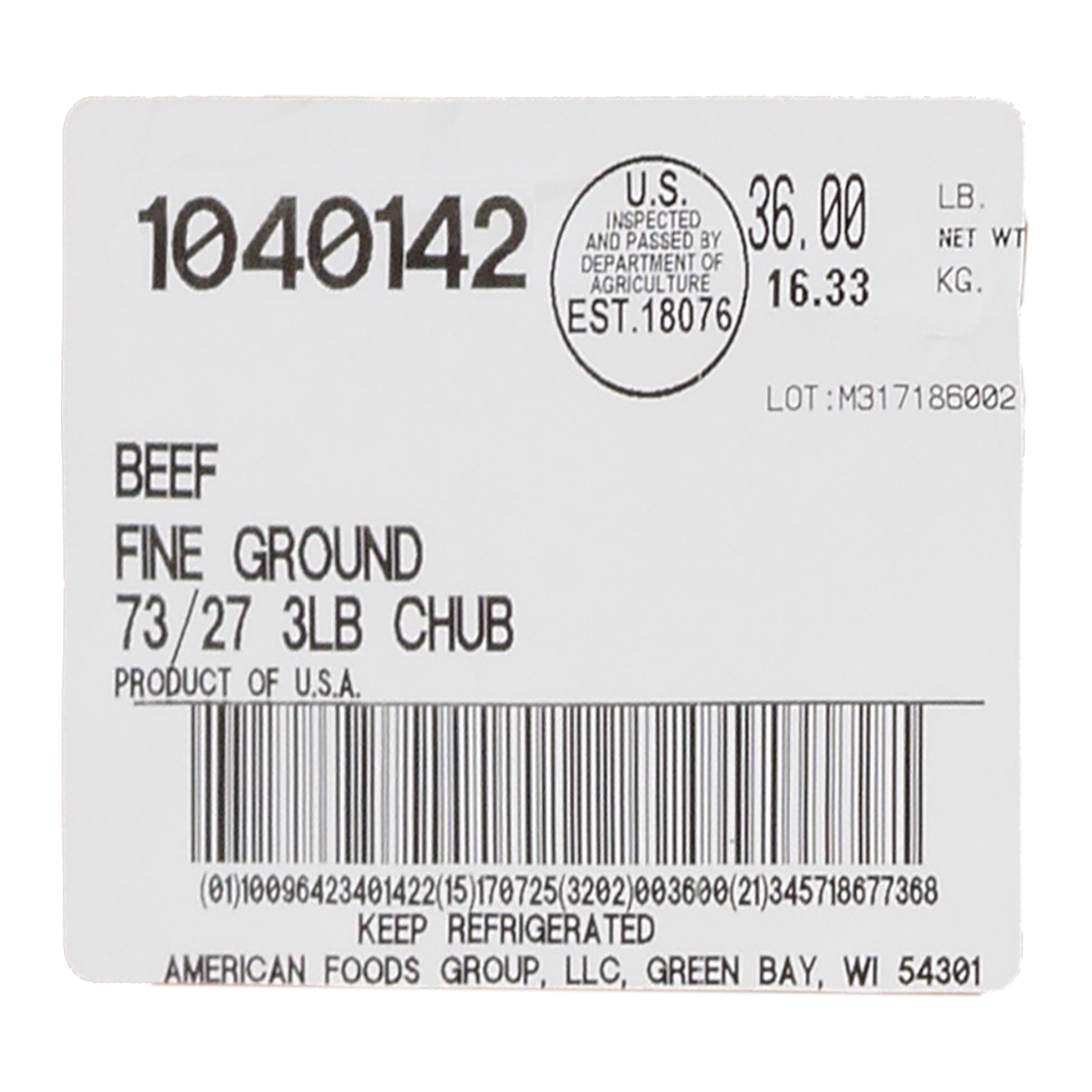 American Foods Group Fresh Fine Ground Beef, 73 Percent Lean 27 Percent Fat, 12-3 Pound Chubs Per 36 Pound Net Weight Master Case
