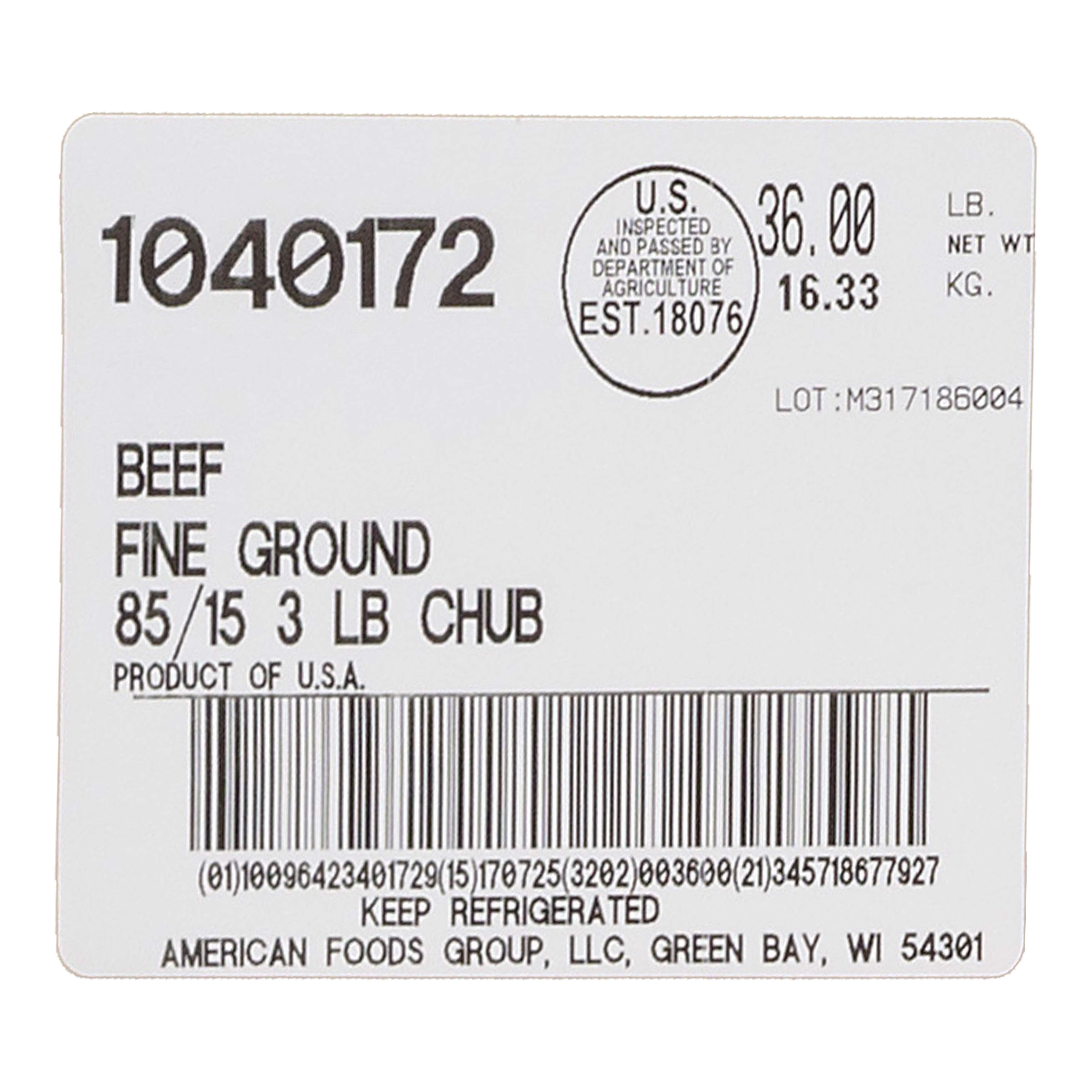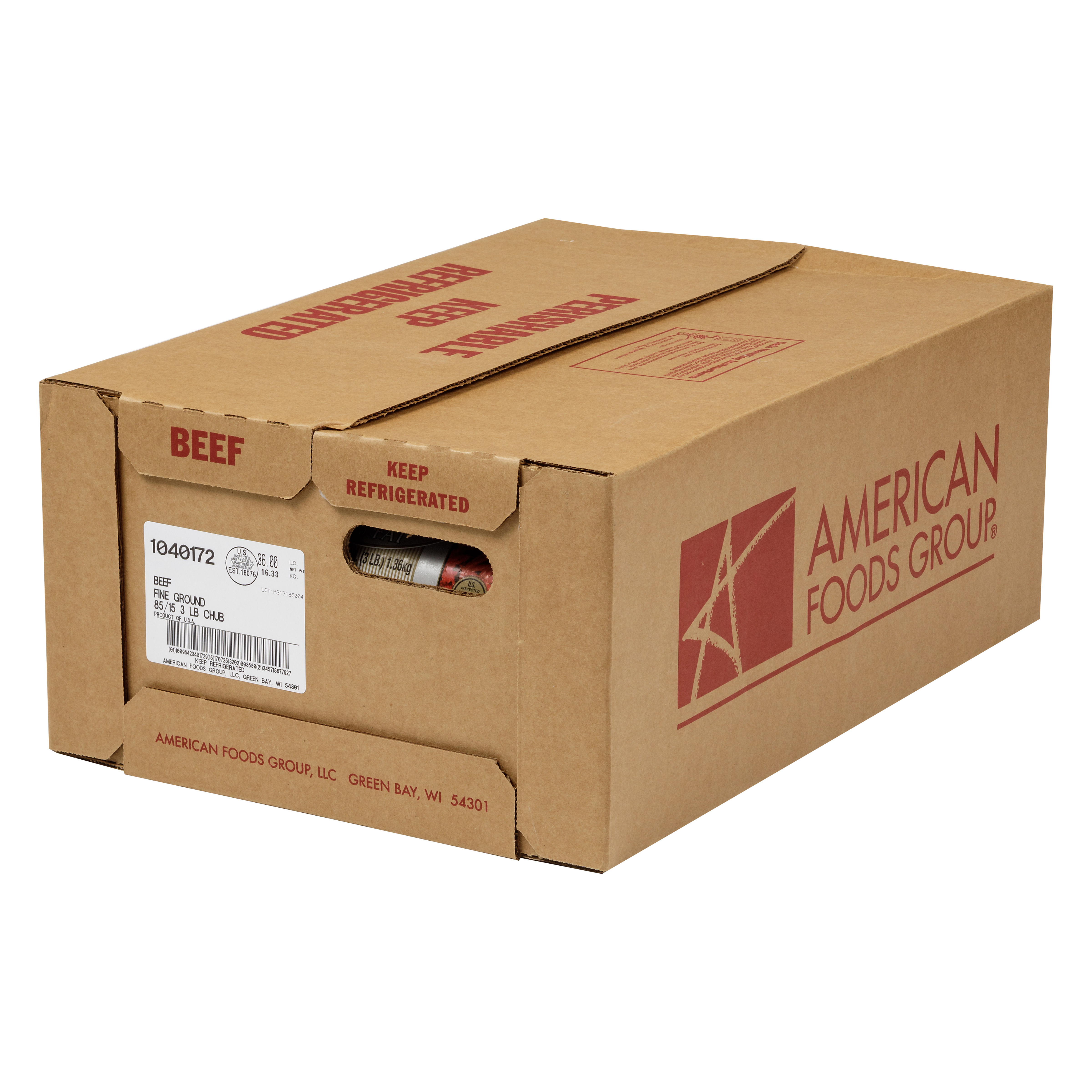 American Foods Group Fresh Fine Ground Beef, 85 Percent Lean 15 Percent Fat, 12-3 Pound Chubs Per 36 Pound Net Weight Master Case