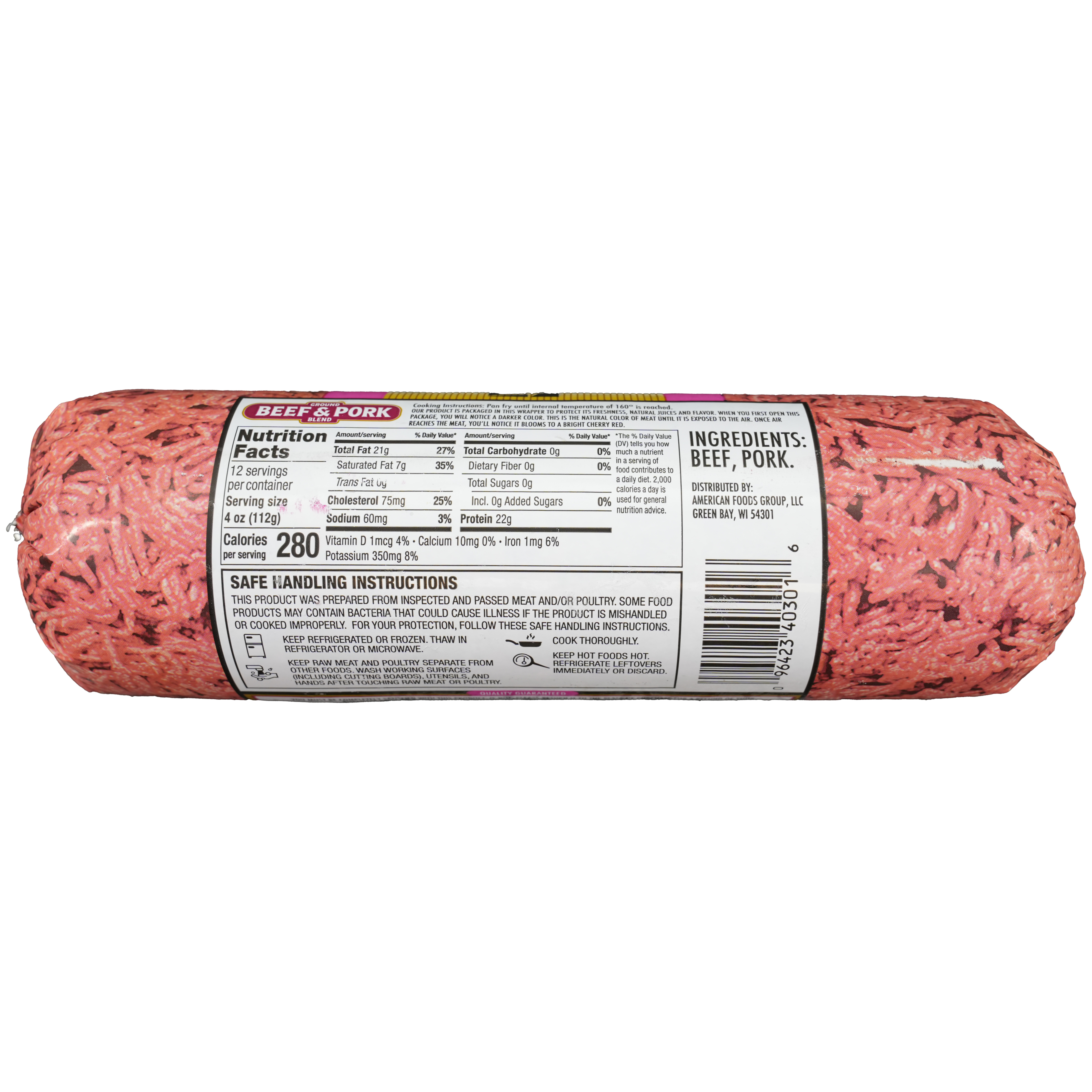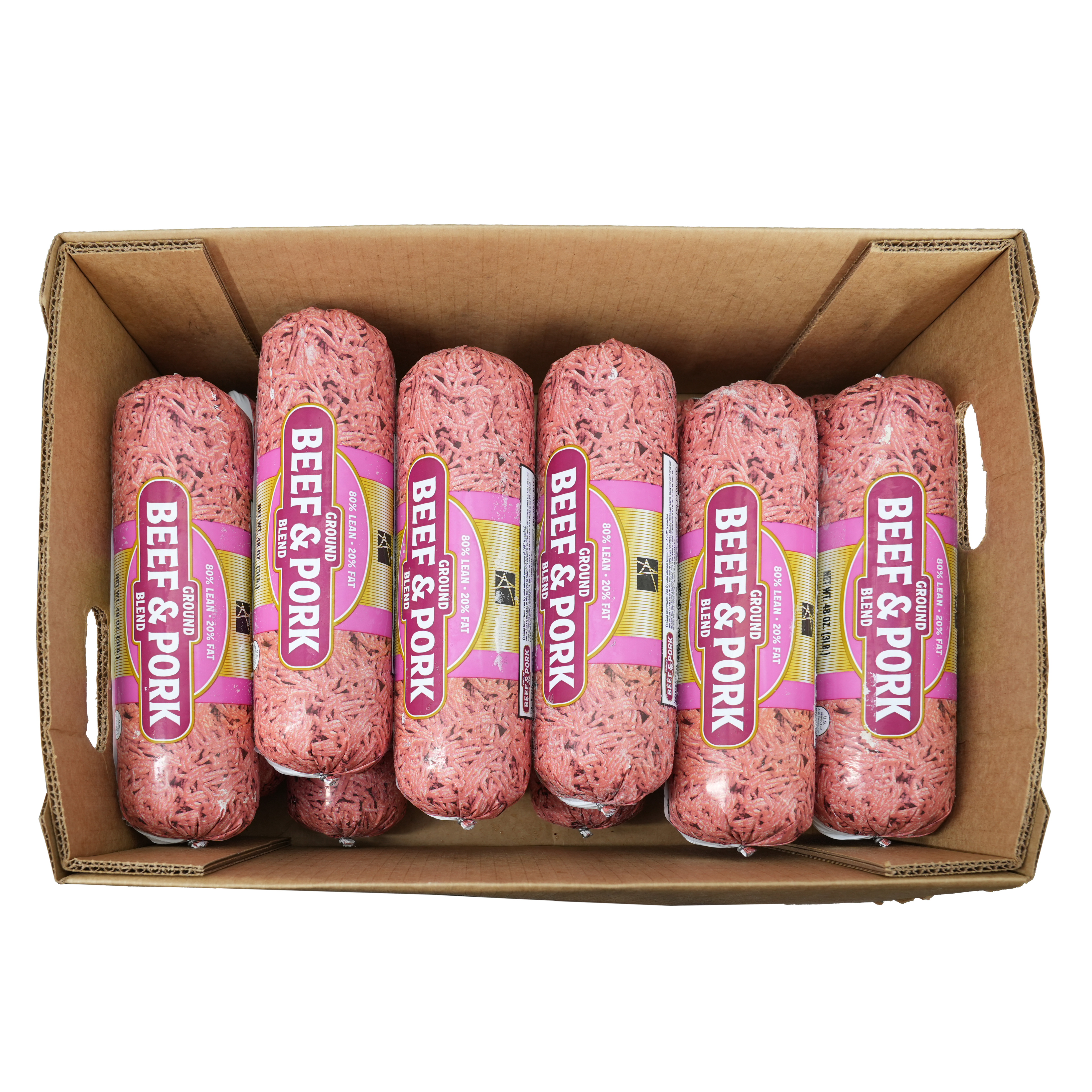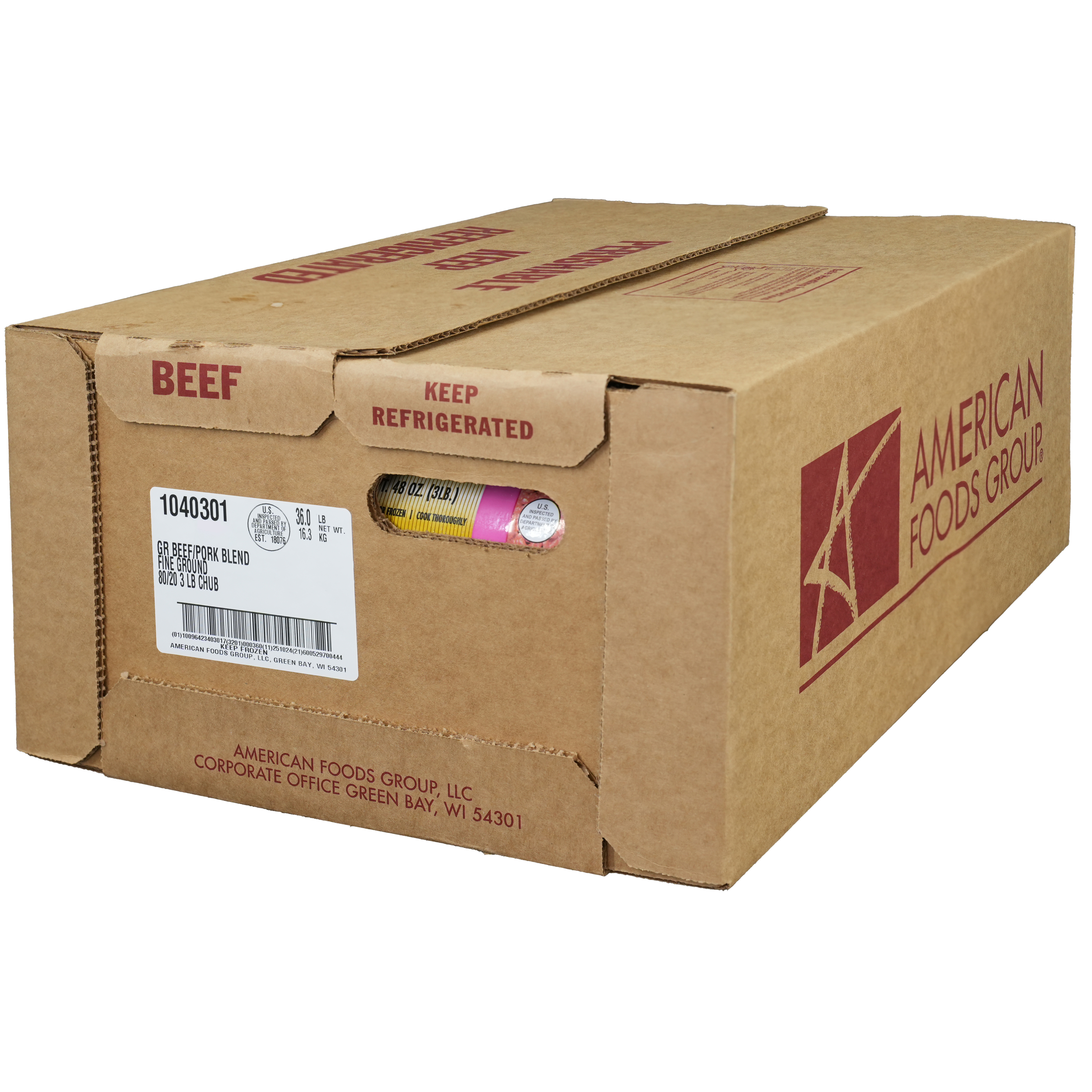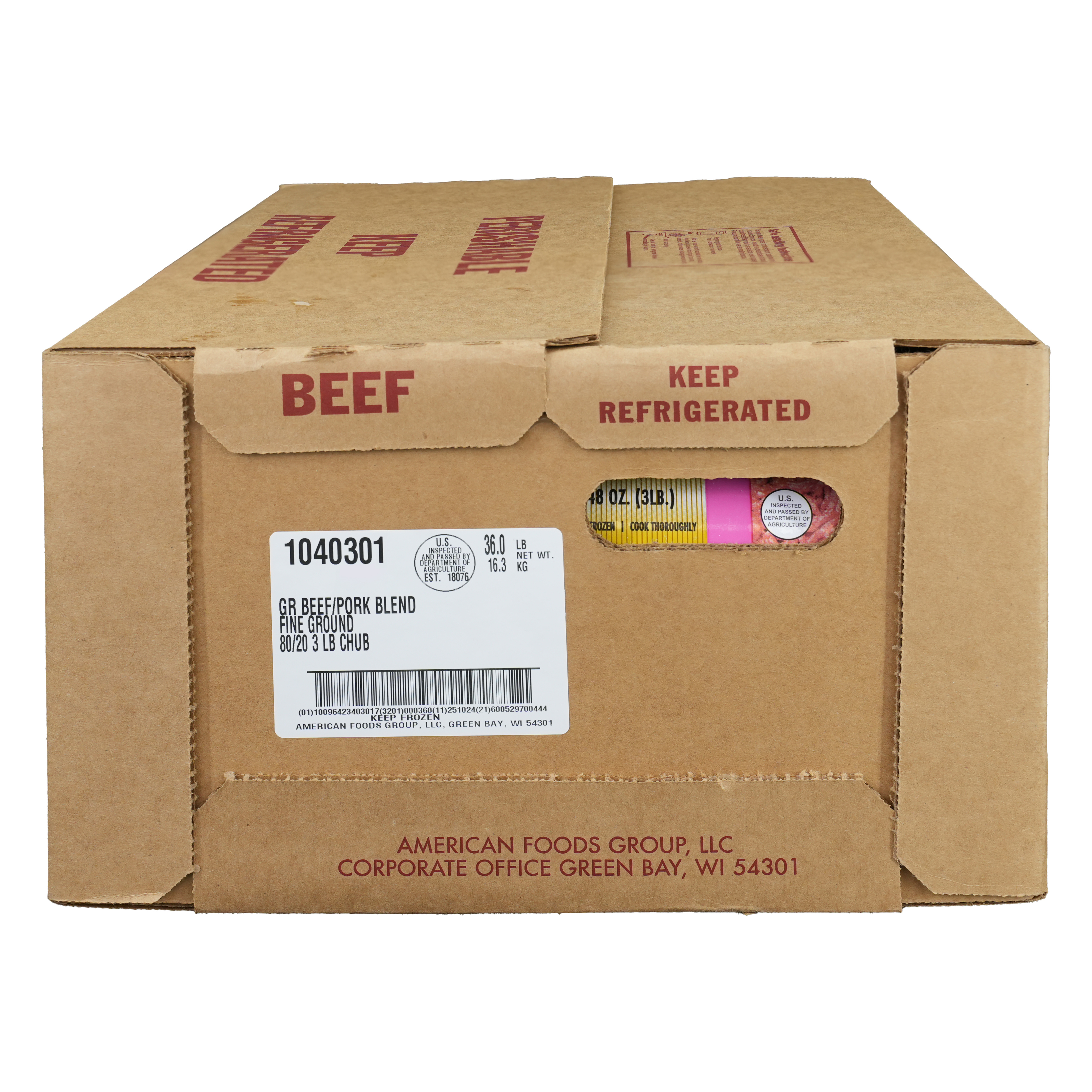 American Foods Group Fresh Fine Ground Beef/Pork Blend, 80 Percent Lean 20 Percent Fat, 12-3 Pound Chubs Per 36 Pound Net Weight Master Case