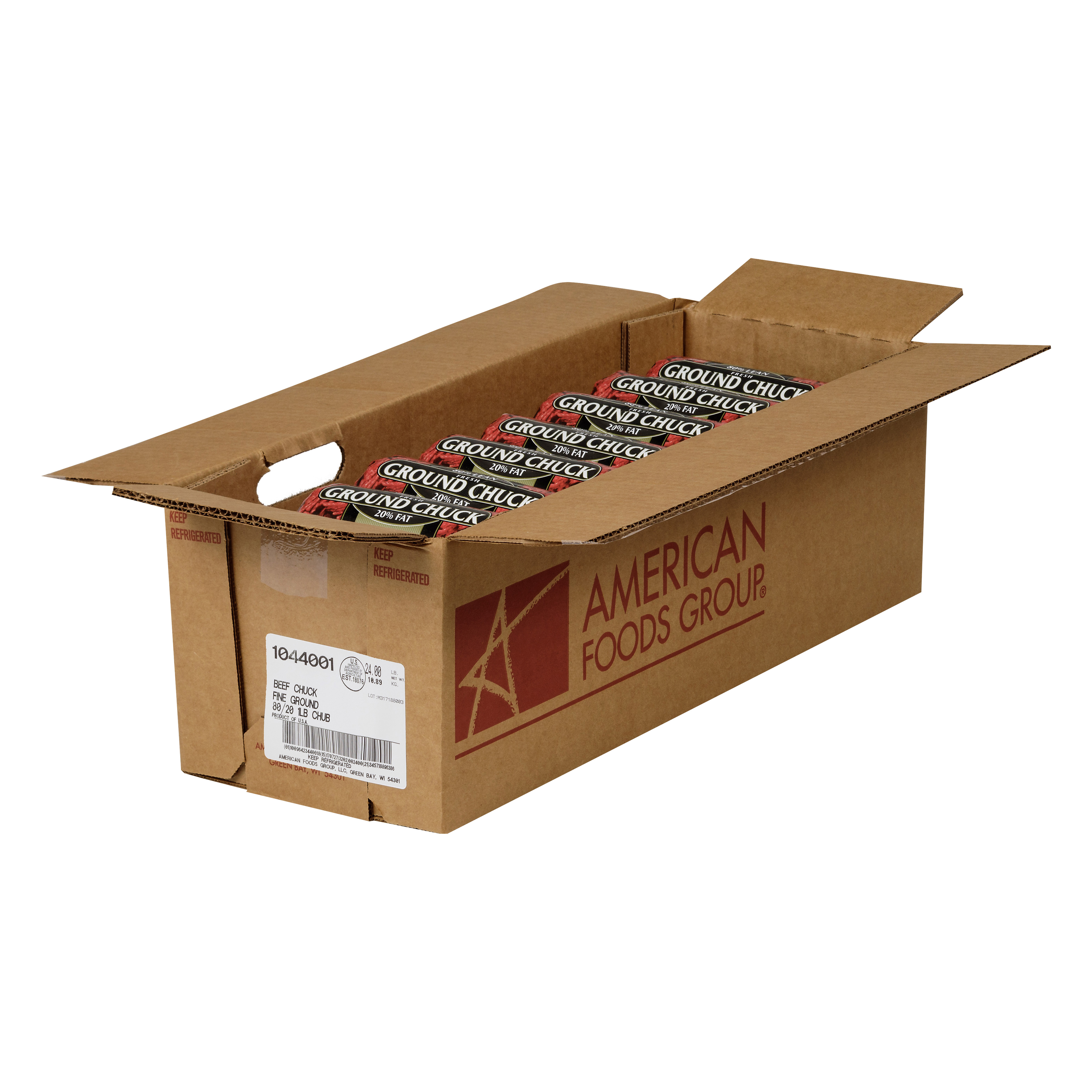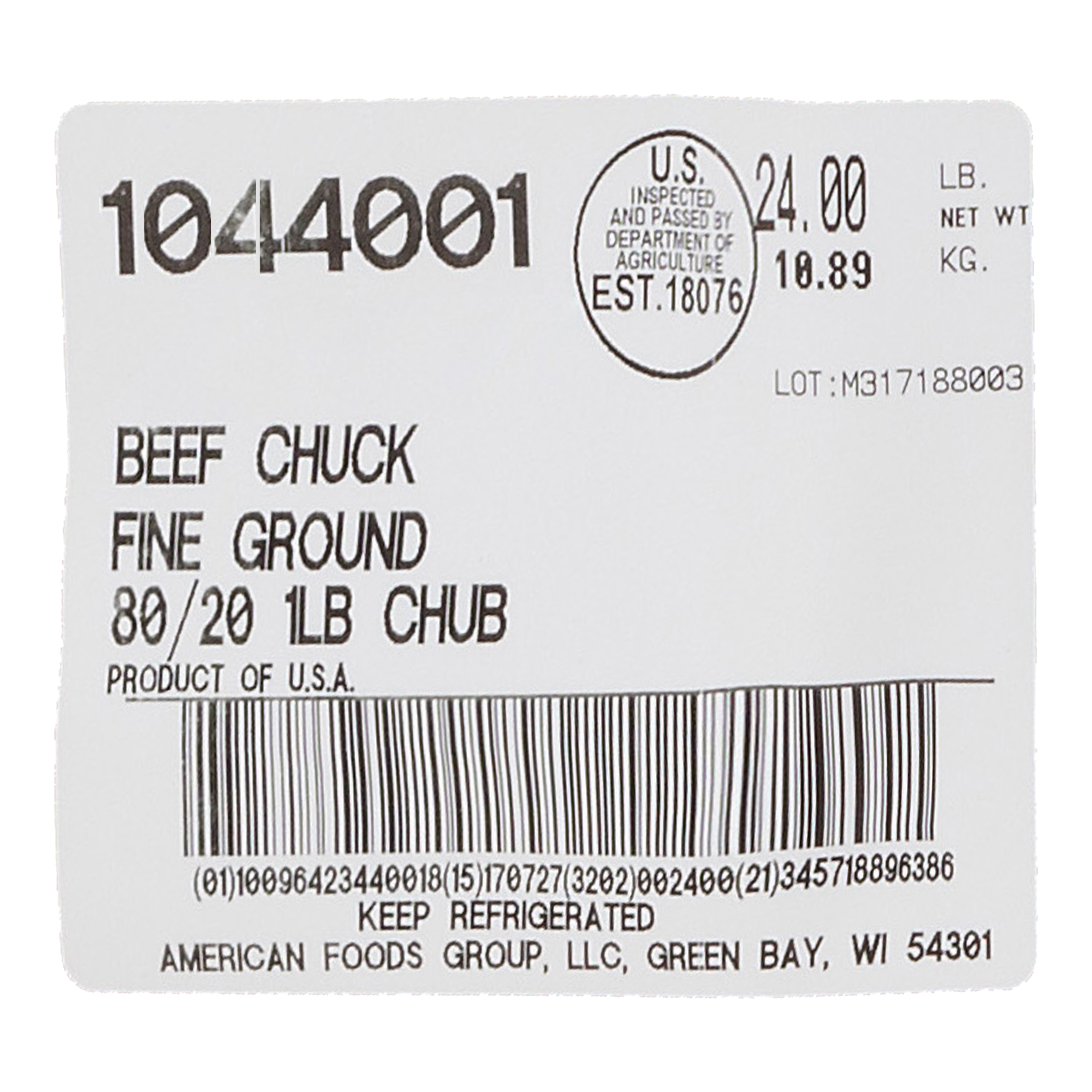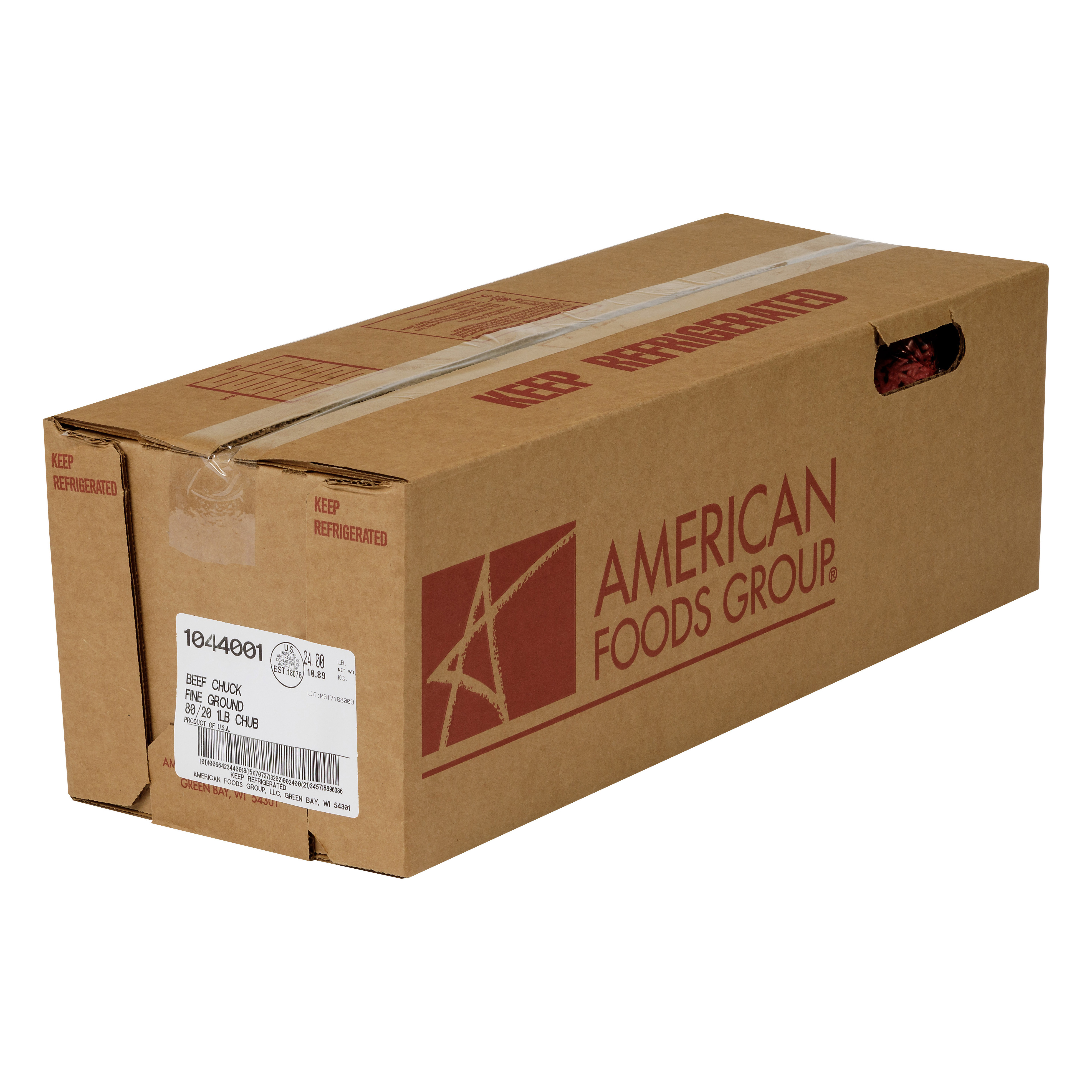 American Foods Group Fresh Fine Ground Beef Chuck, 80 Percent Lean 20 Percent Fat, 24-1 Pound Chubs Per 24 Pound Net Weight Master Case