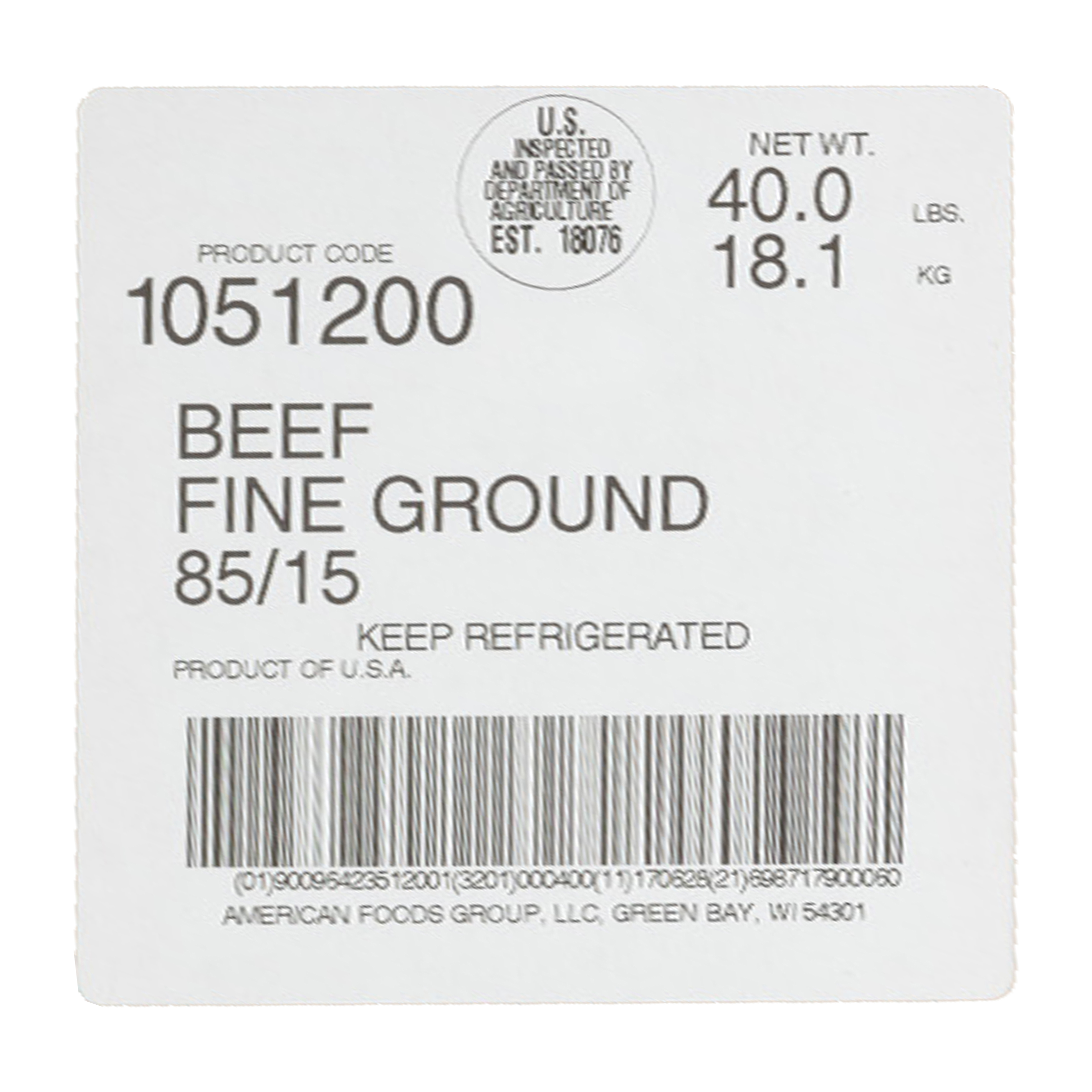 American Foods Group Fresh Fine Ground Beef, 85 Percent Lean 15 Percent Fat, 4-10 Pound Chubs Per 40 Pound Average Weight Master Case