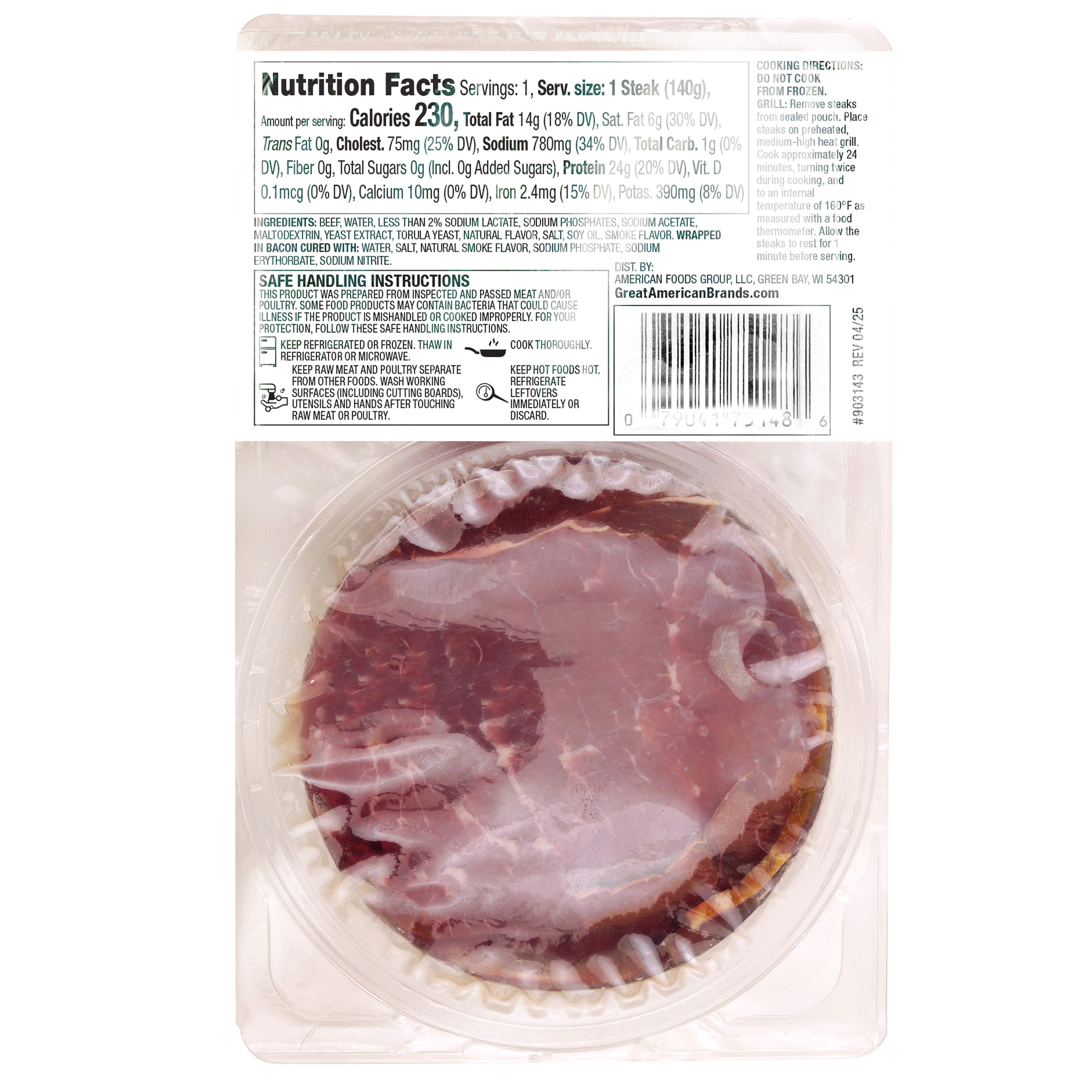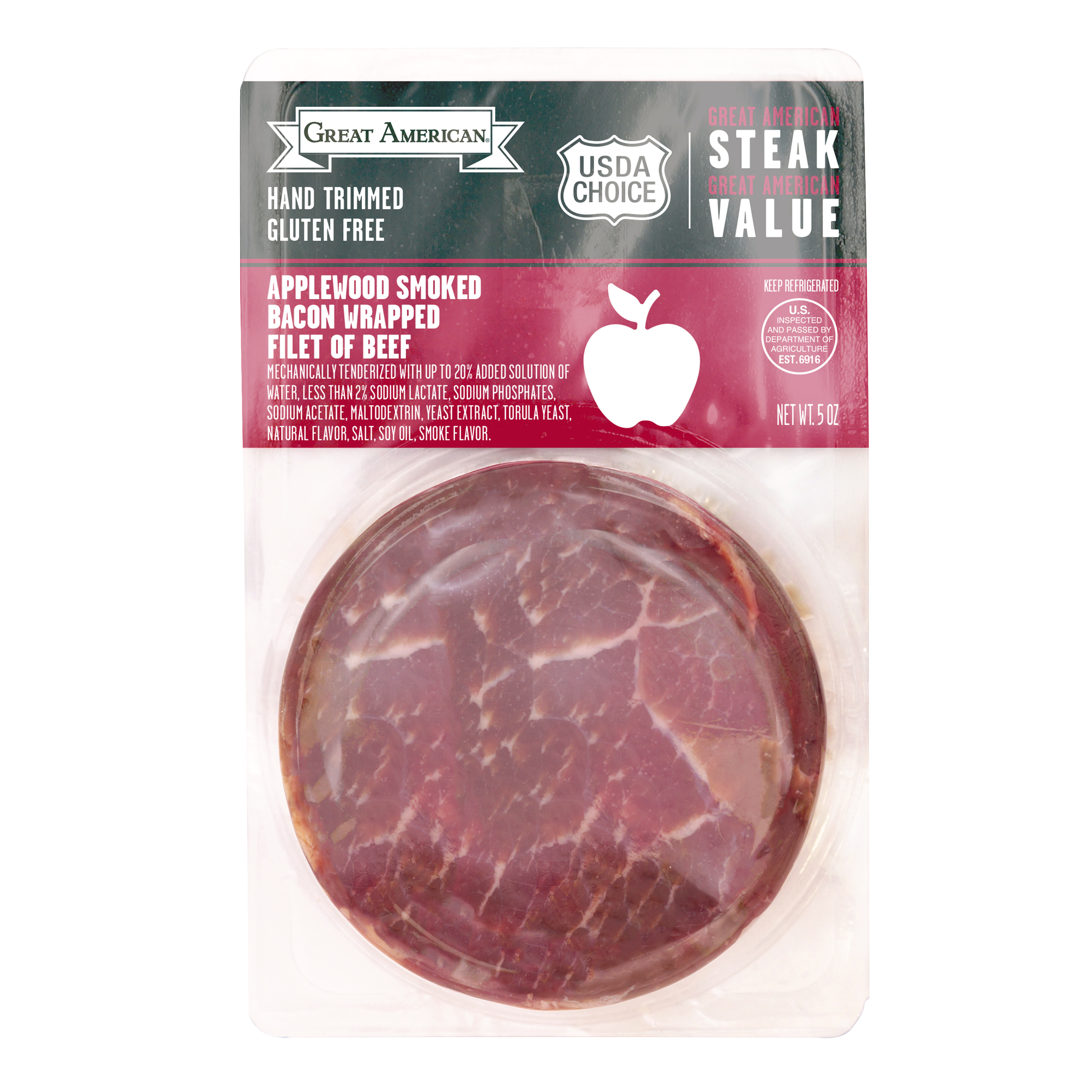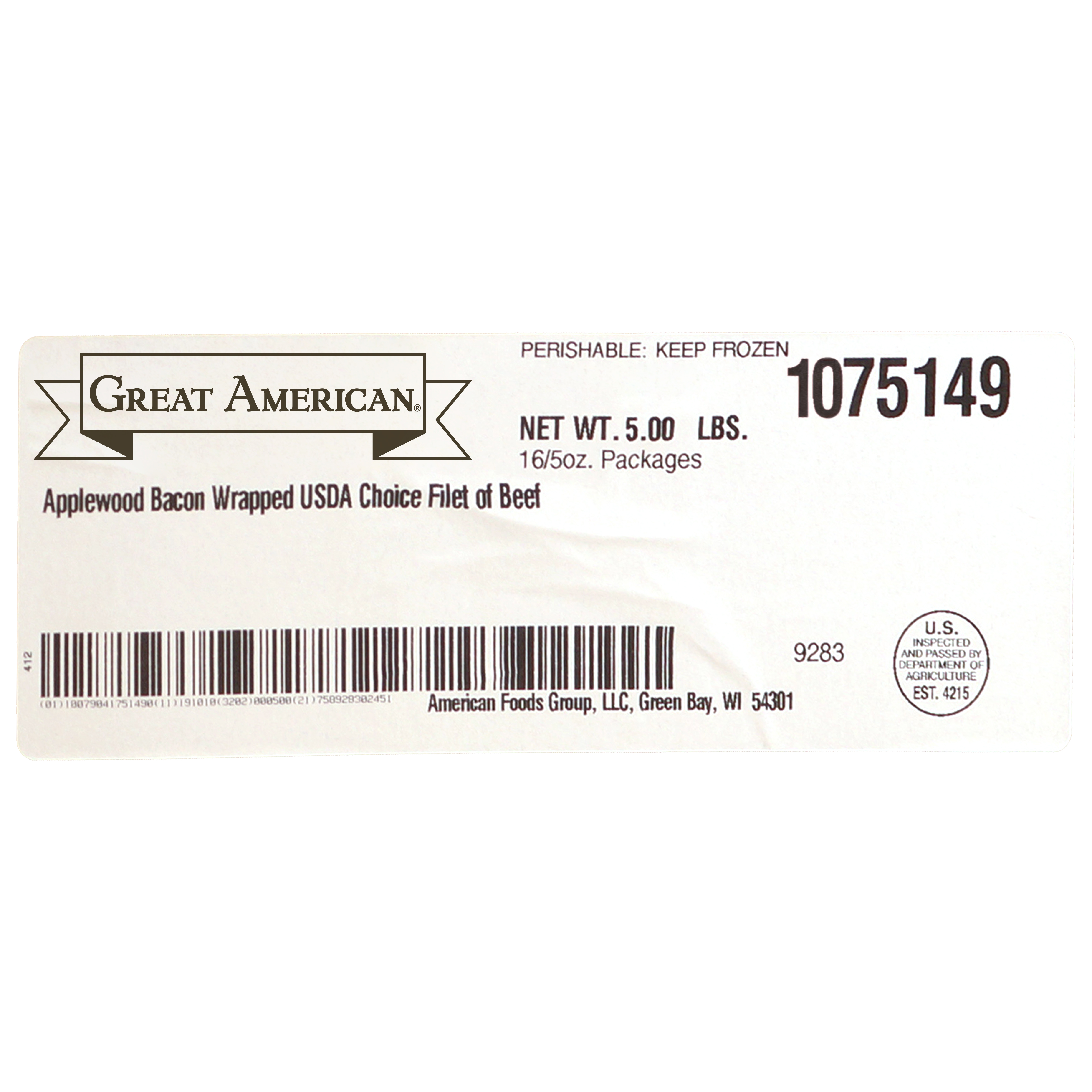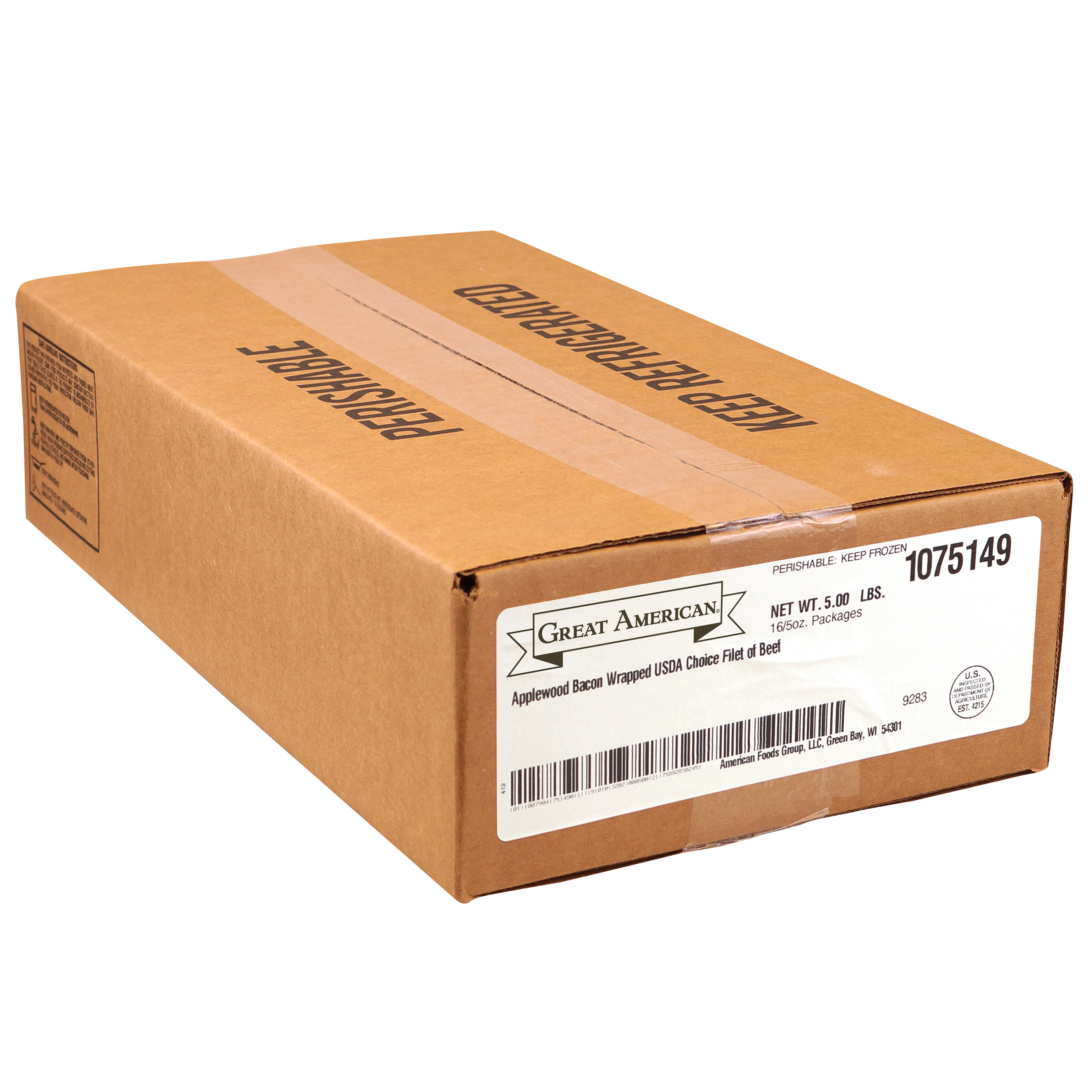 Great American Frozen Applewood Smoked Bacon Wrapped Beef Filet, 16-5 Ounce Rigid Packs Per 5 Pound Net Weight Master Case