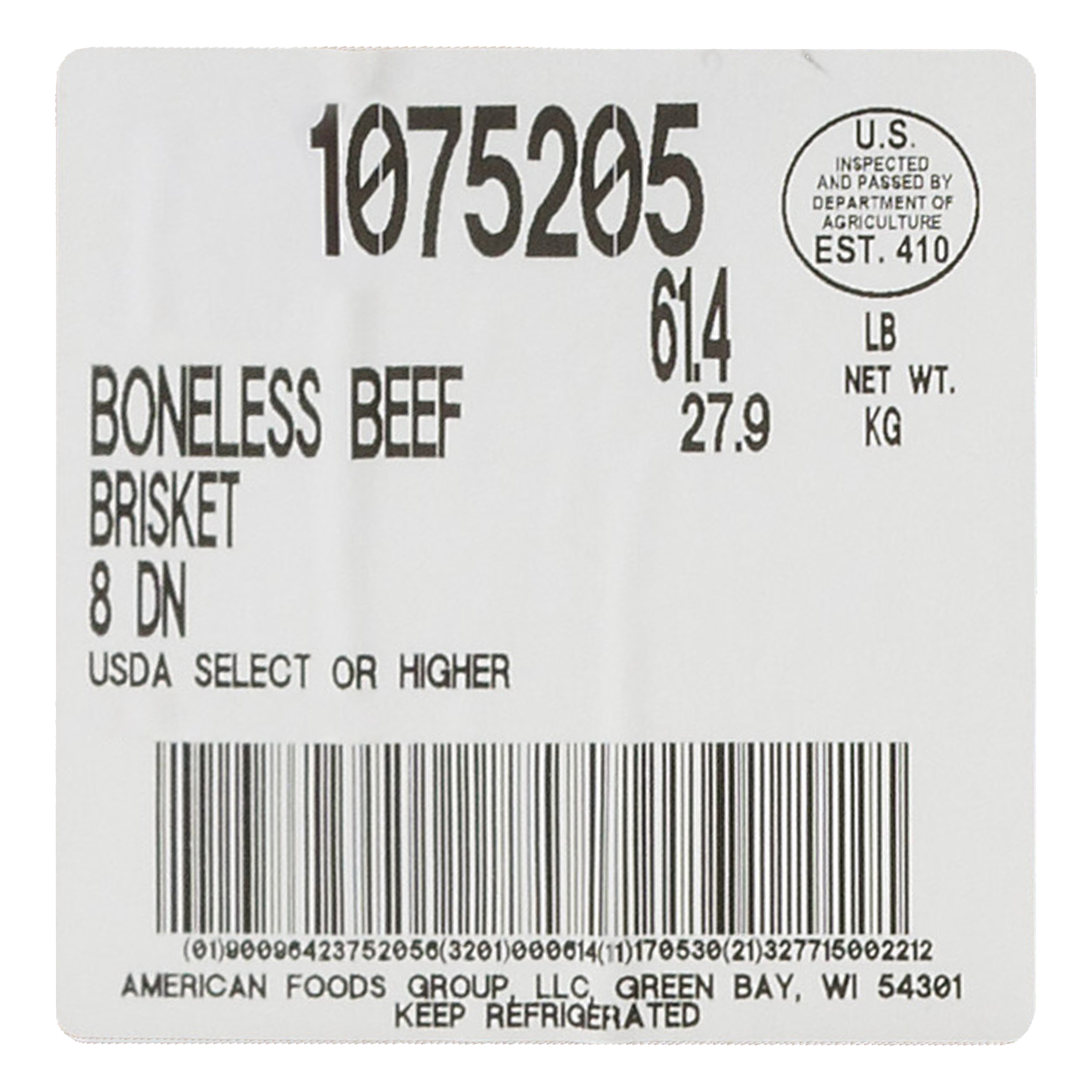 DESCRIPTION – The American Foods Group Boneless Beef Brisket is 100% Select Grade beef and contains no additives.