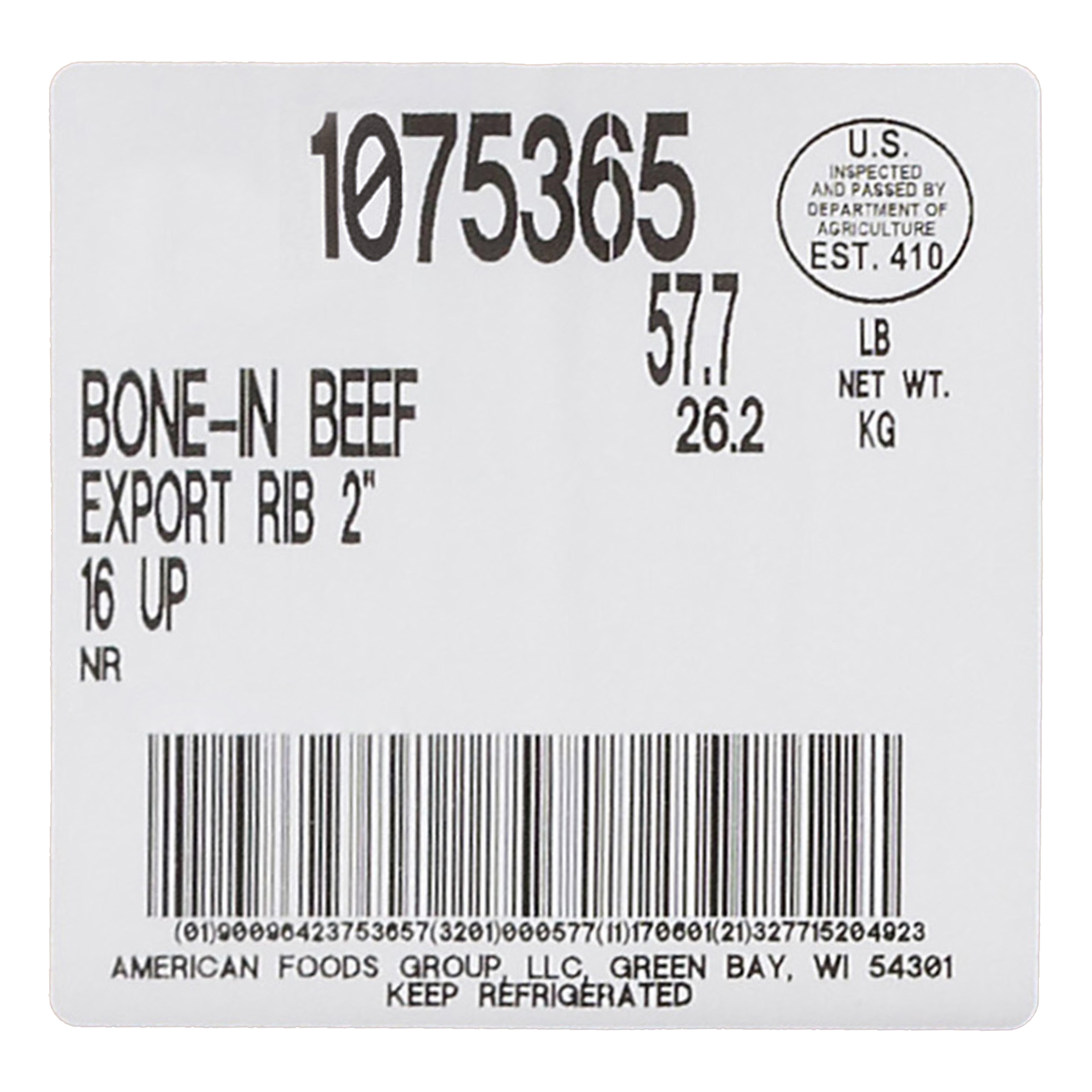 American Foods Group Fresh Bone-In Beef Export Rib, No Roll Grade, 3 Bags Per 55 Pound Average Weight Master Case, 1 Export Rib Per Bag