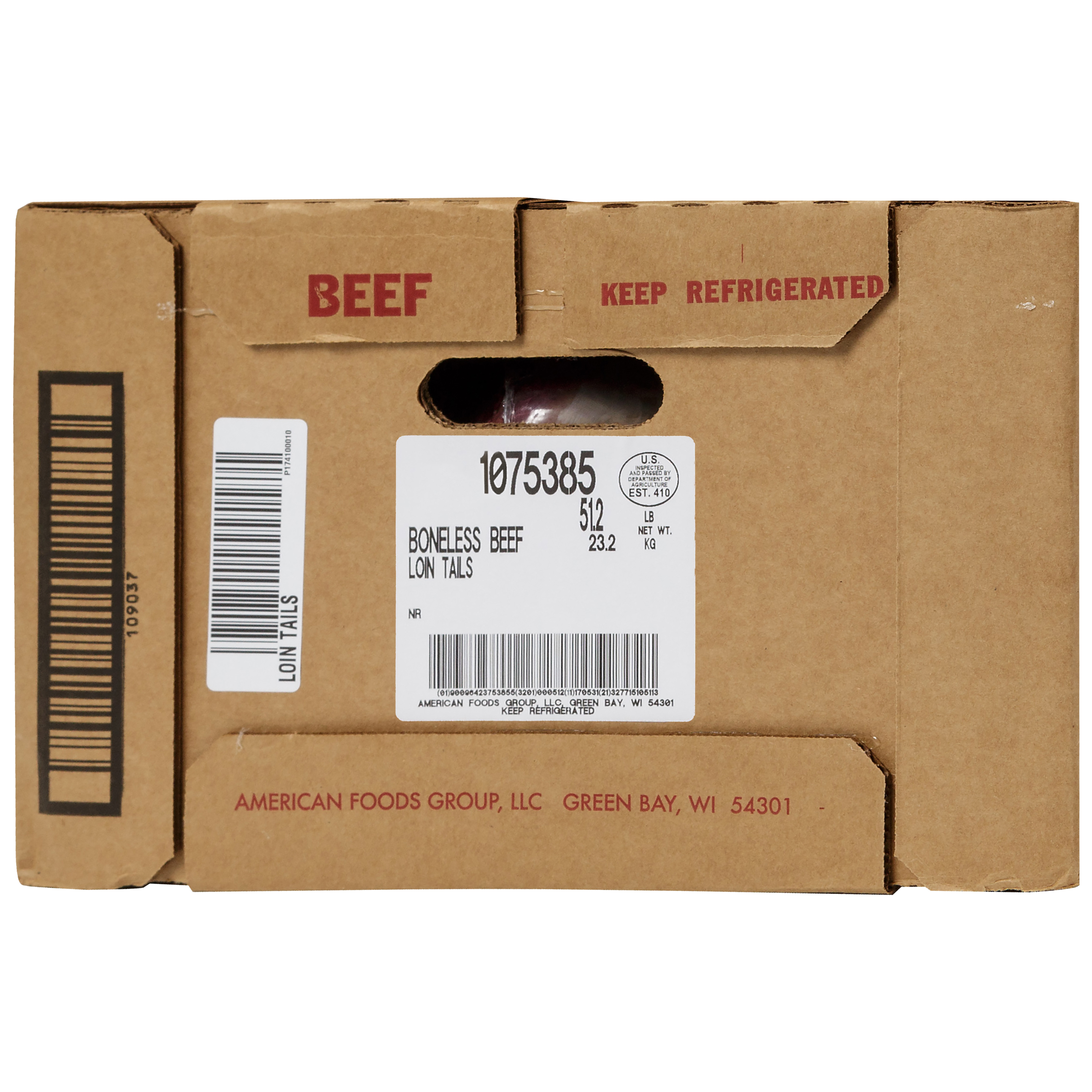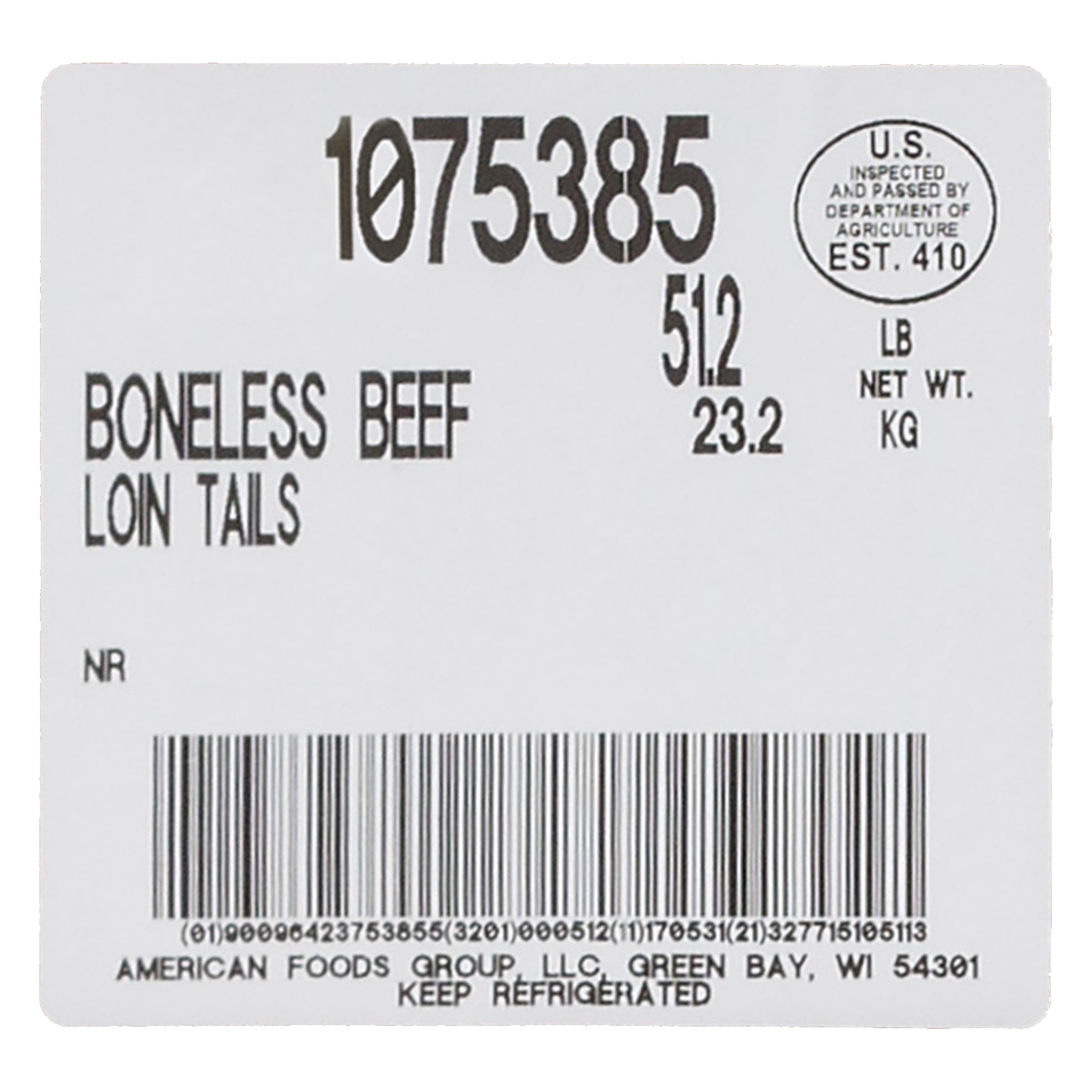 DESCRIPTION – The American Foods Group Boneless Beef Loin Tails is 100% No Roll Grade beef and contains no additives.