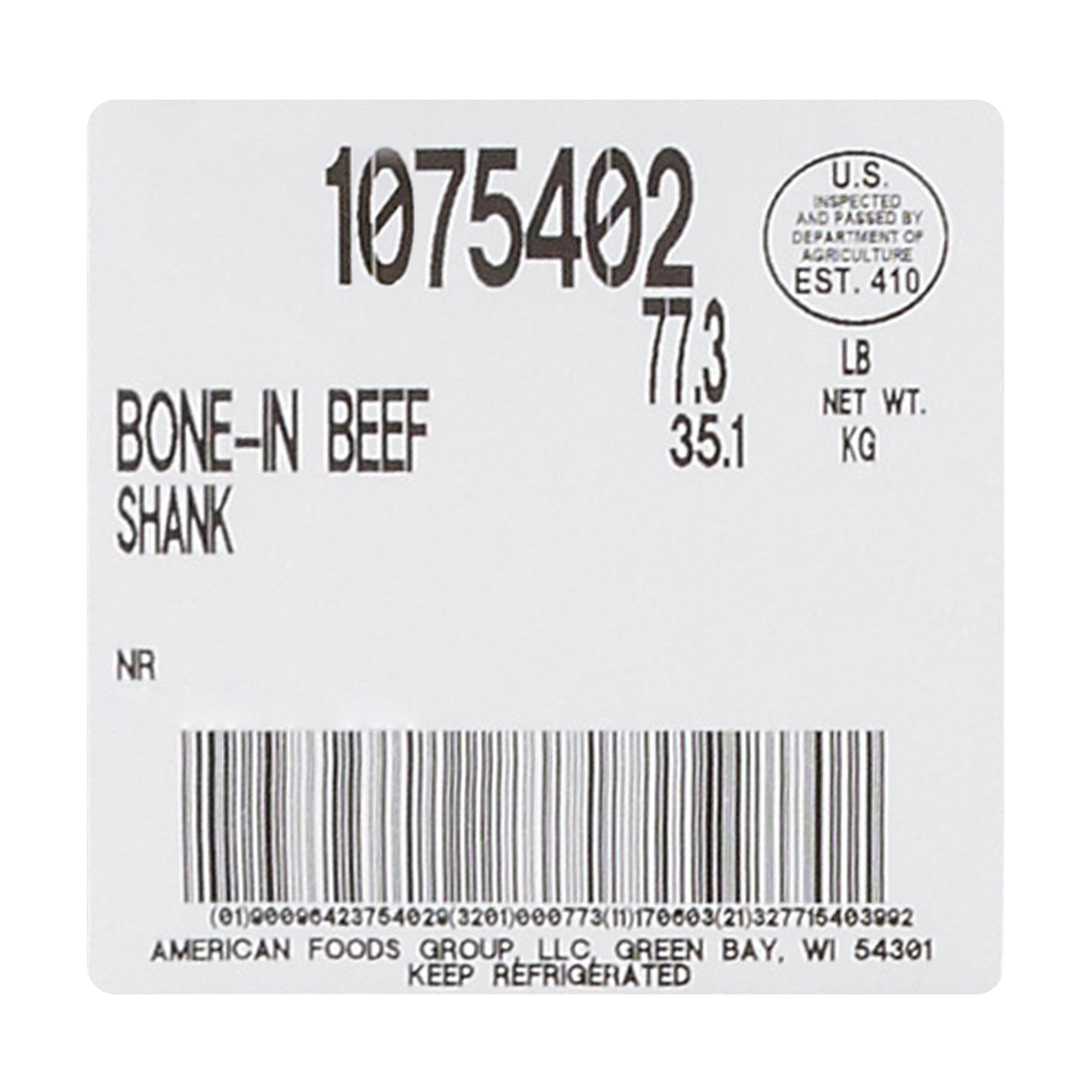 American Foods Group Fresh Bone-In Beef Shank, No Roll Grade, 8 Bags Per 80 Pound Average Weight Master Case, 1 Shank Per Bag