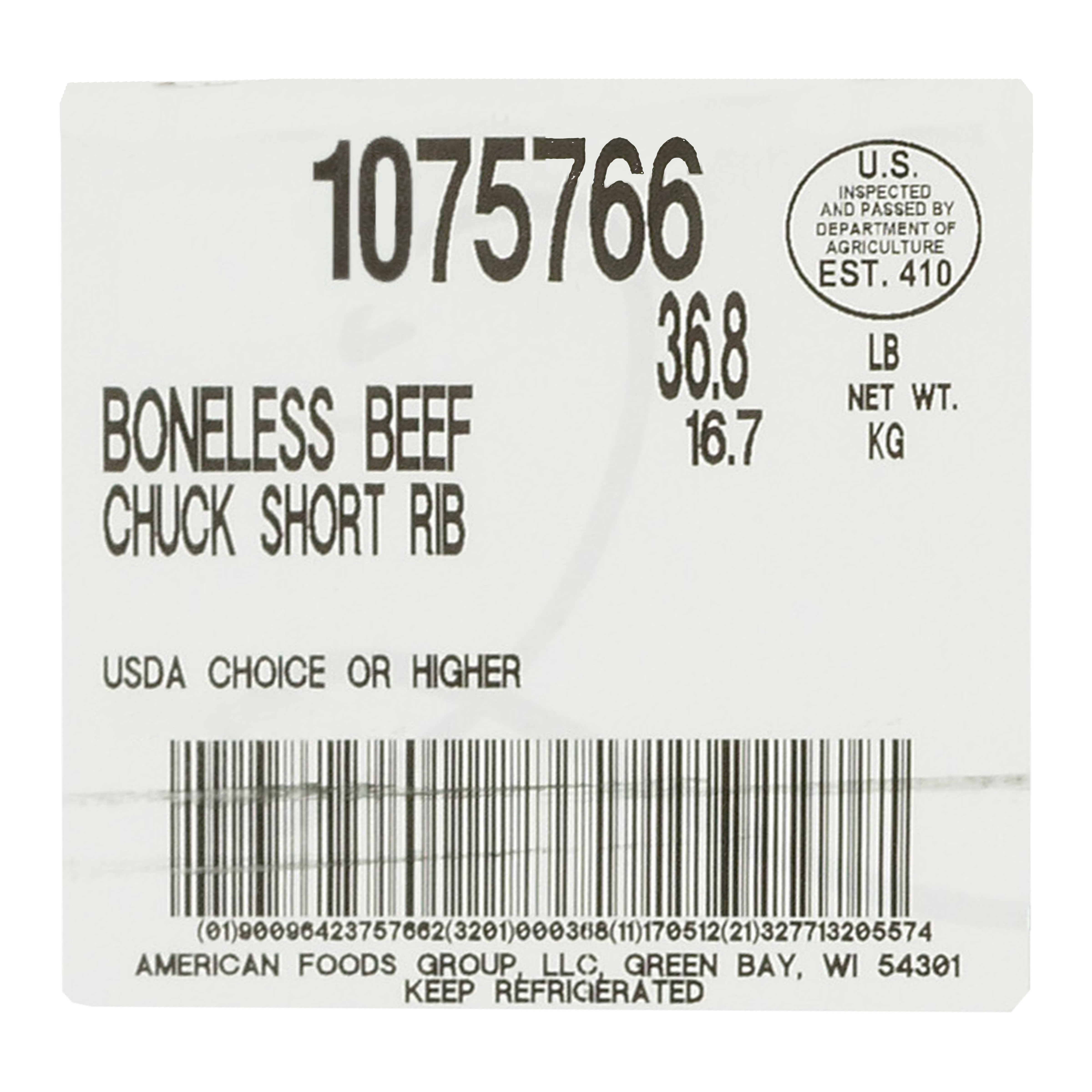 DESCRIPTION – The American Foods Group Boneless Beef Chuck Short Rib is 100% Choice Grade beef and contains no additives.