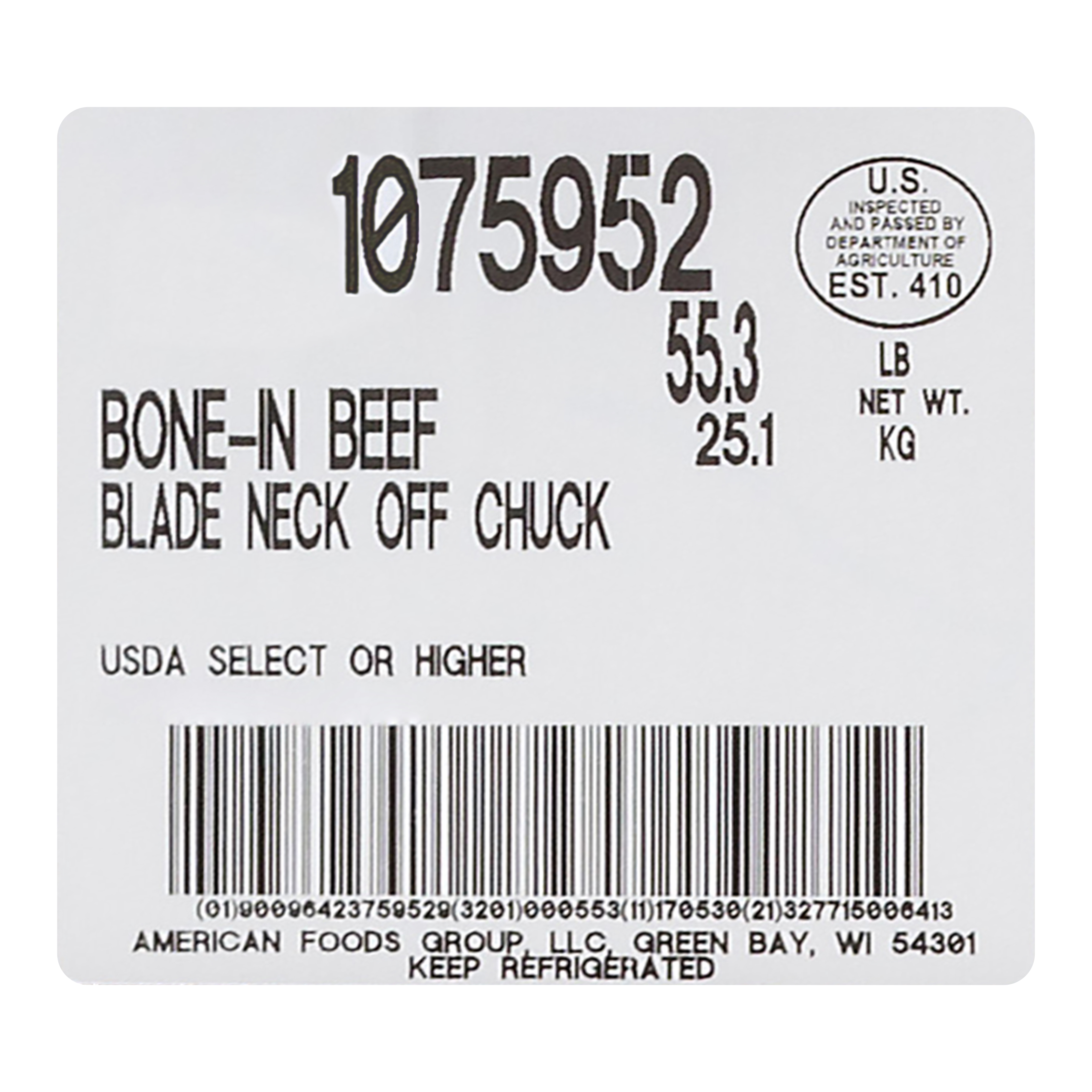 DESCRIPTION – The American Foods Group Bone In Beef Chuck Blade is 100% Select Grade beef and contains no additives.