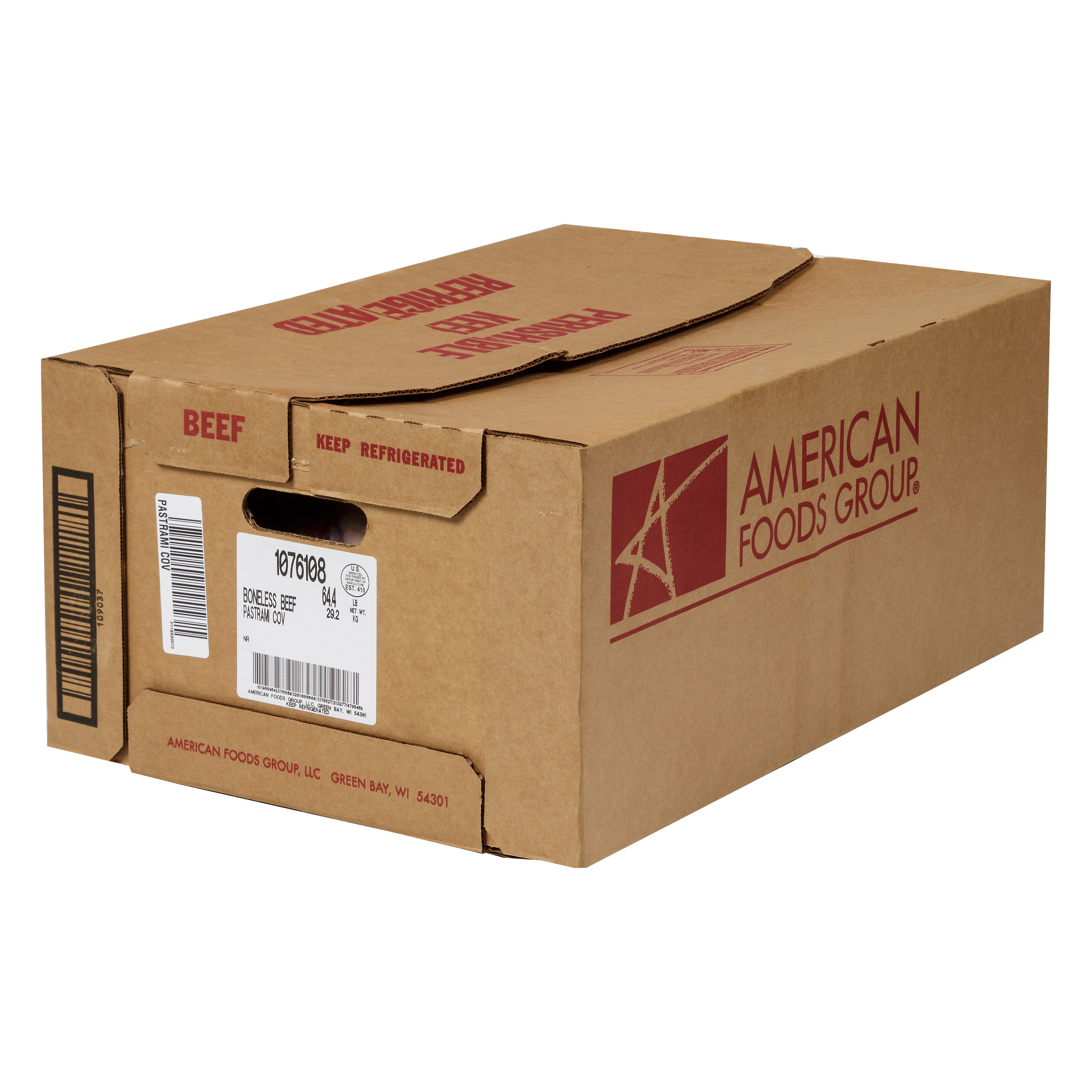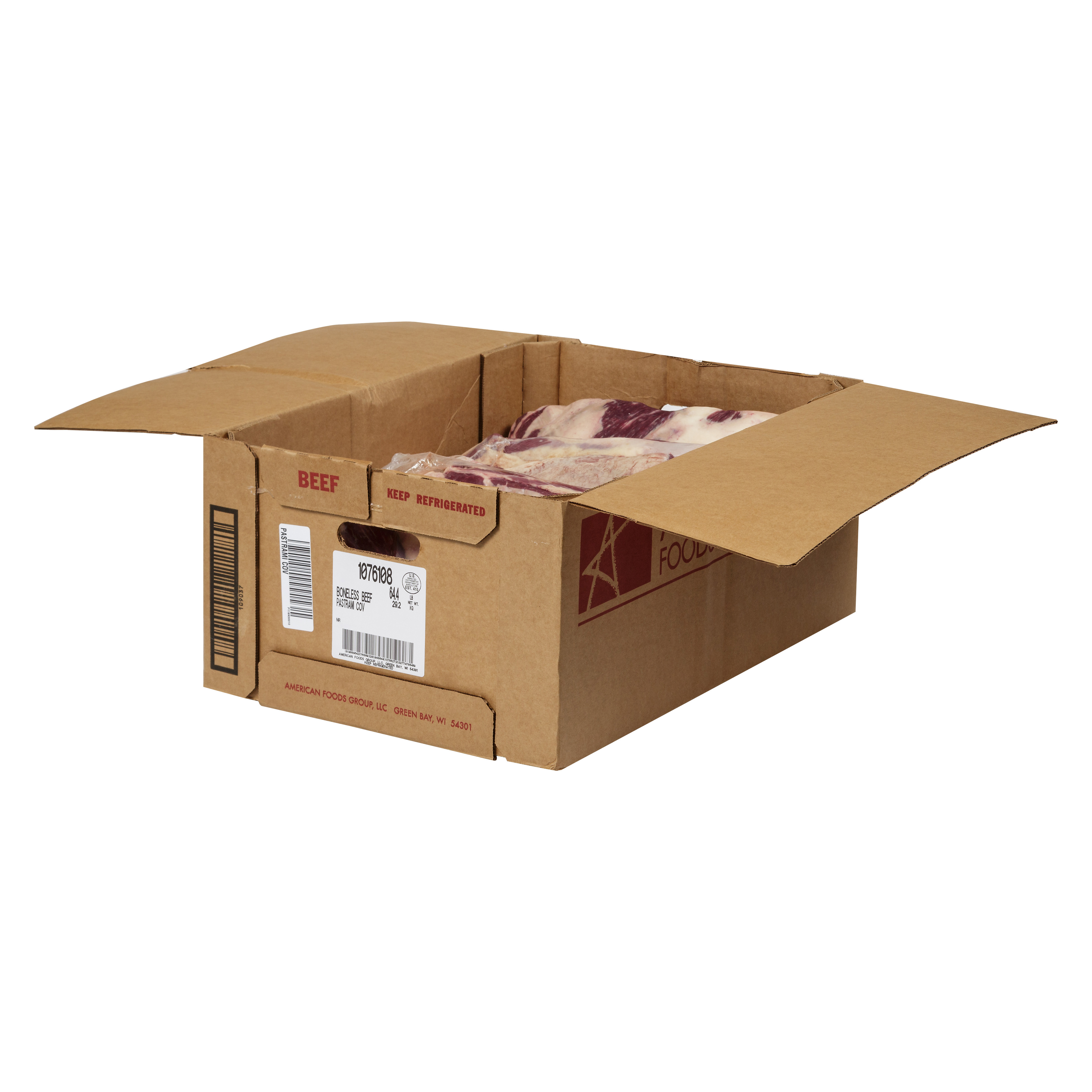 American Foods Group Fresh Boneless Beef Pastrami Short Plate, No Roll Grade, 4 Bags Per 53 Pound Average Weight Master Case, 4 3.84-Pound Pastrami Pieces Per Bag