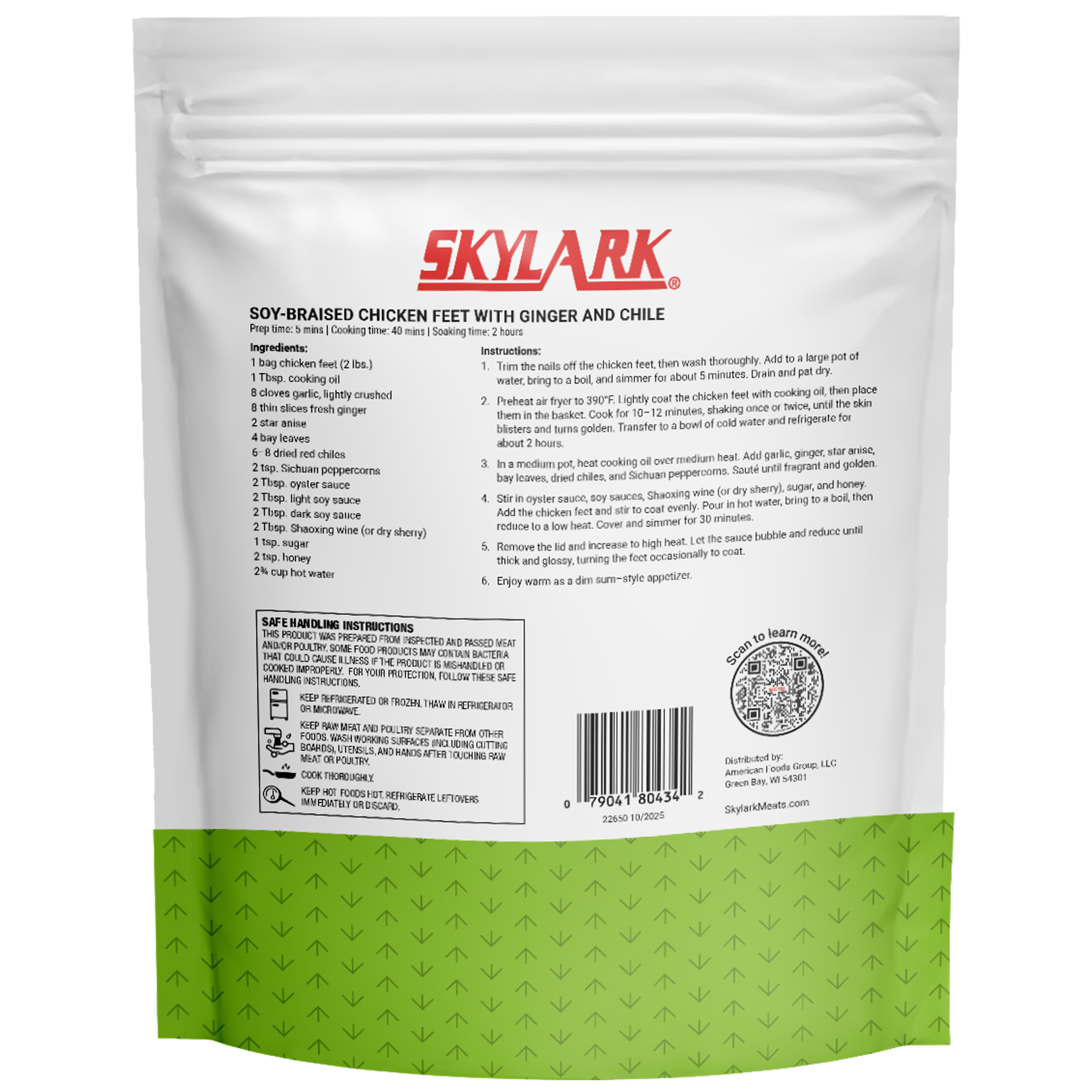 DESCRIPTION – Add authentic flavor and texture to your favorite dishes with Skylark Frozen Raw Chicken Feet, carefully prepared and frozen to maintain freshness. Ideal for soups, stocks, and traditional recipes, these chicken feet are a staple for creating rich, gelatinous broths and hearty comfort food.