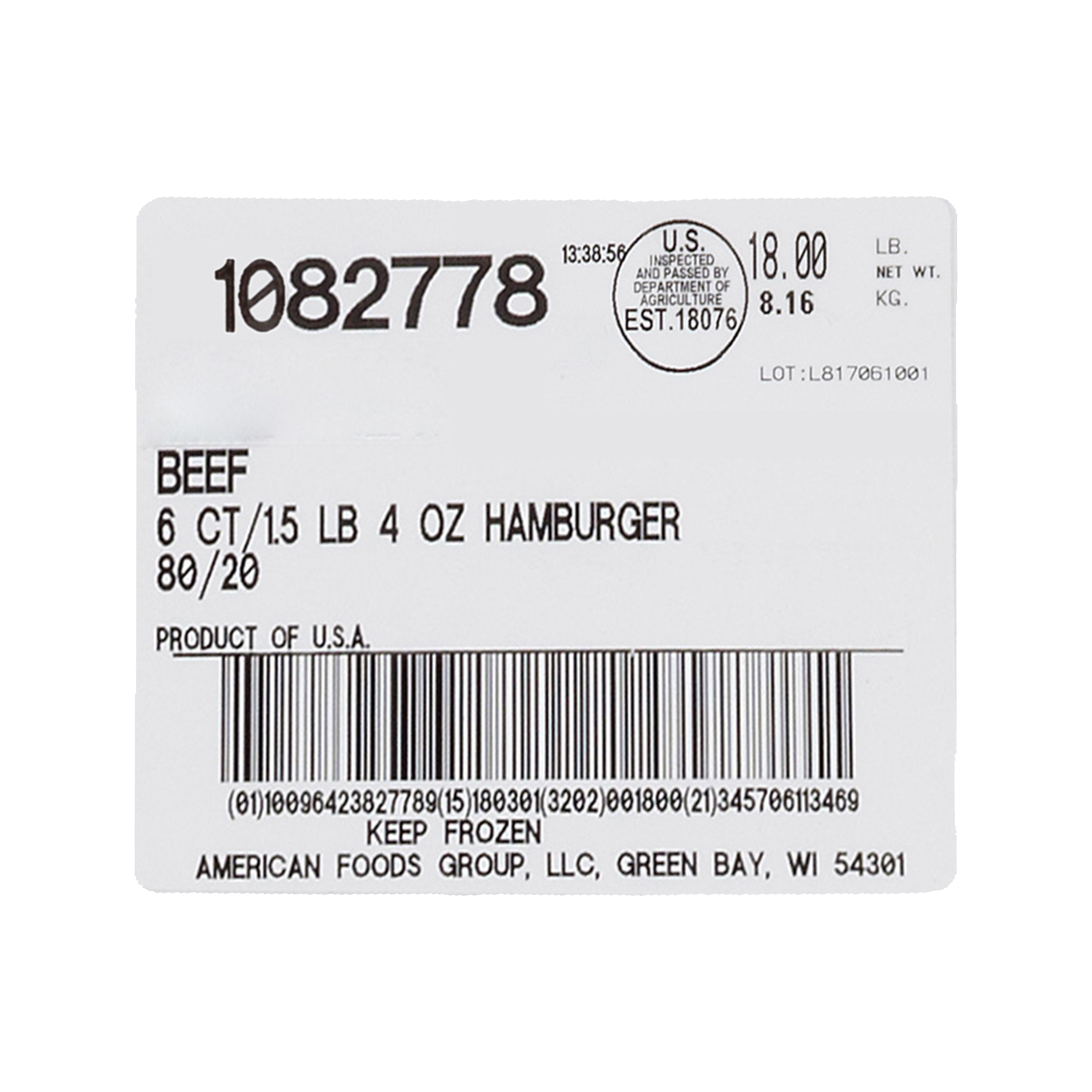 Ground Beef Burgers 4oz 80/20 12/1.5# Boxes