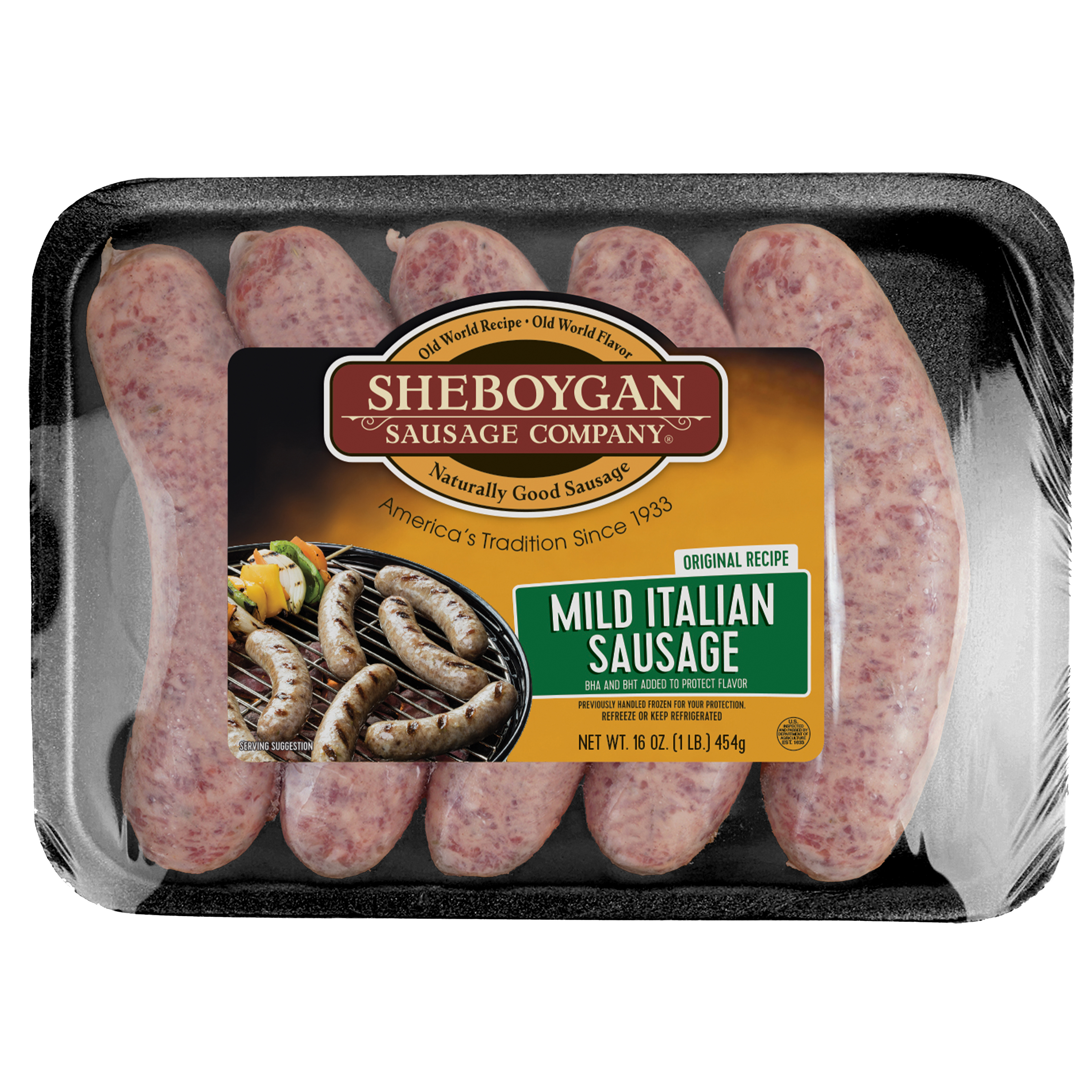 Sheboygan Company Raw Original Recipe Mild Italian Sausage, 12-1 Pound Trays Per 12 Pound Net Weight Master Case, 5-3.2 Ounce Sausages Per Tray