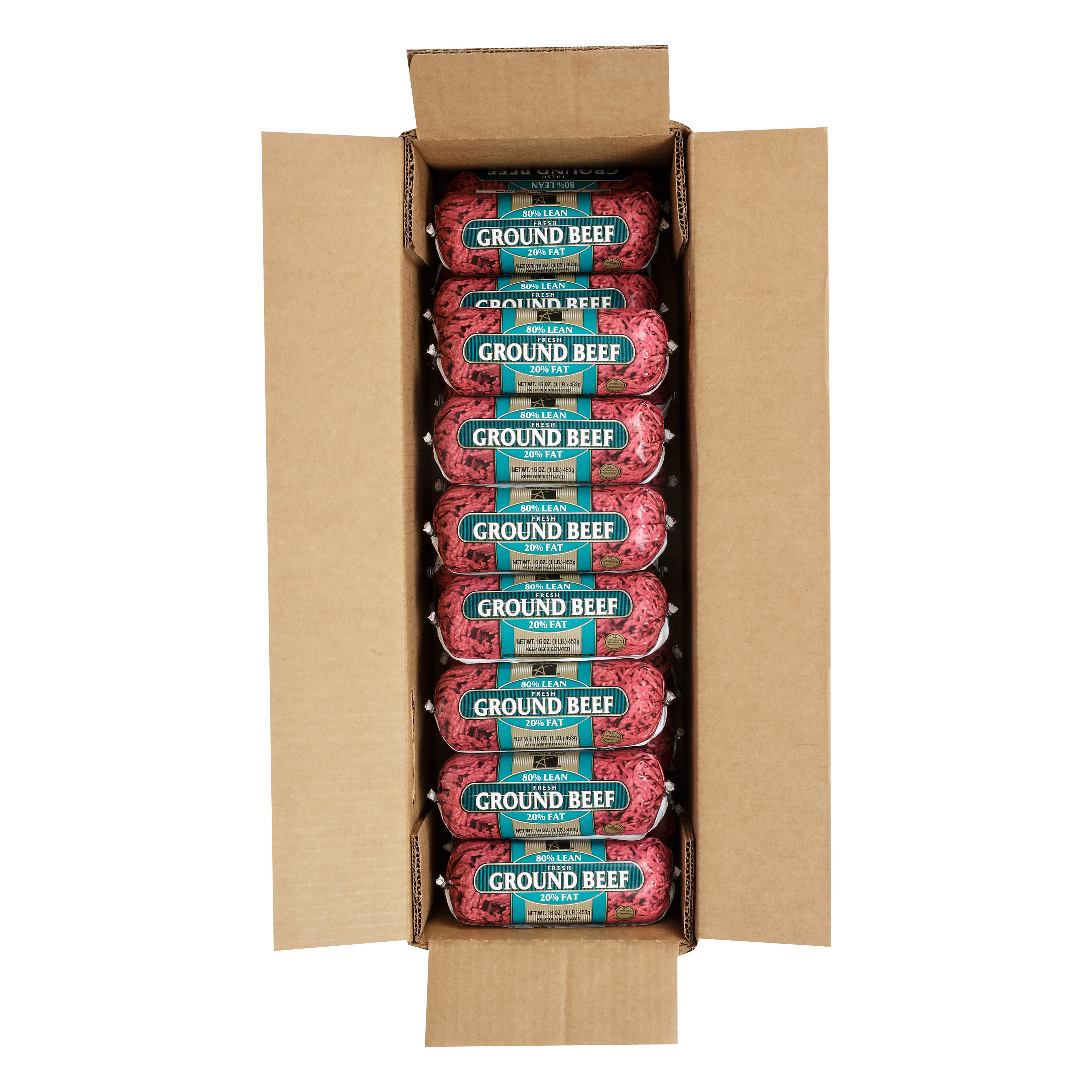 American Foods Group Frozen Fine Ground Beef, 80 Percent Lean 20 Percent Fat, 24-1 Pound Chubs Per 24 Pound Net Weight Master Case