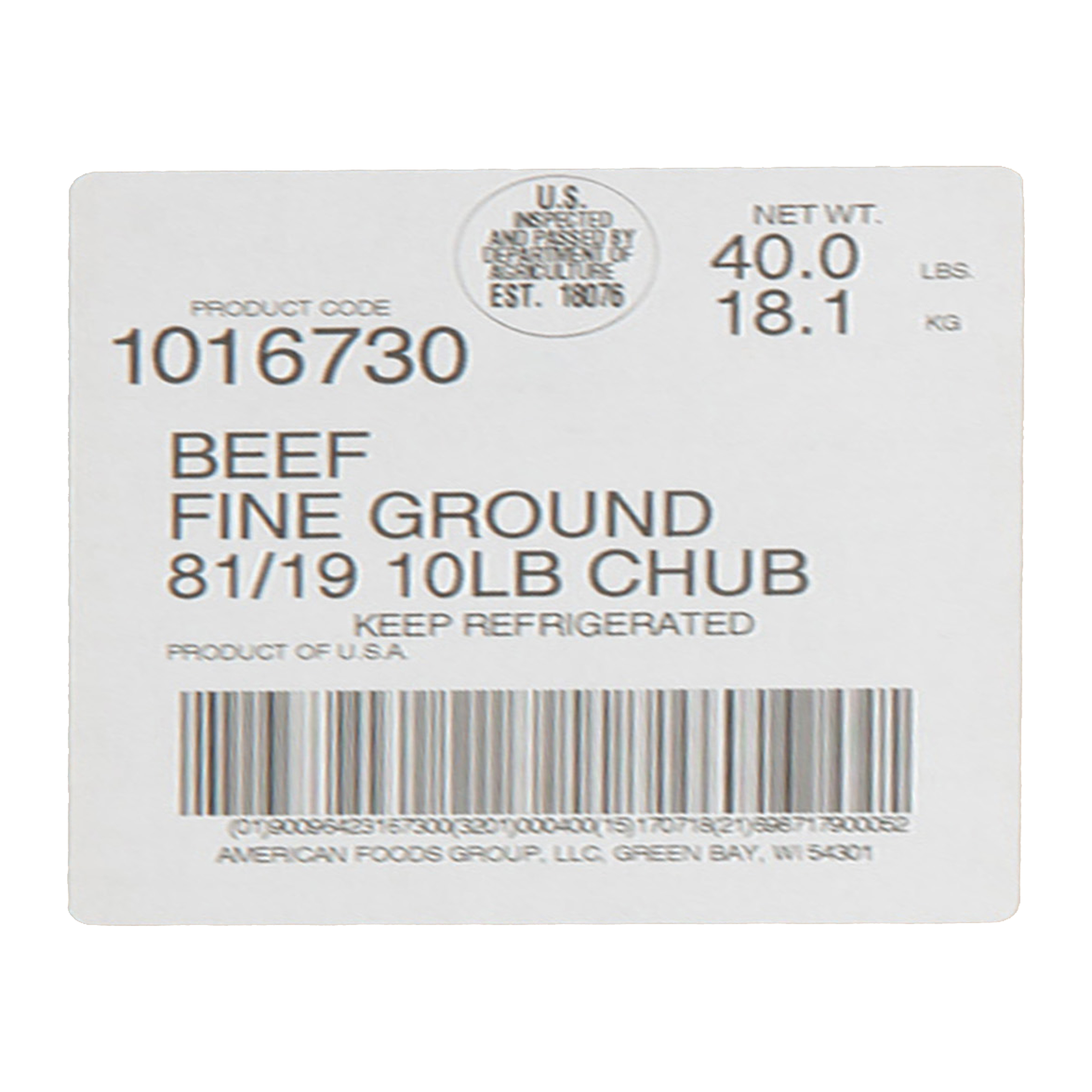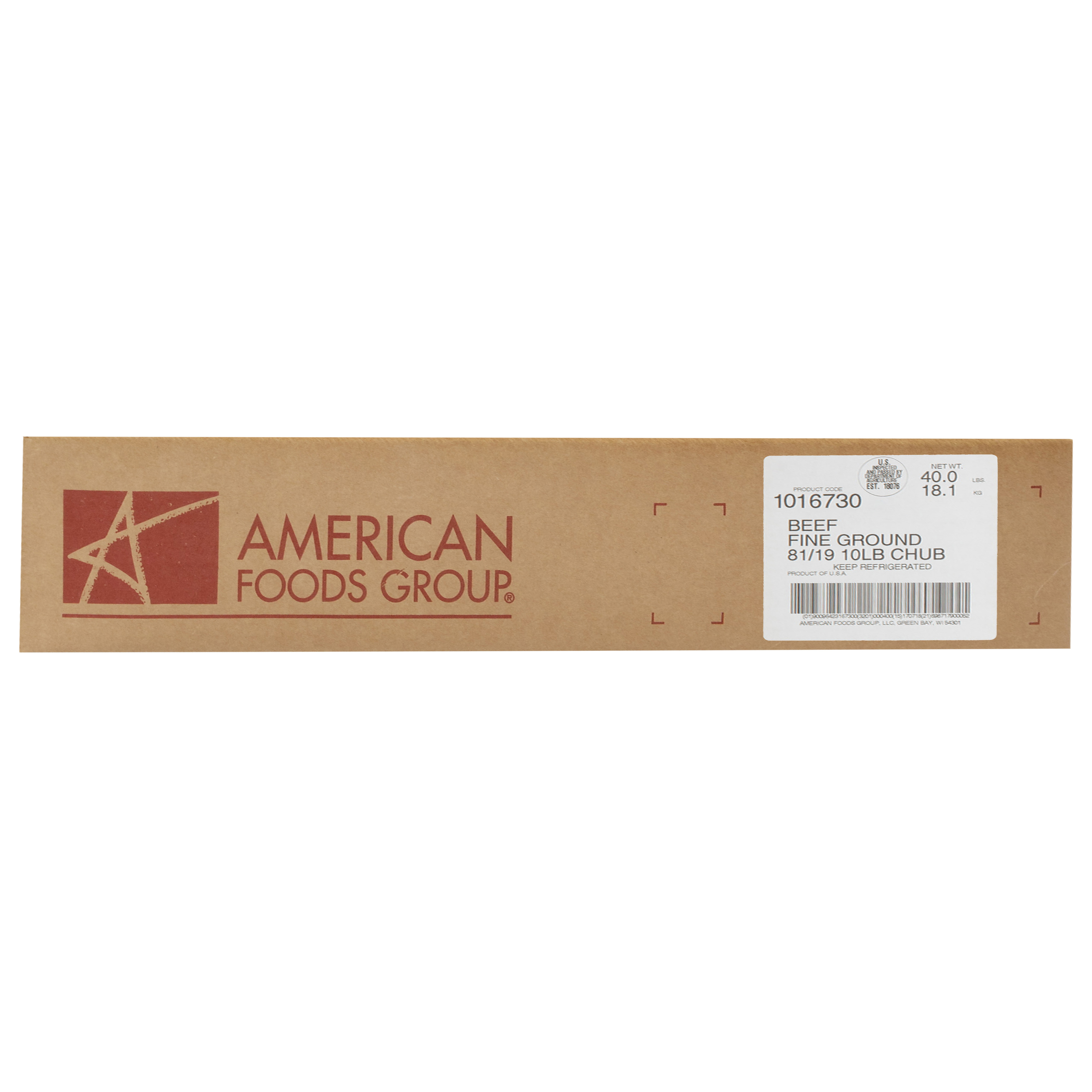 American Foods Group Fresh Fine Ground Beef, 81 Percent Lean 19 Percent Fat, 4-10 Pound Chubs Per 40 Pound Average Weight Master Case