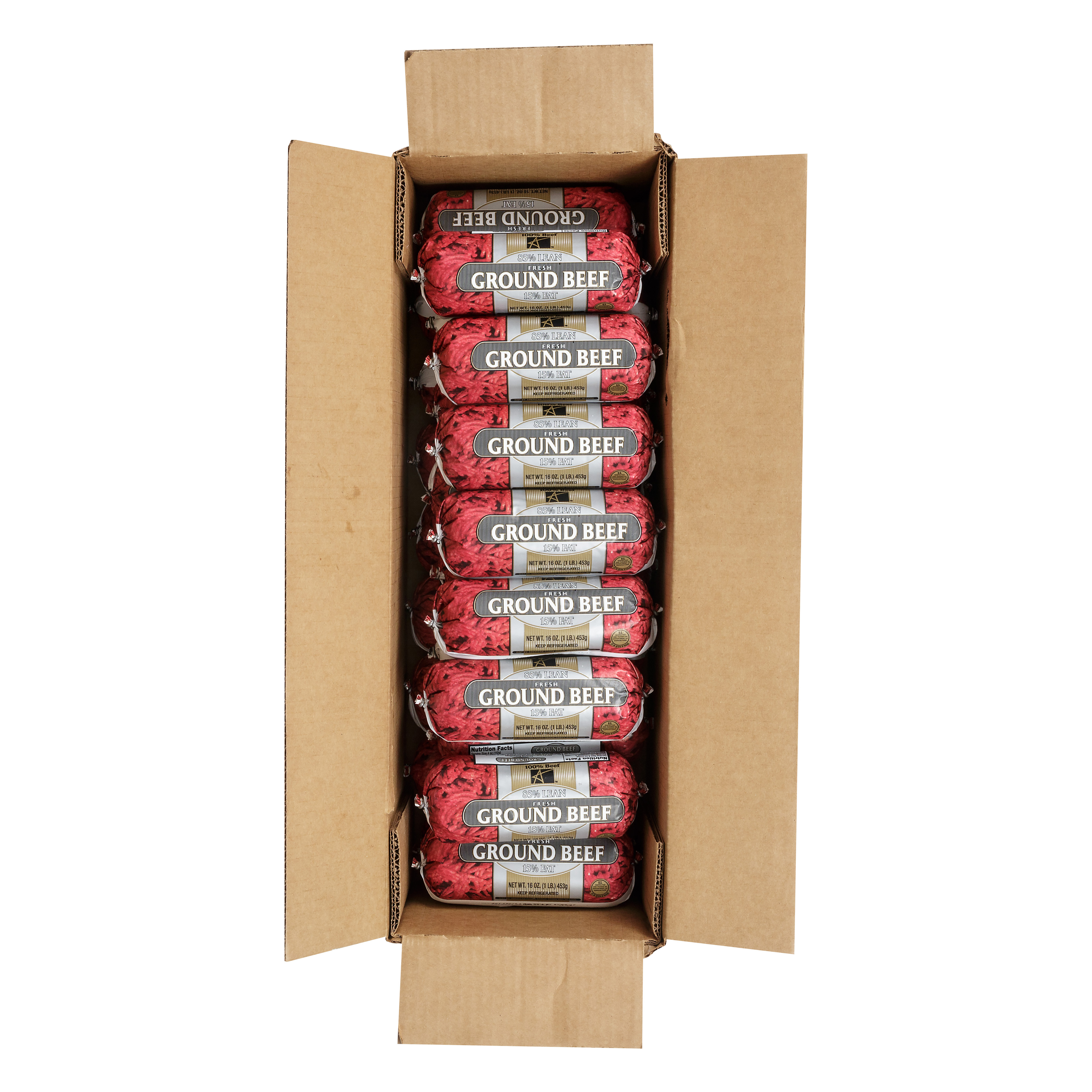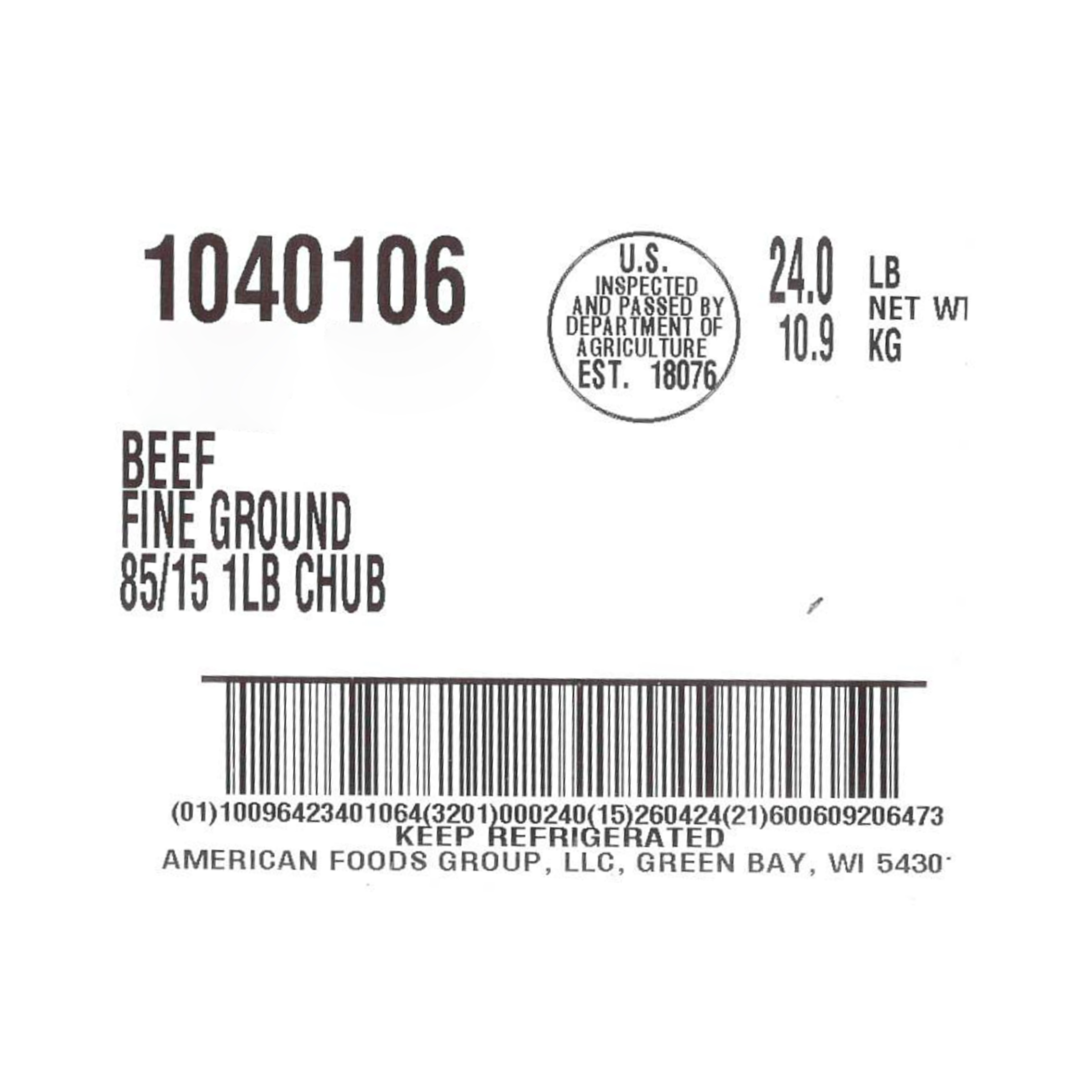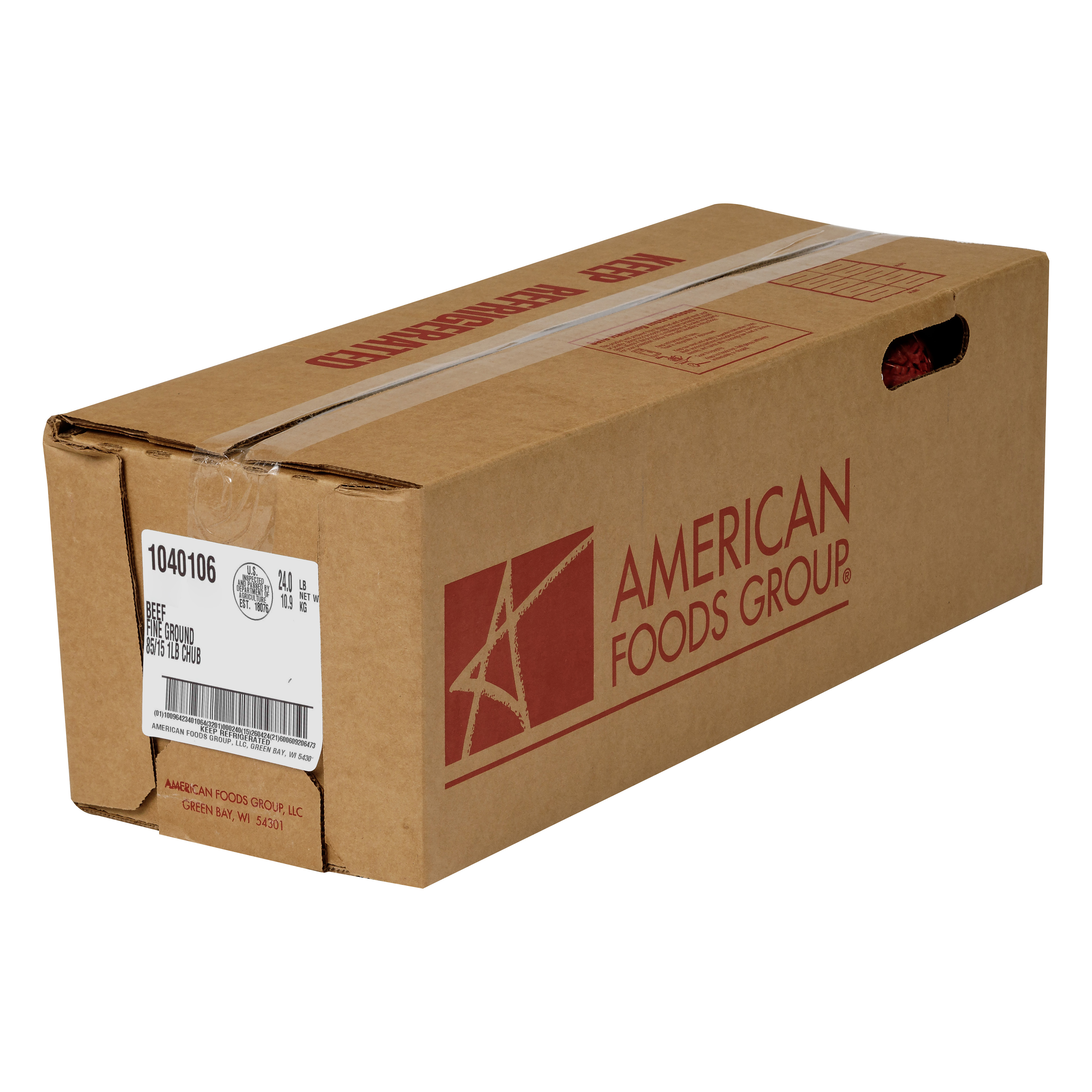 American Foods Group Fresh Fine Ground Beef, 85 Percent Lean 15 Percent Fat, 24-1 Pound Chubs Per 24 Pound Net Weight Master Case