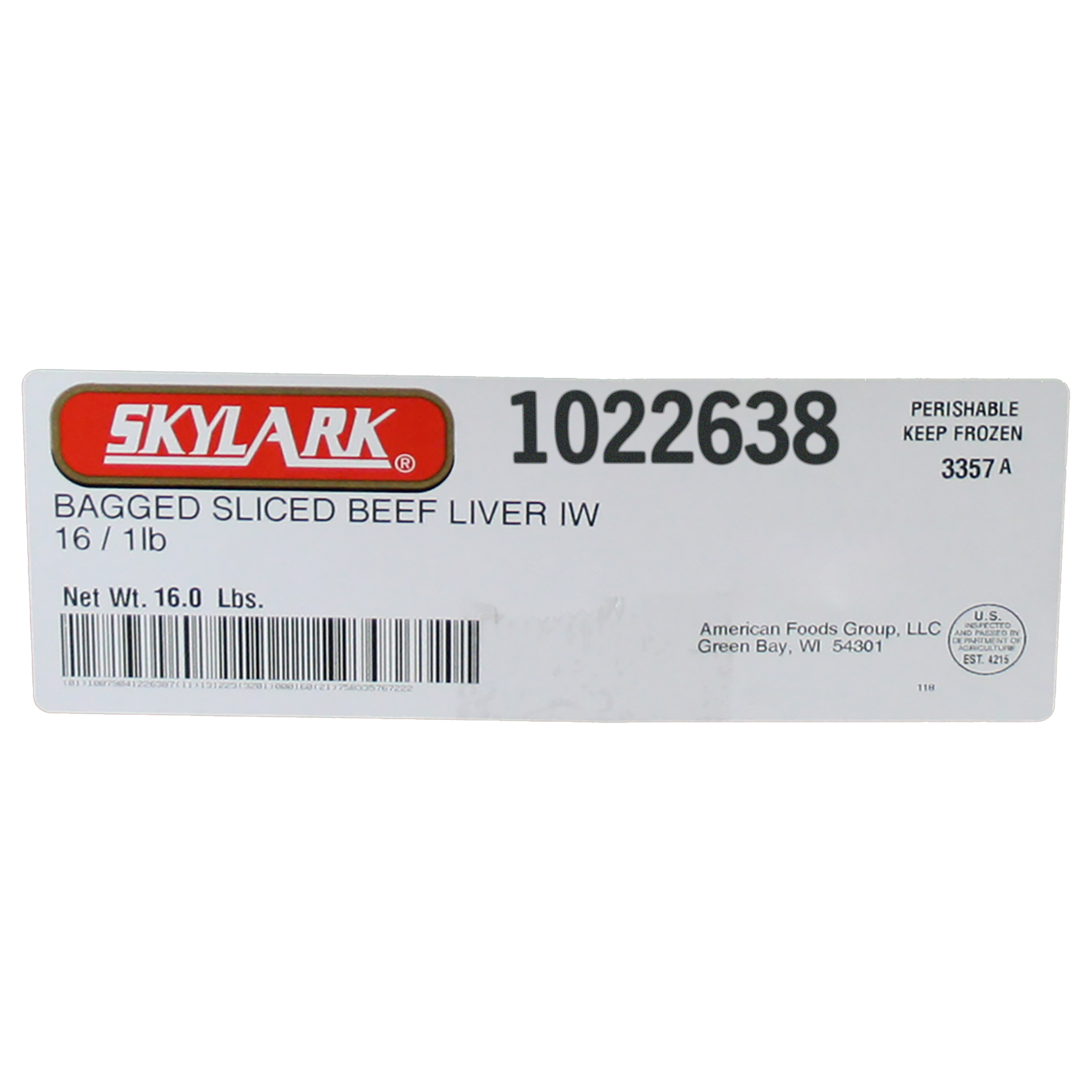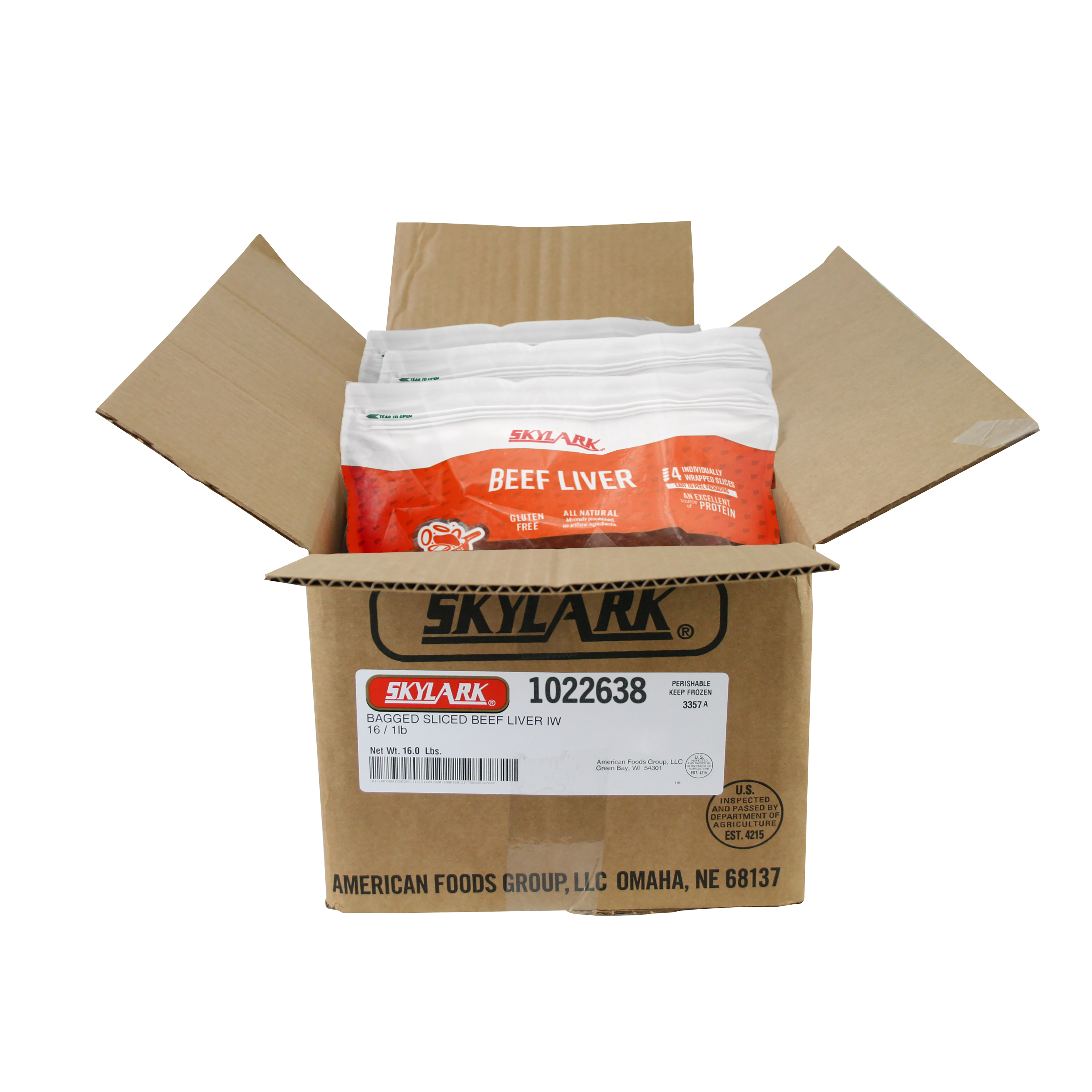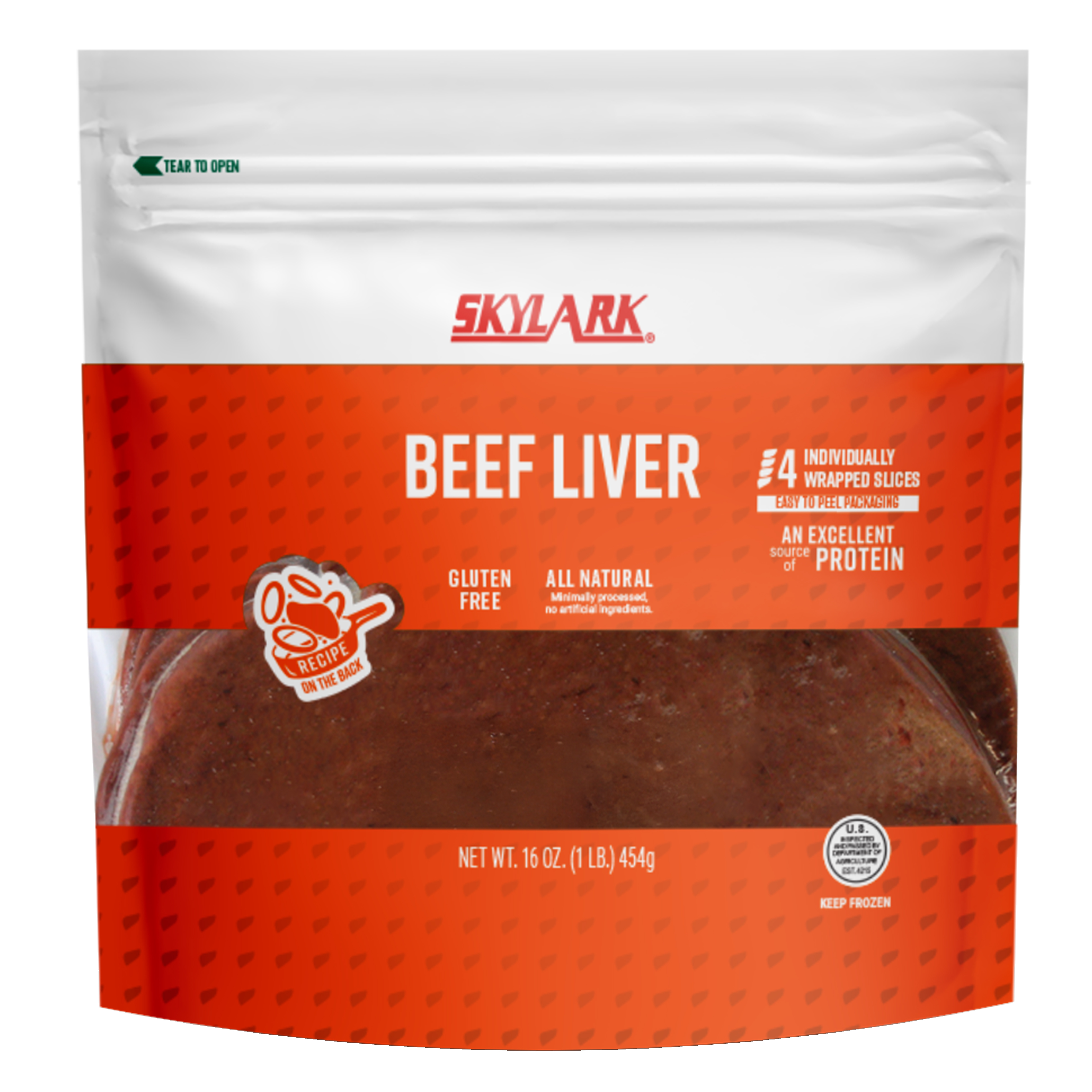 Skylark Frozen Bagged Sliced Individually Wrapped Beef Liver, 16-1 Pound Bags Per 16 Pound Net Weight Master Case, 4-4 Ounce Individually Wrapped Slices Per Bag