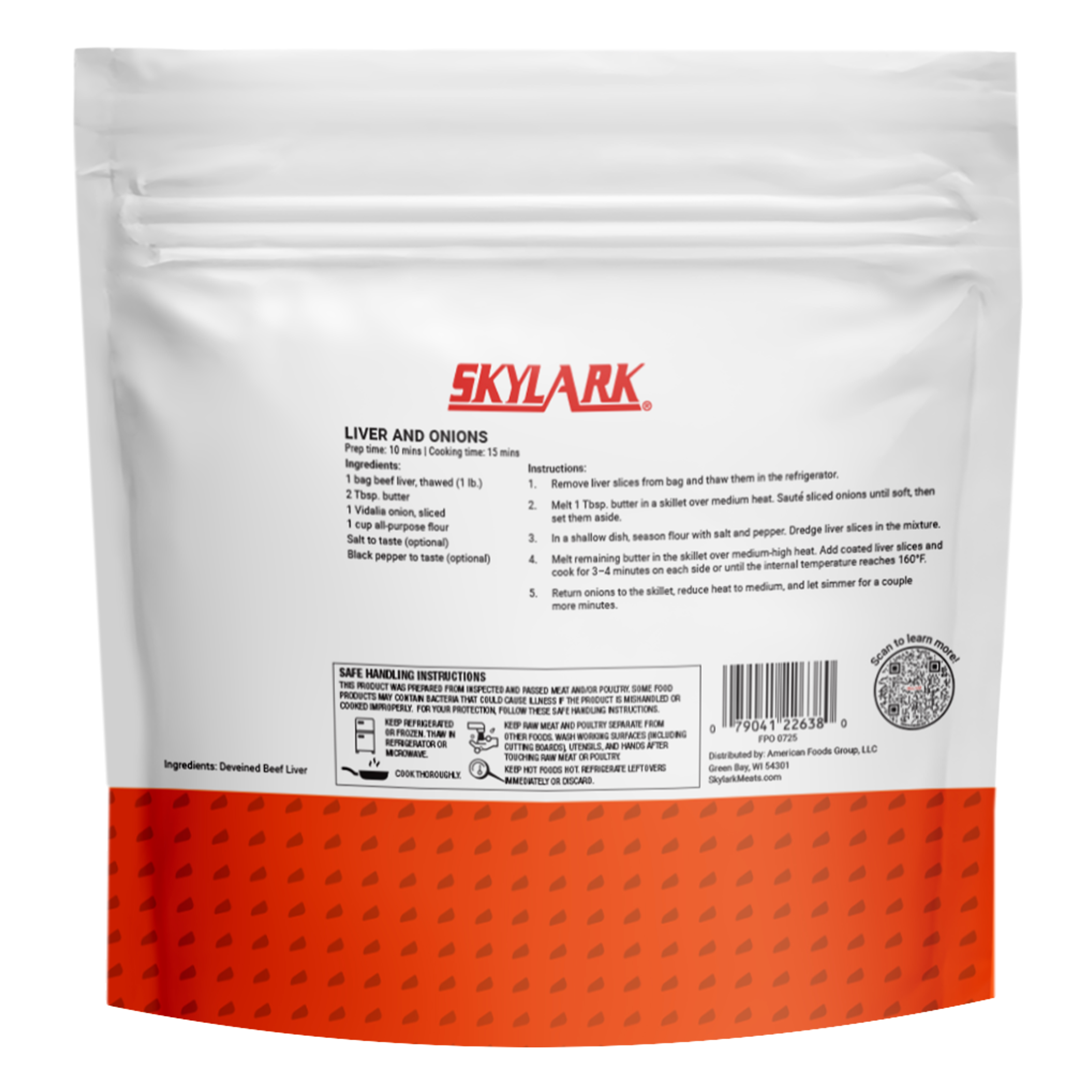 DESCRIPTION – Skylark Meats Beef Liver is a classic that is sure to bring the tastes of home to your dinner table. This highly nutritional, USDA approved protein can be sautéed with onions, stir-fried with your favorite vegetable, or turned into a savory pork liver pâté for a tasty appetizer. Liver is not only an excellent source of Protein but Vitamin A and Iron as well. Each serving is individually wrapped in easy-peel packaging. Nutritious and delicious, our breaded liver will give a powerful punch of nostalgia that will have you making liver a weekly meal!