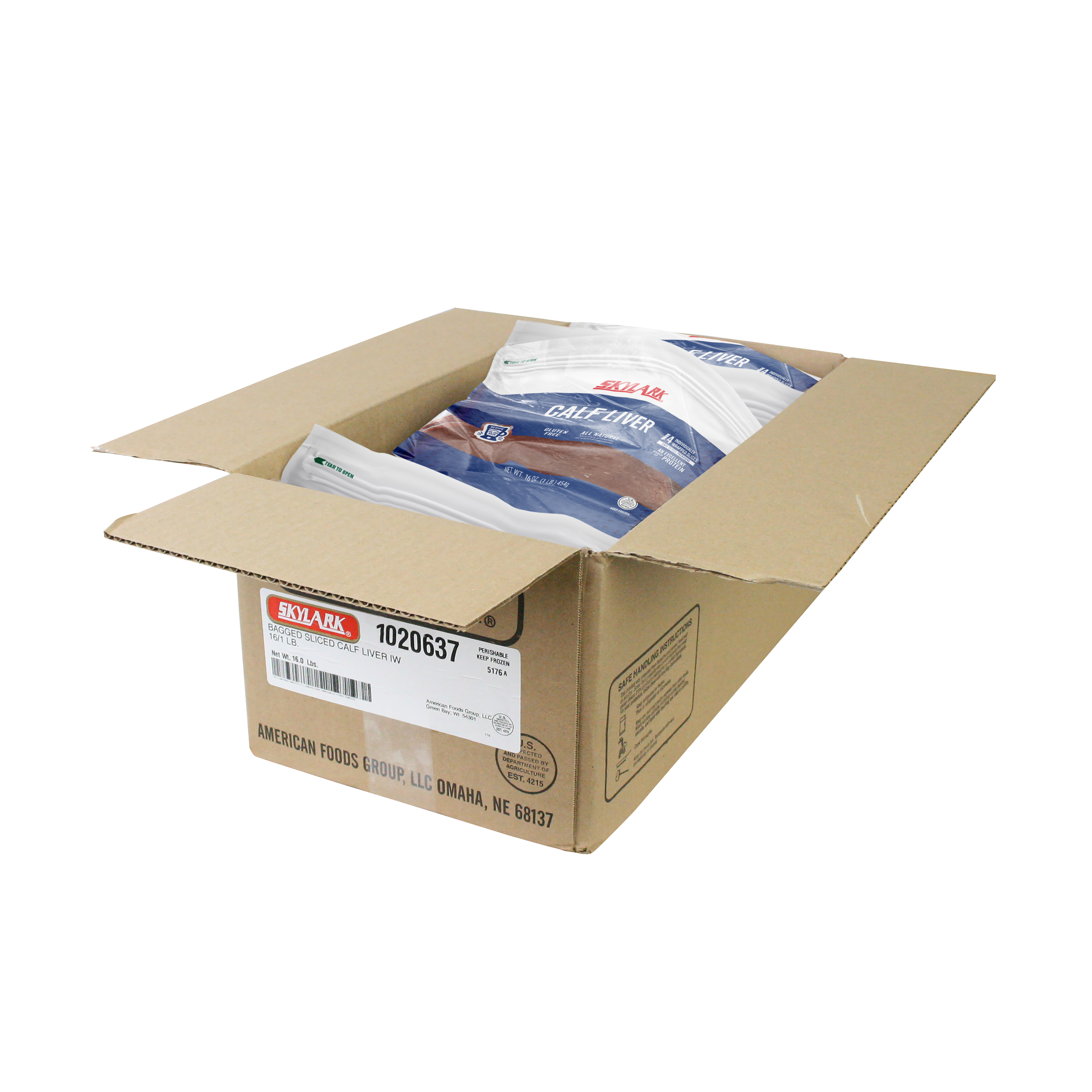 Skylark Frozen Bagged Sliced Individually Wrapped Calf Liver, 16-1 Pound Bags Per 16 Pound Net Weight Master Case, 4-4 Ounce Individually Wrapped Slices Per Bag
